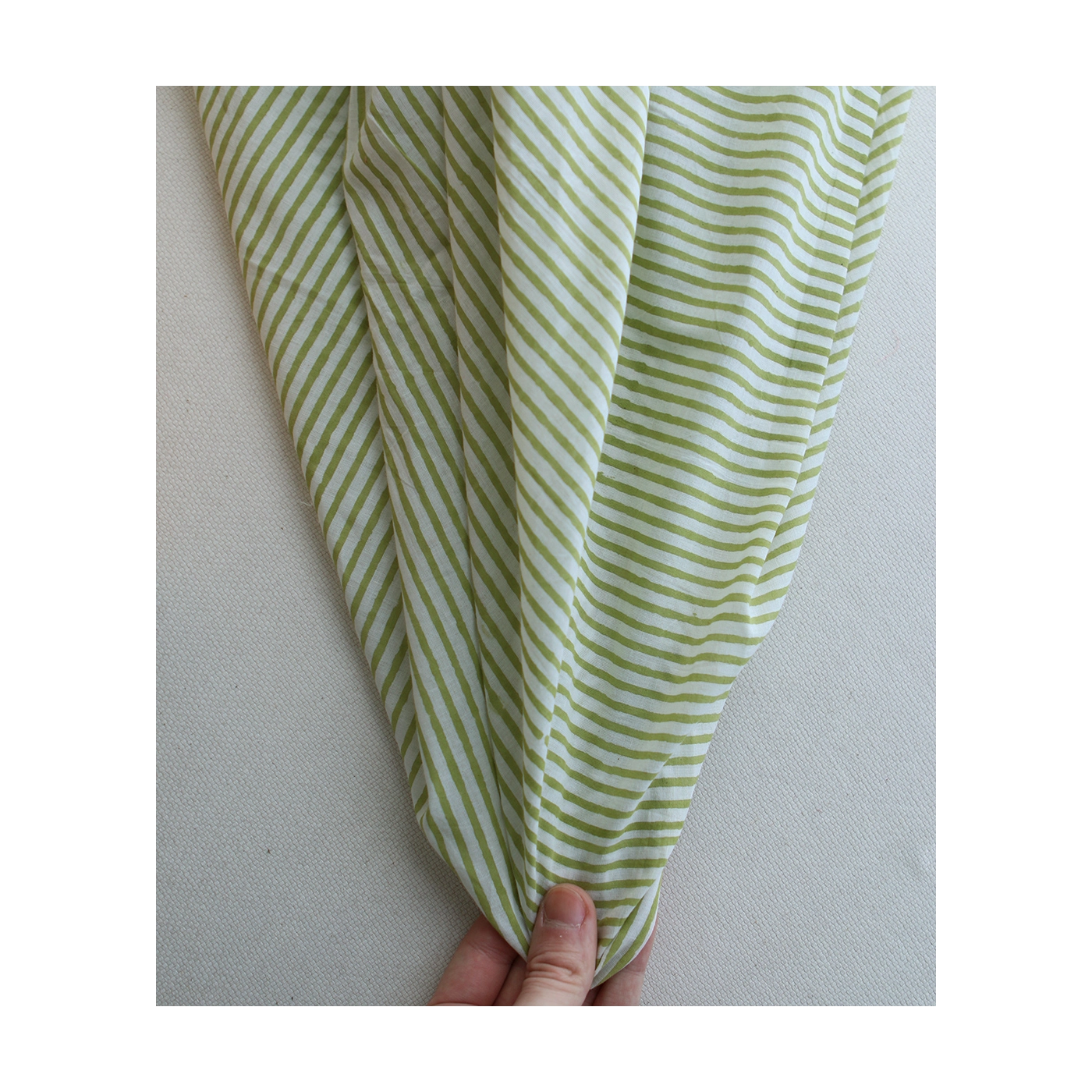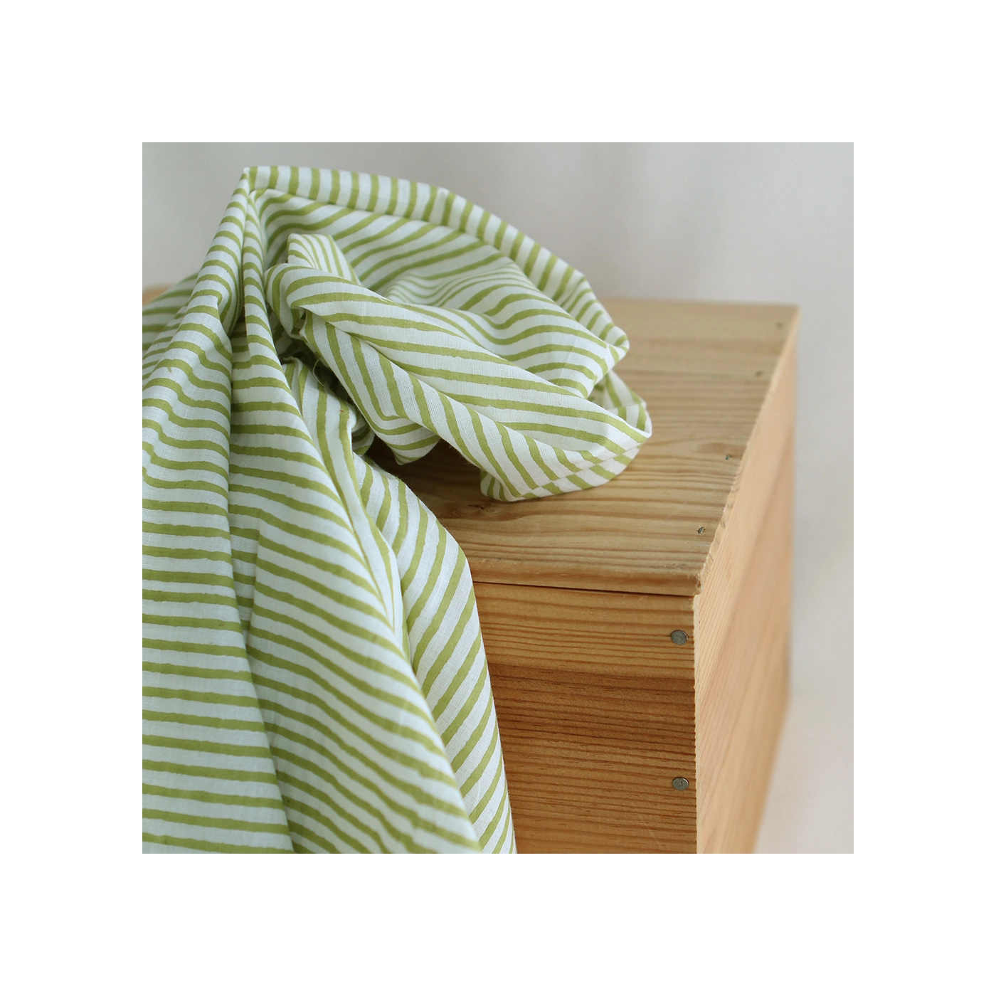 Coupon de 52 cm de Rayures vert - Tissu indien coton hand block traditionnel