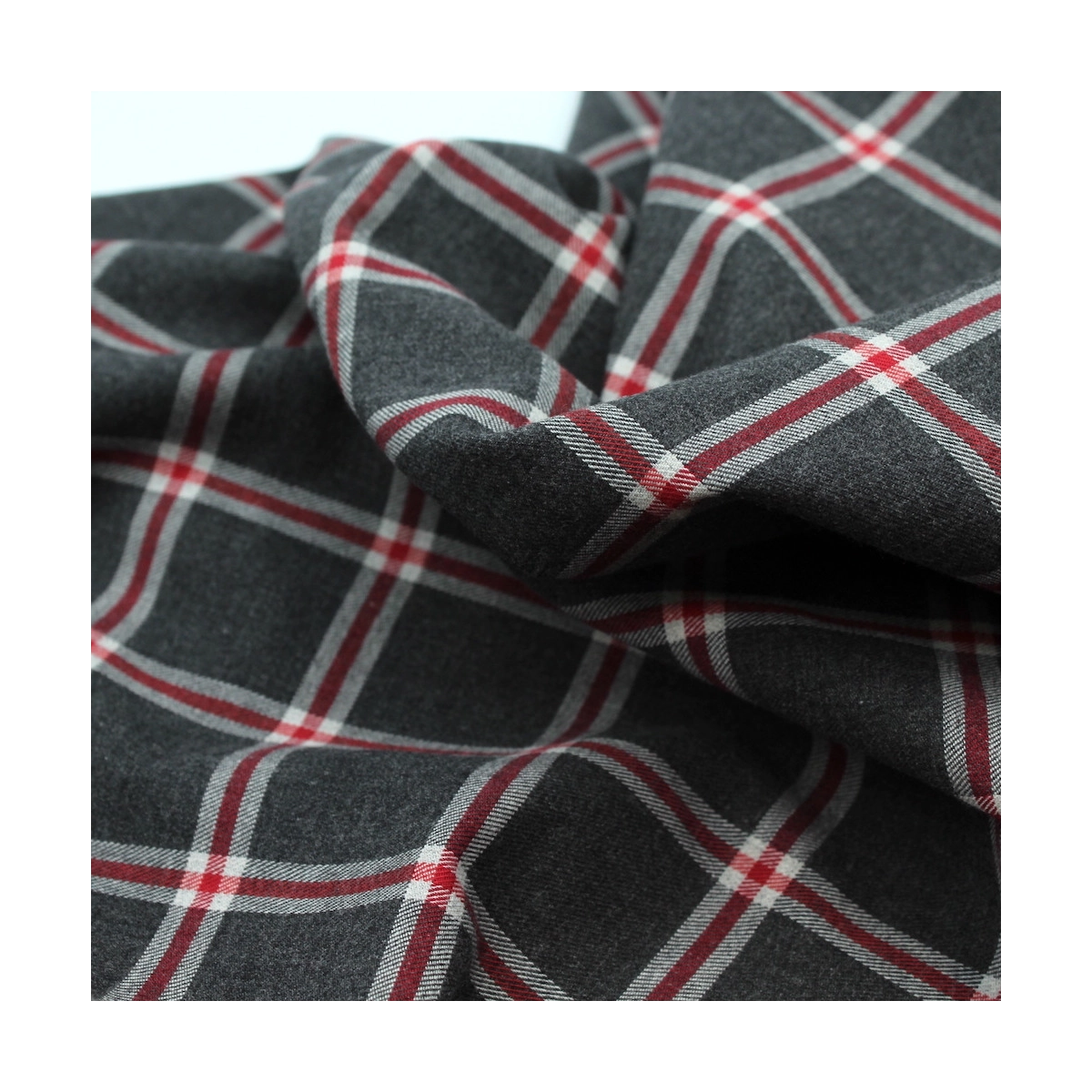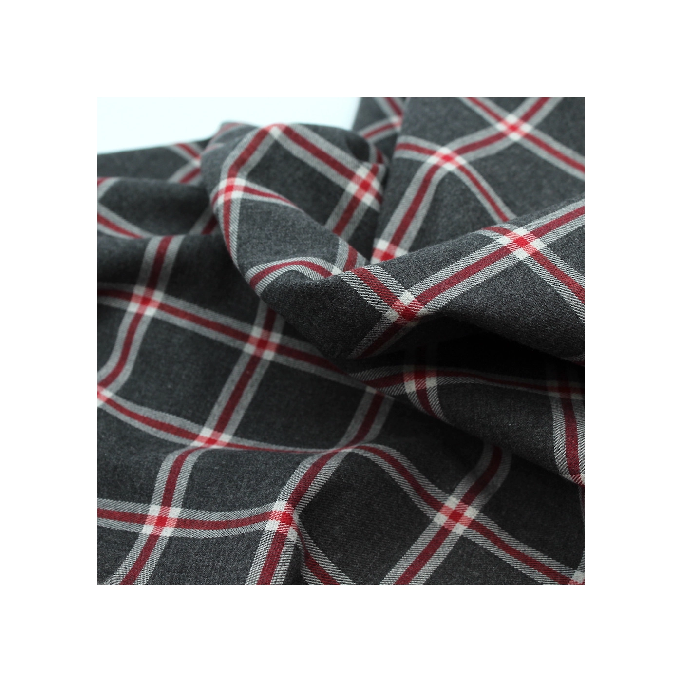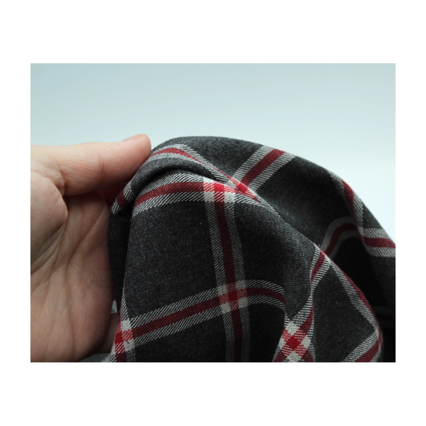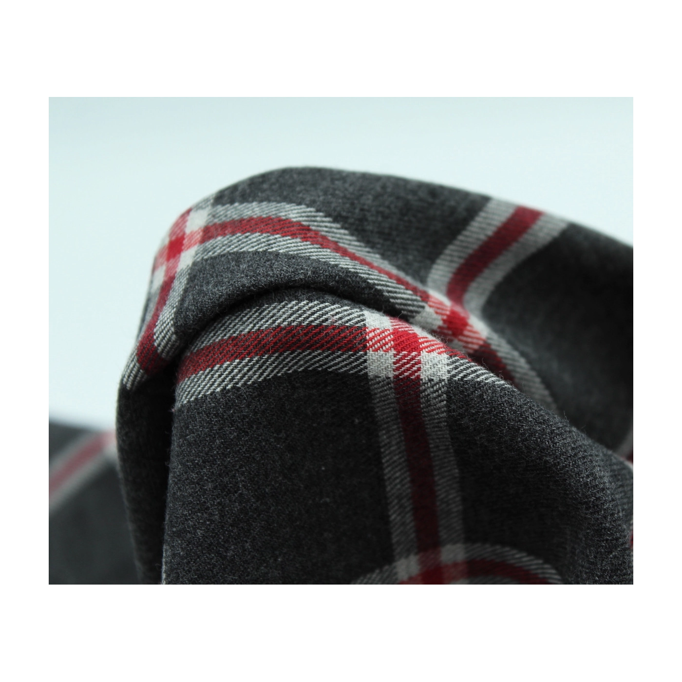 Découvrez le confort absolu avec notre tartan Harold. Son motif anthracite rehaussé de touches rouges et gris clair s'exprime sur un fond gratté ultra-doux. Chaque fibre de coton biologique est grattée avec soin pour révéler une douceur exceptionnelle.