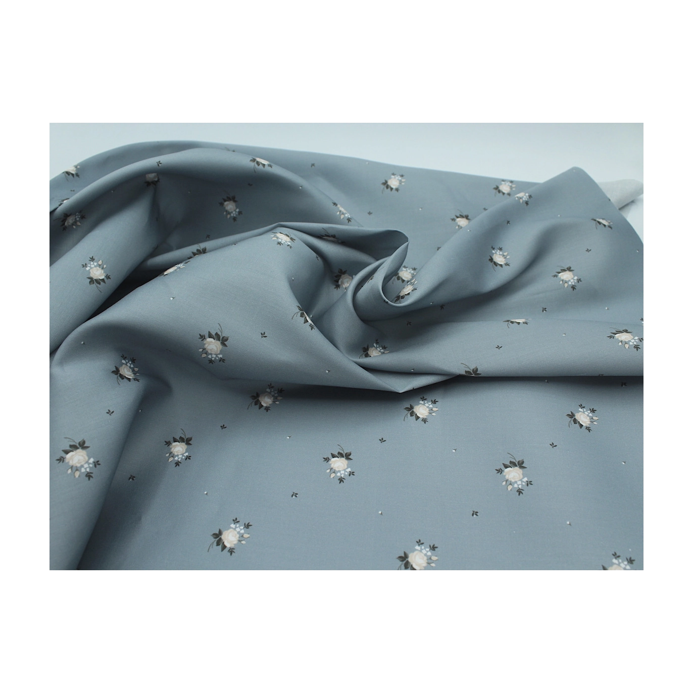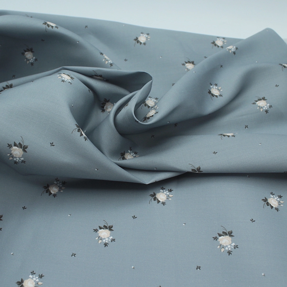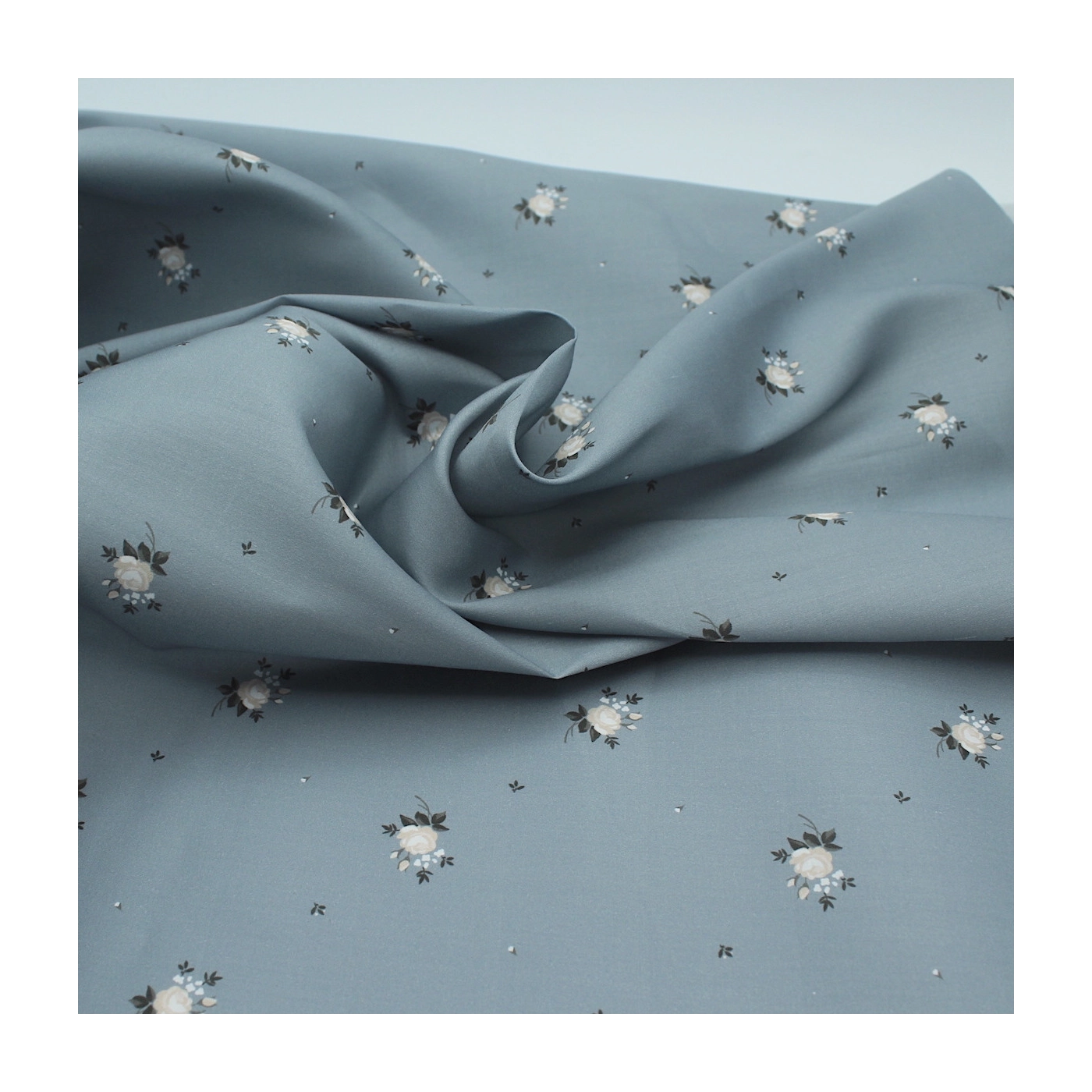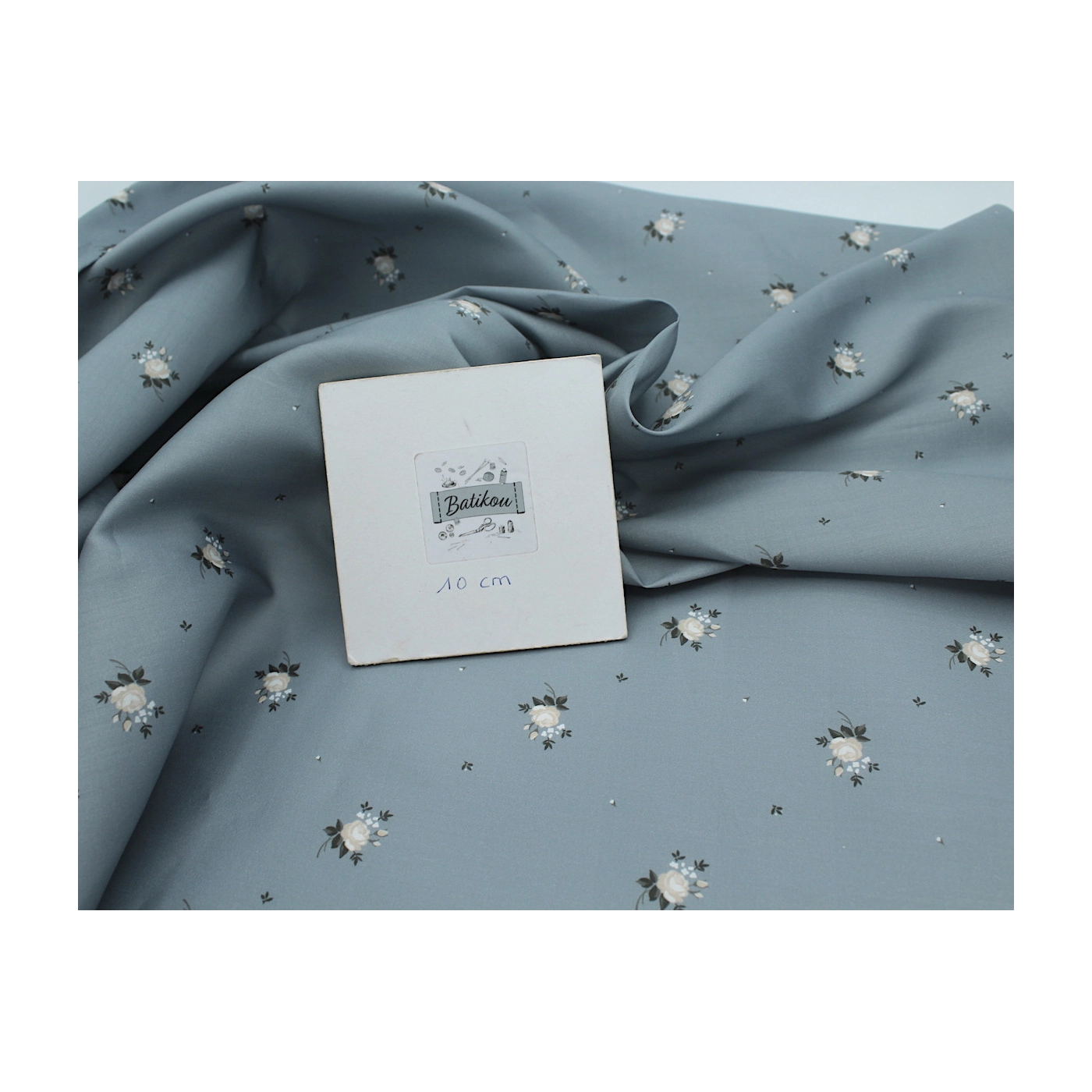 Coupon de 35 cm de Coton satiné motif Lily exclusif Batikou fond bleu grisé