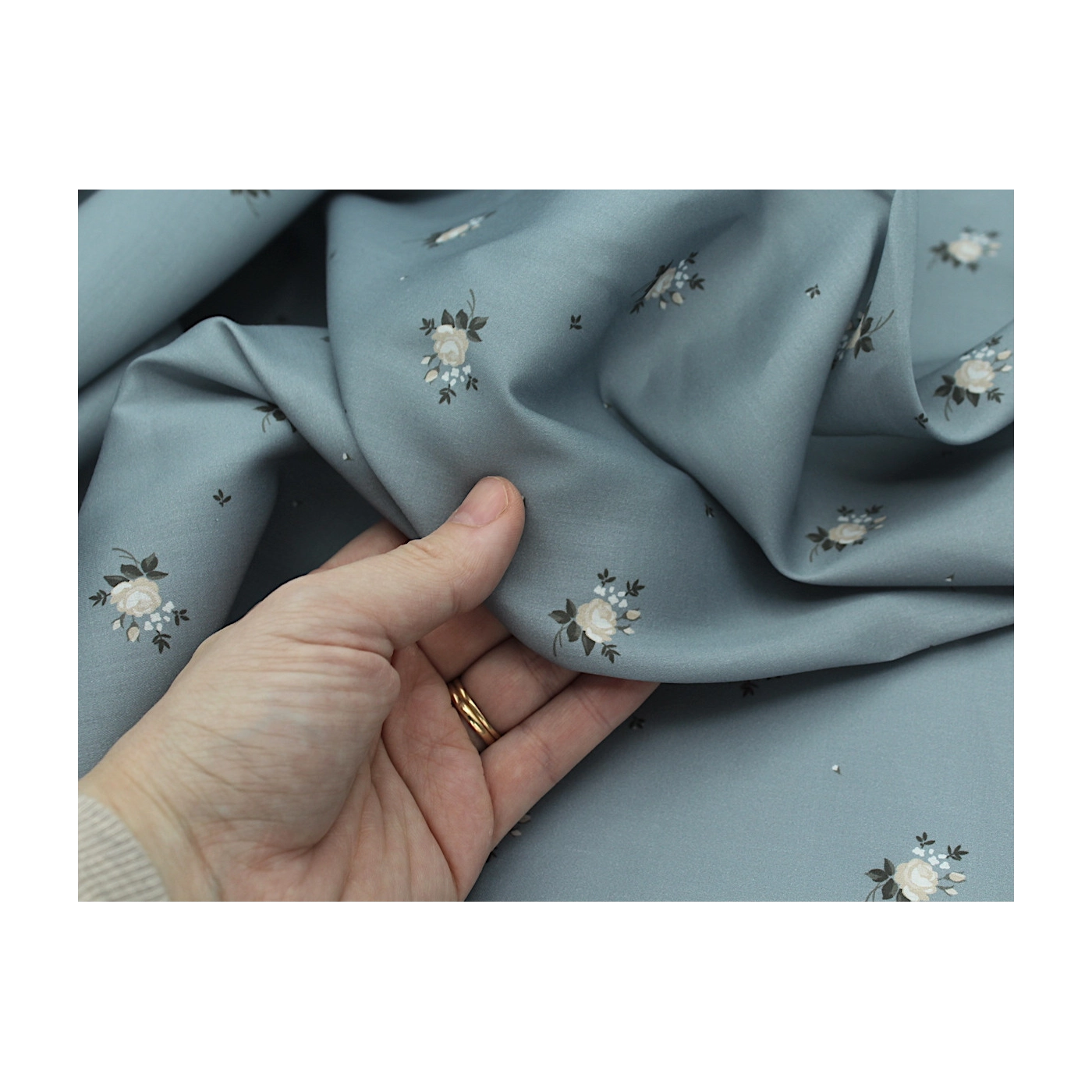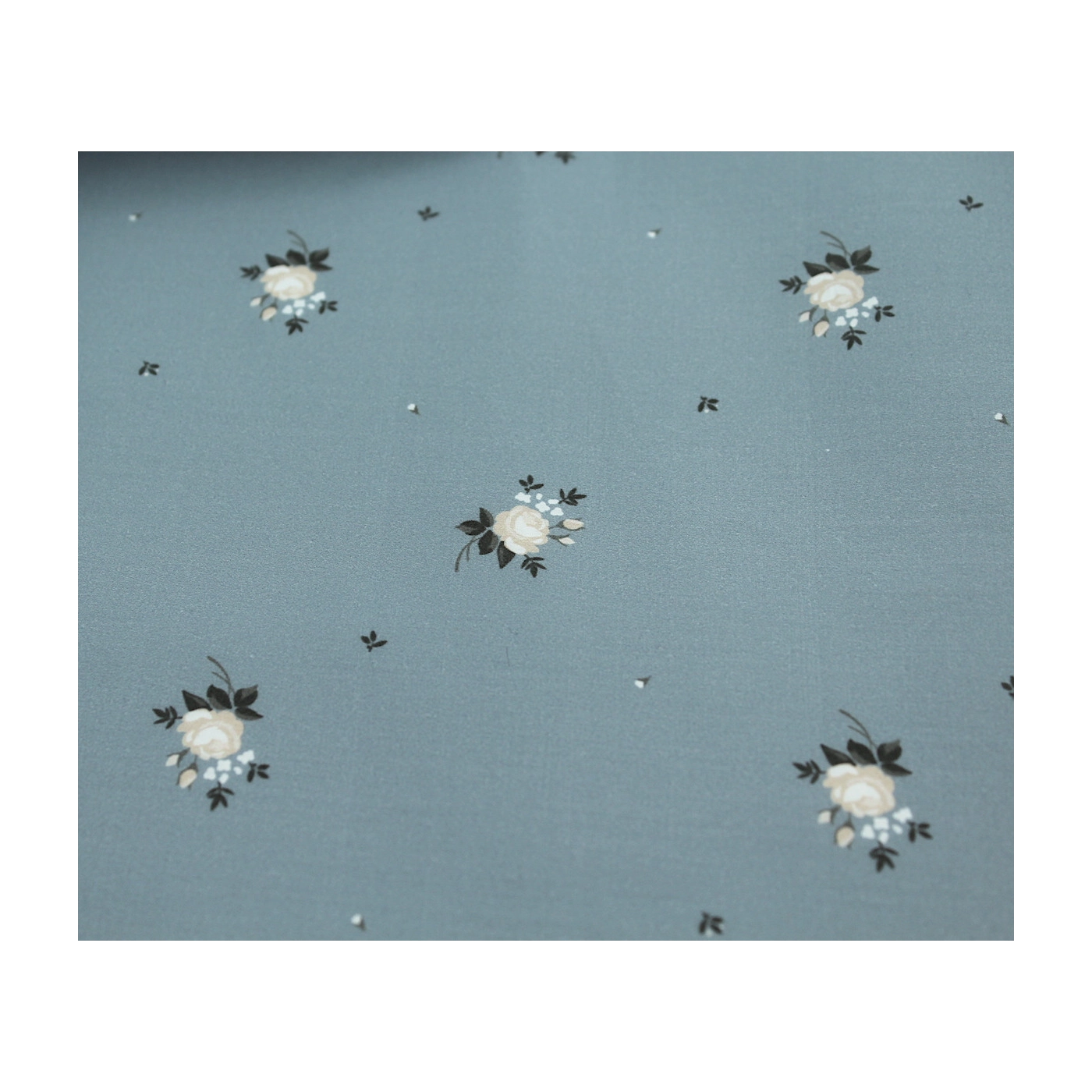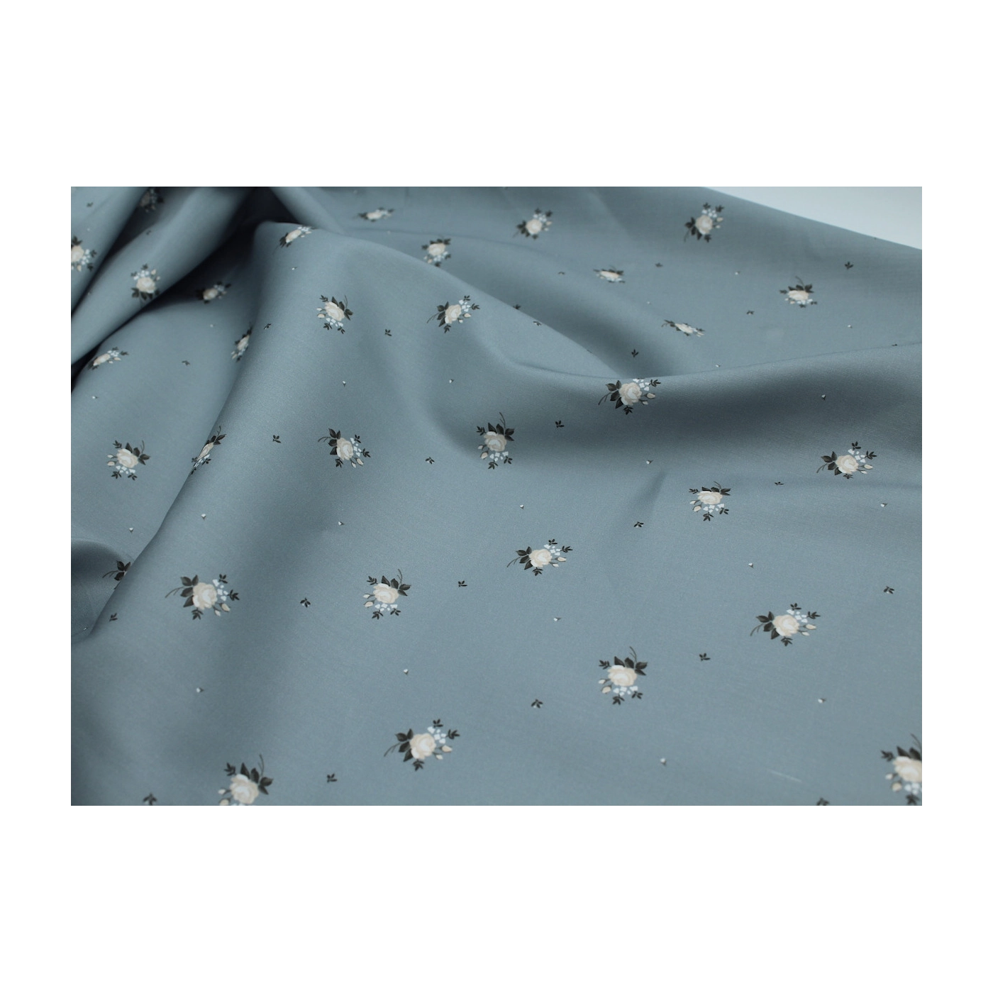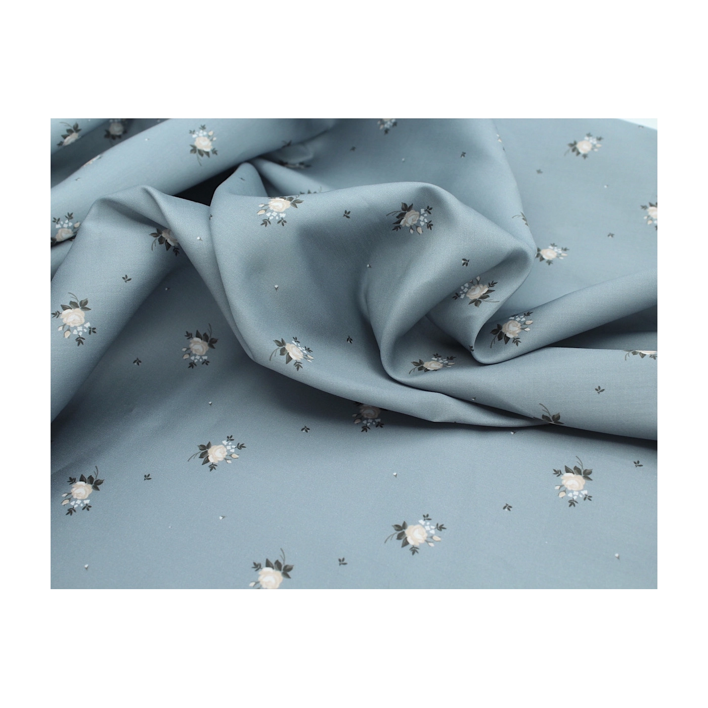 Coupon de 35 cm de Coton satiné motif Lily exclusif Batikou fond bleu grisé