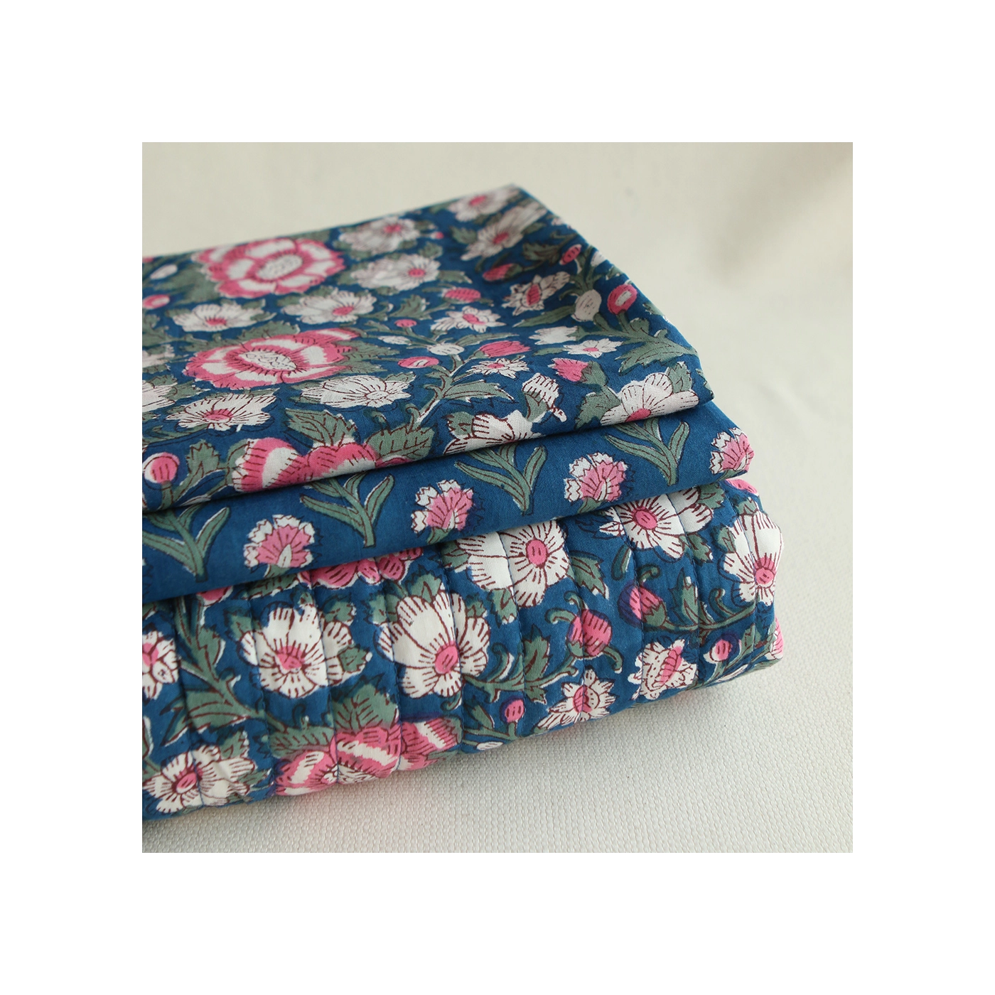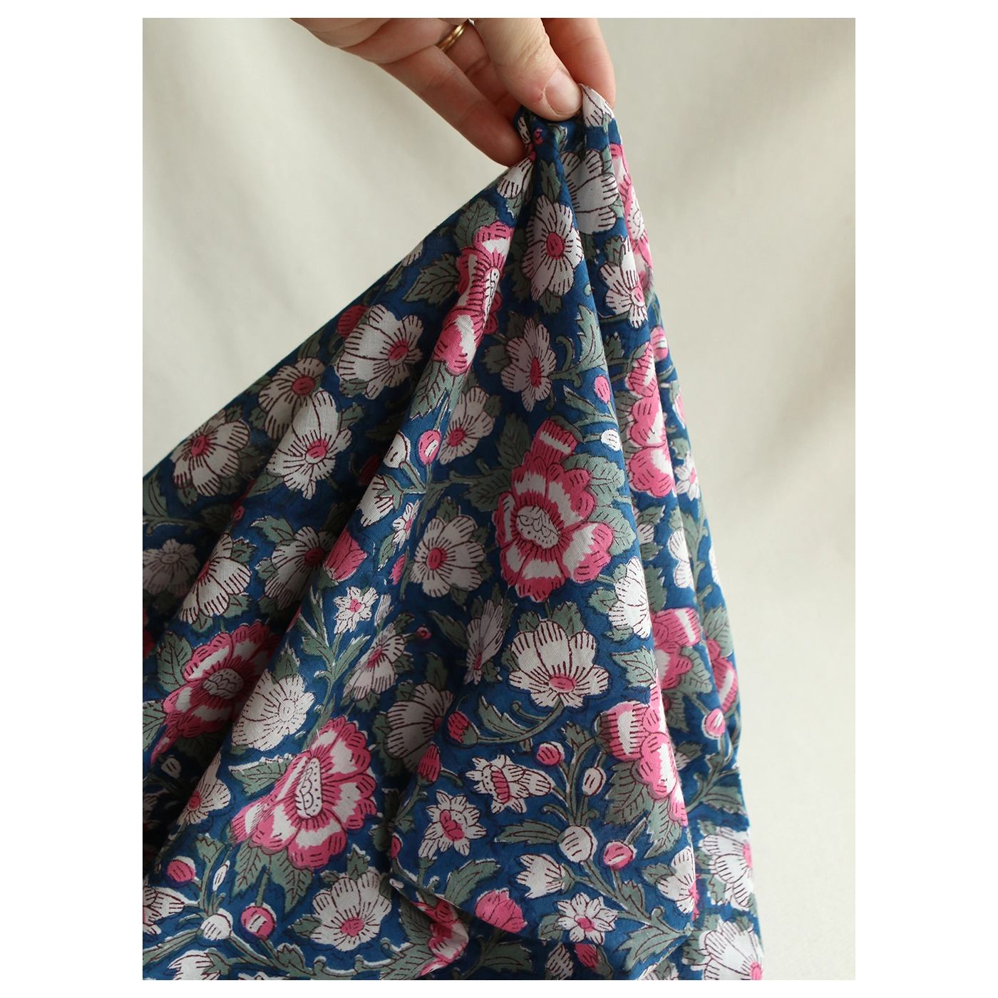 Le block print est un artisanat ancestral indien : le dessin est gravé sur un tampon en bois, chaque couleur nécessitant une étape d'impression distincte.