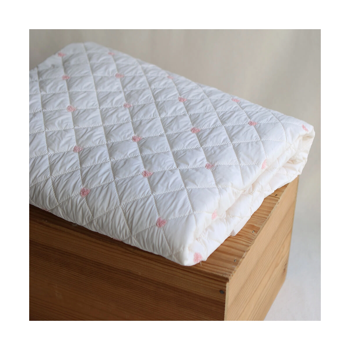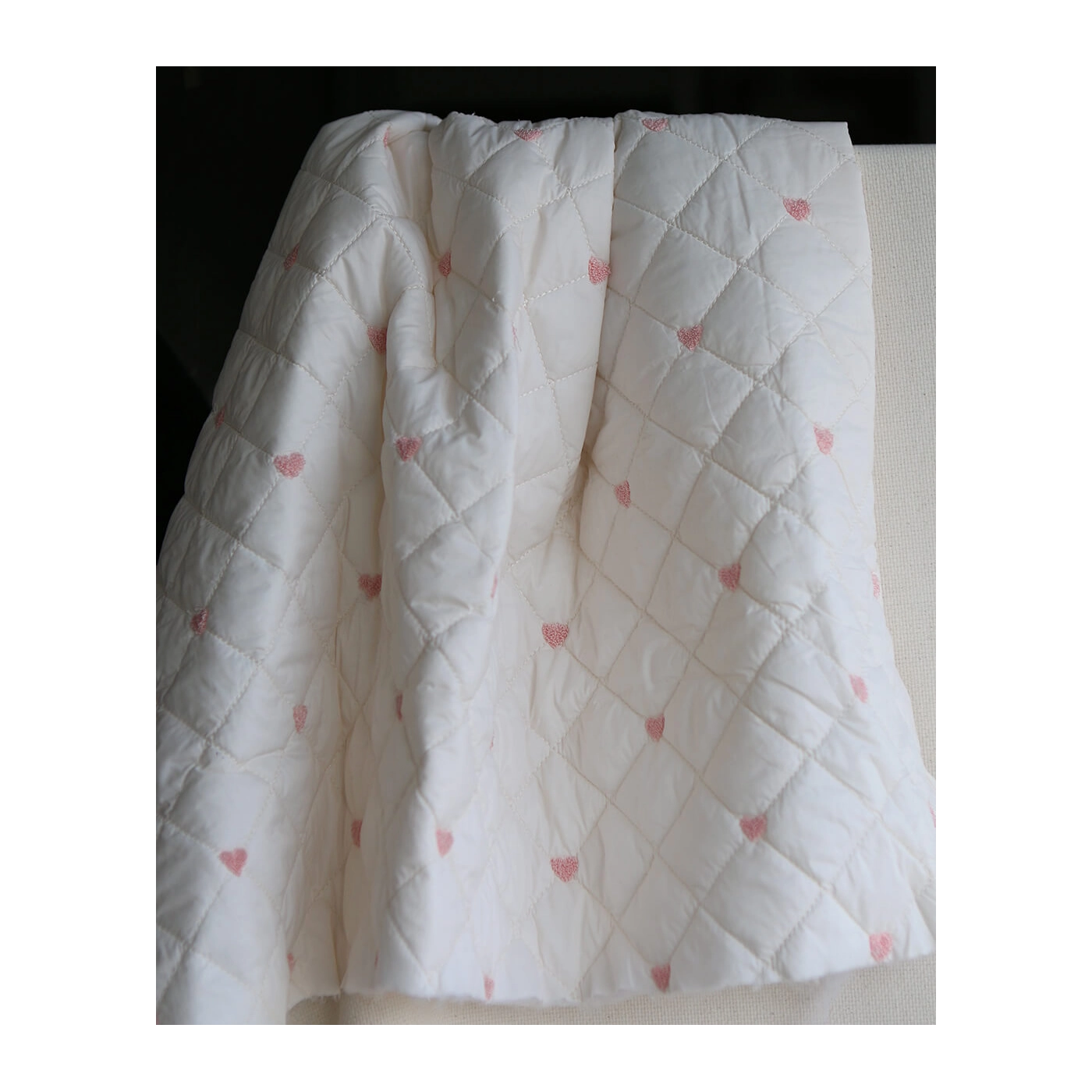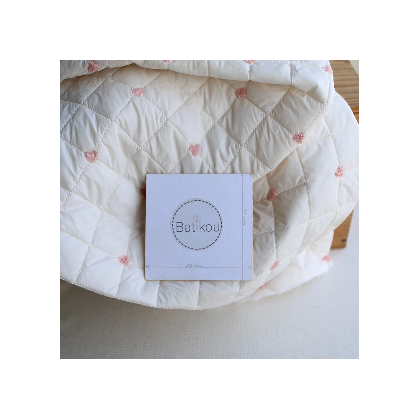 Coupon de 58 cm de Cora - Matelassé doux et souple coeurs brodés rose
