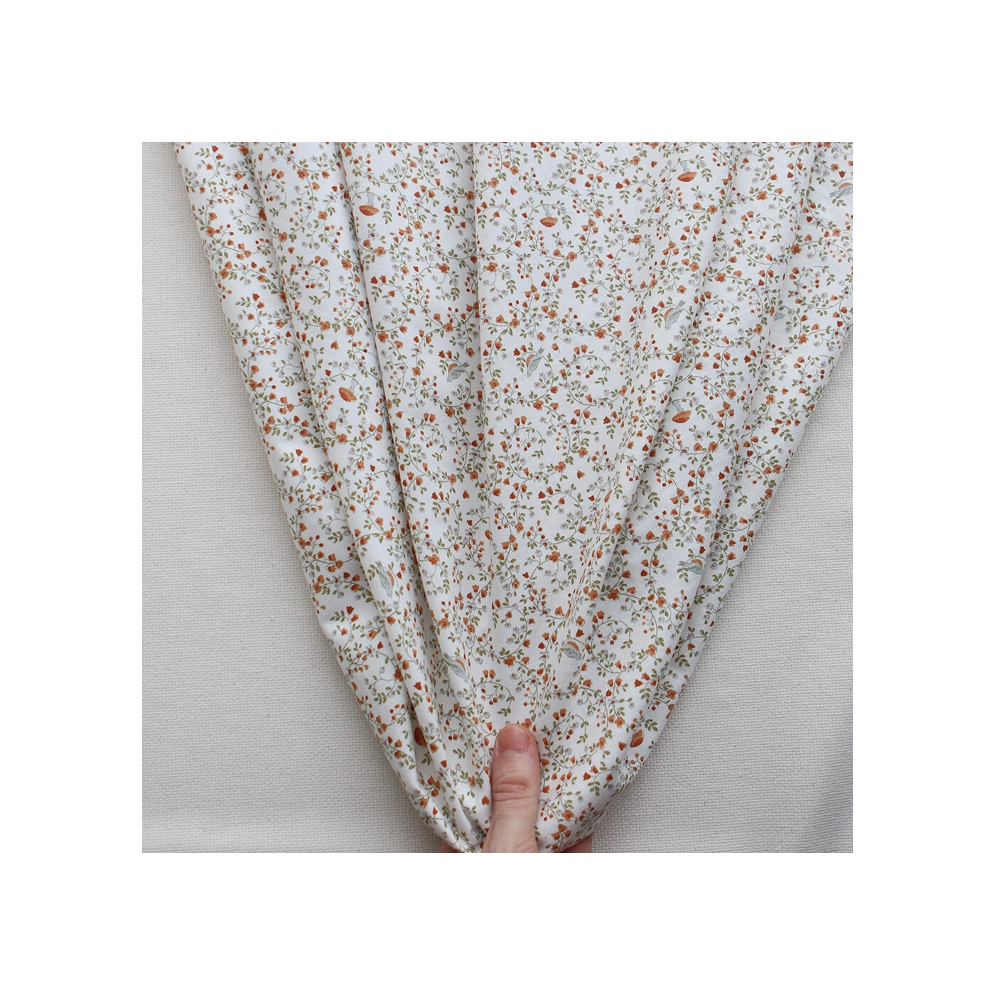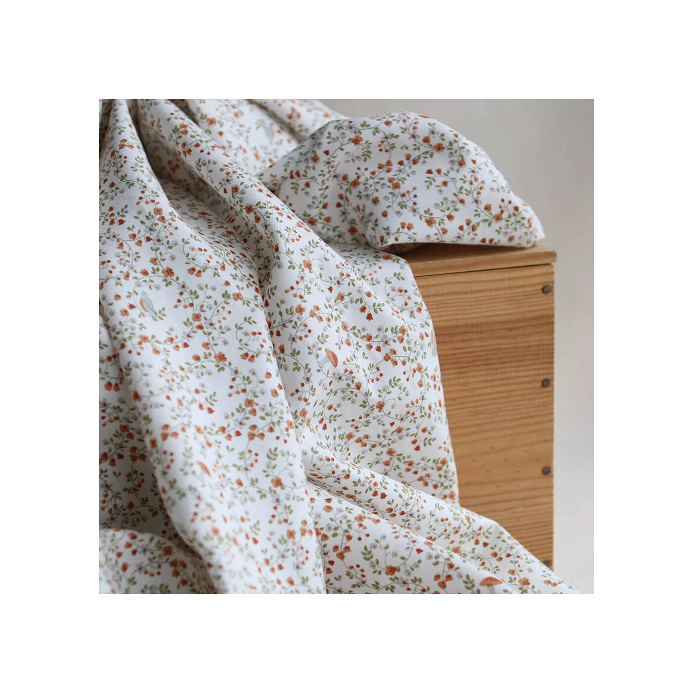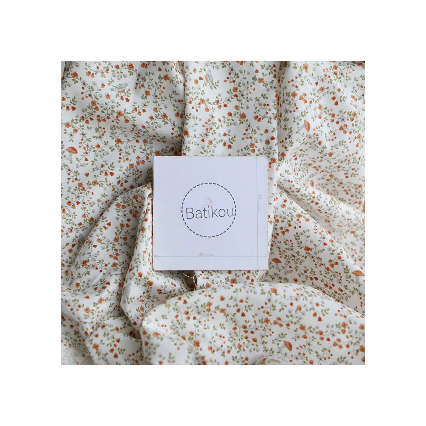 Coupon de 100 cm de Plume - Tissu sergé de coton imprimé fleuri et oiseaux roux