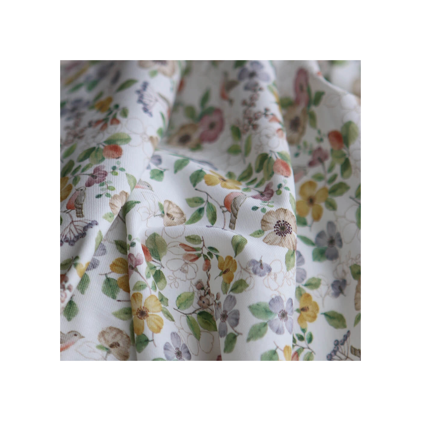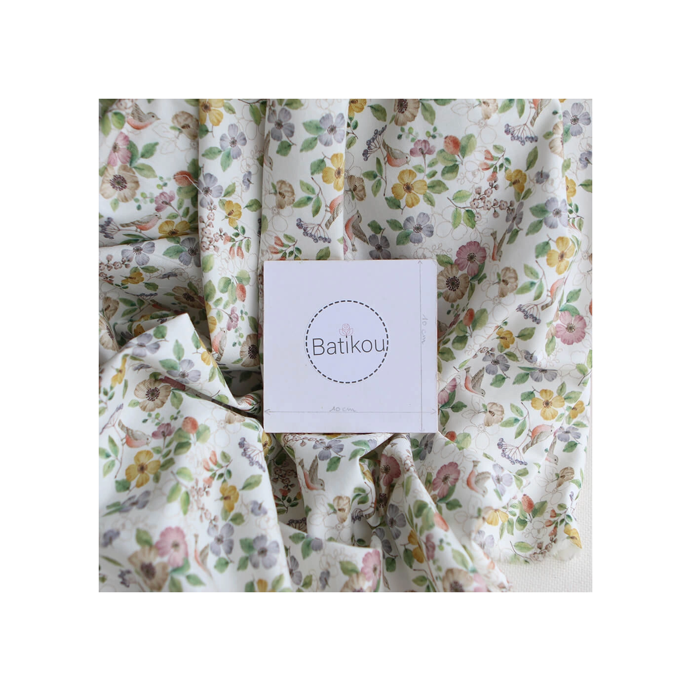 Coupon de 100 cm de Airelle - Tissu sergé de coton imprimé fleuri et oiseaux