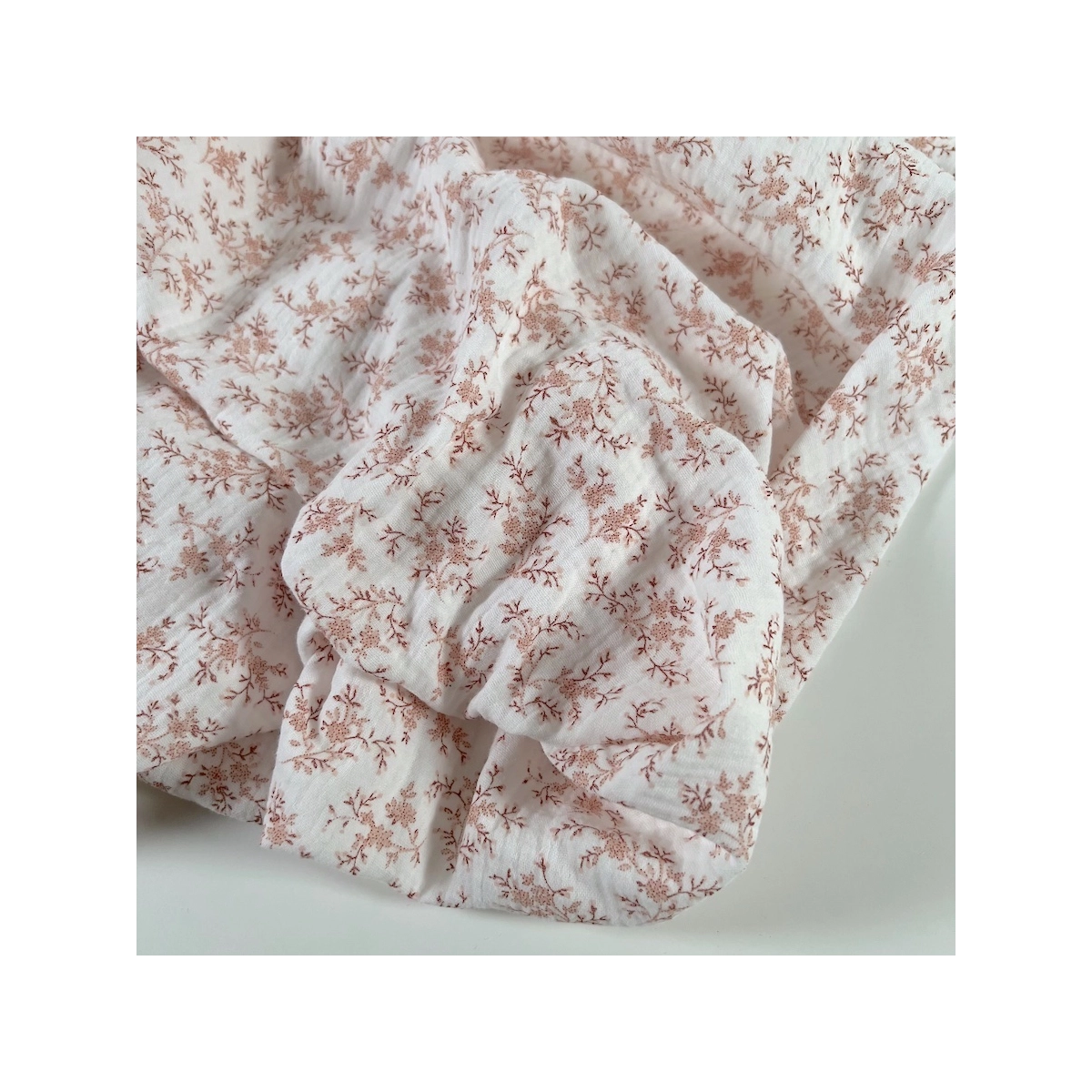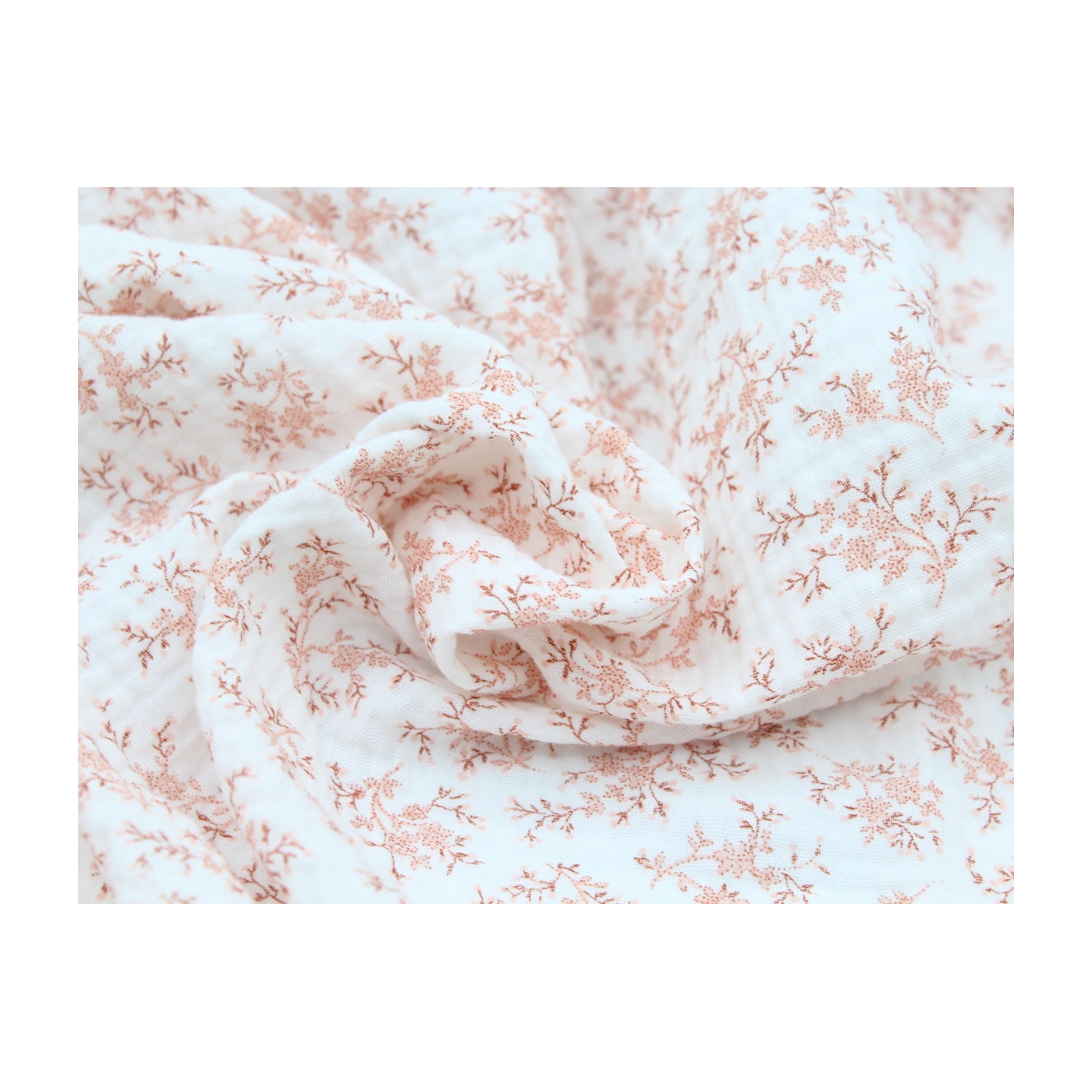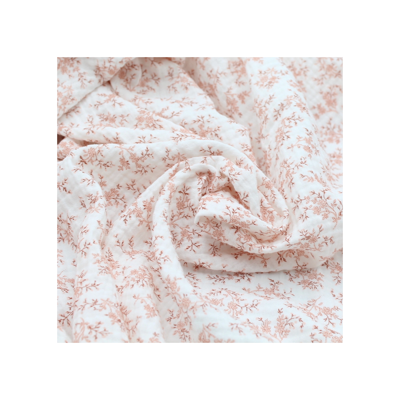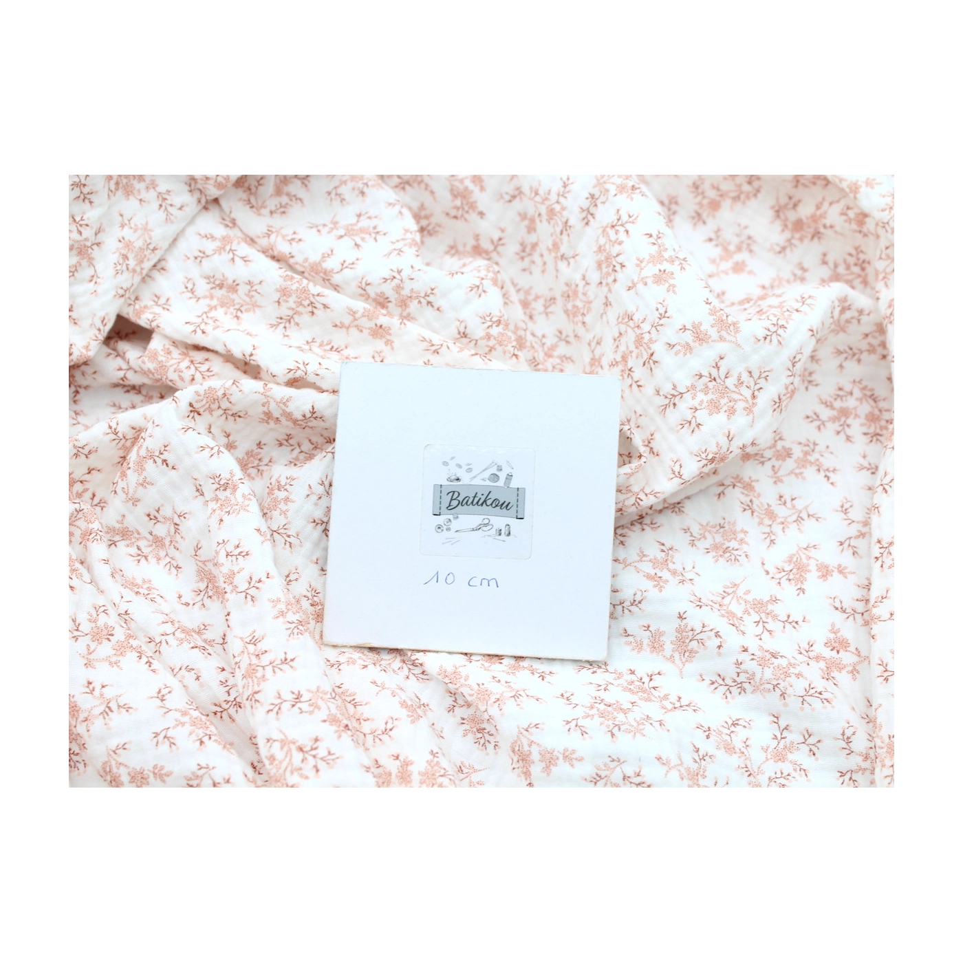 Coupon de 25 cm de Meriem - Double gaze de coton BIO motif exclusif Pêche frais
