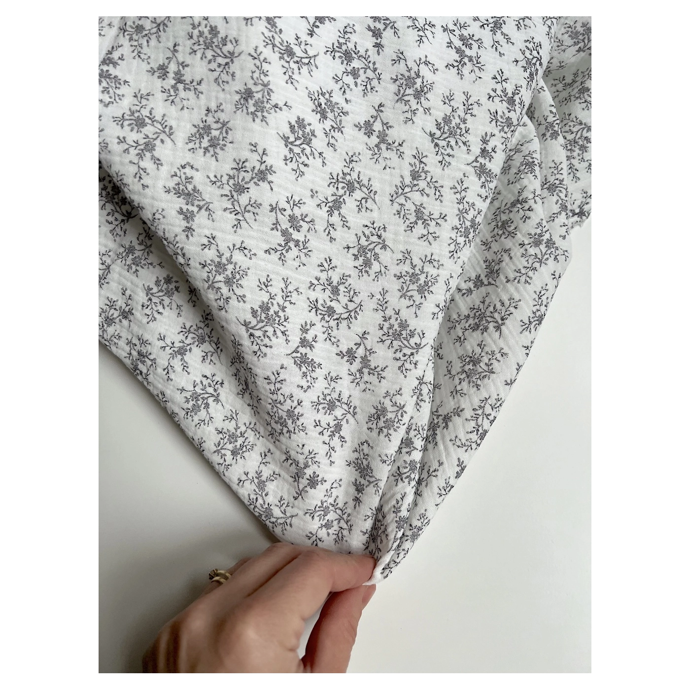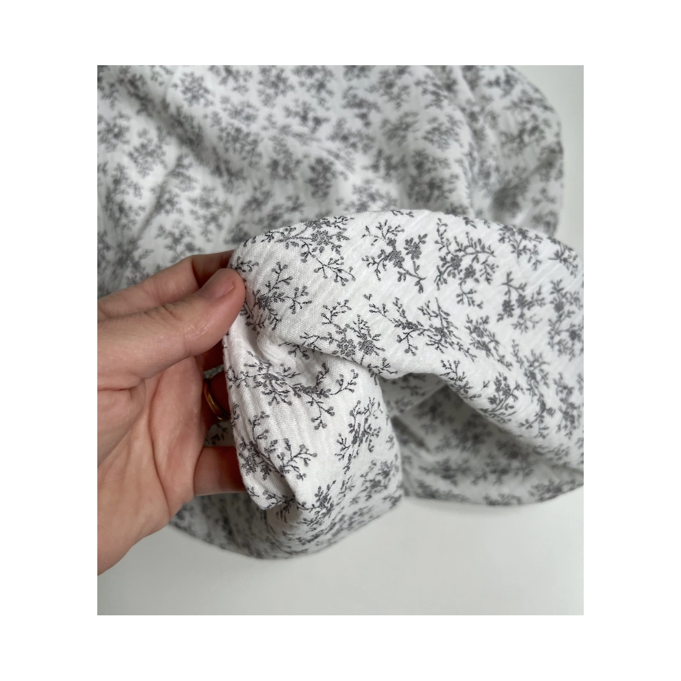 Coupon de 50 cm de Meriem - Double gaze de coton BIO exclusif blanc à motifs fleuris gris