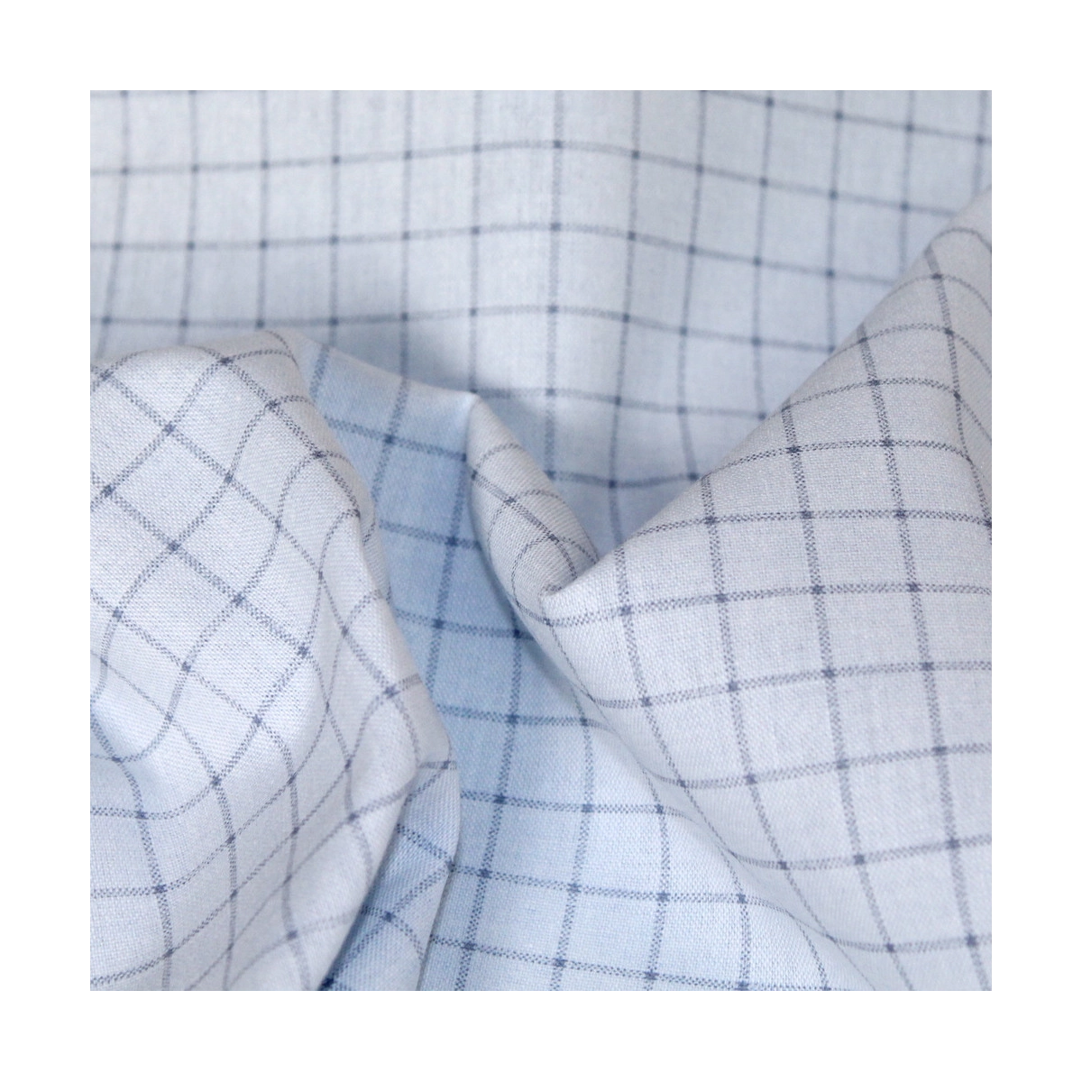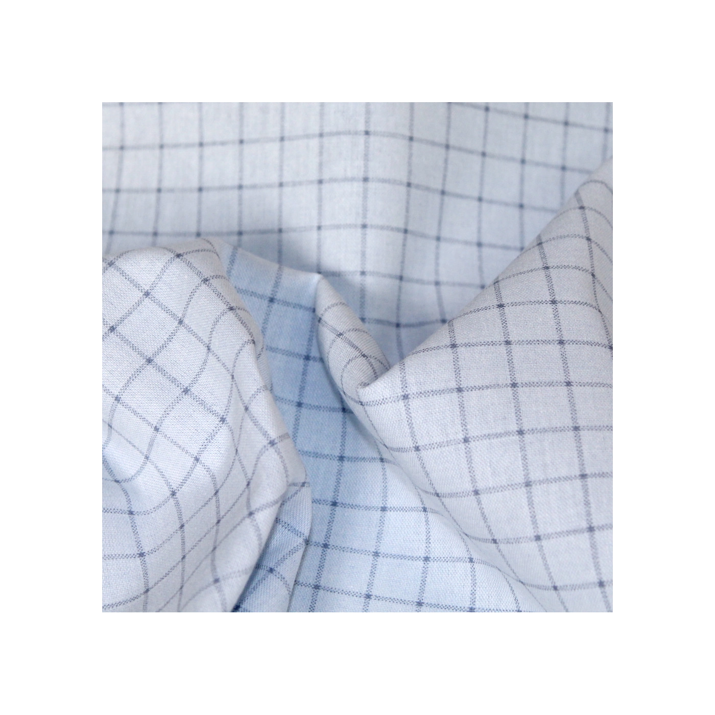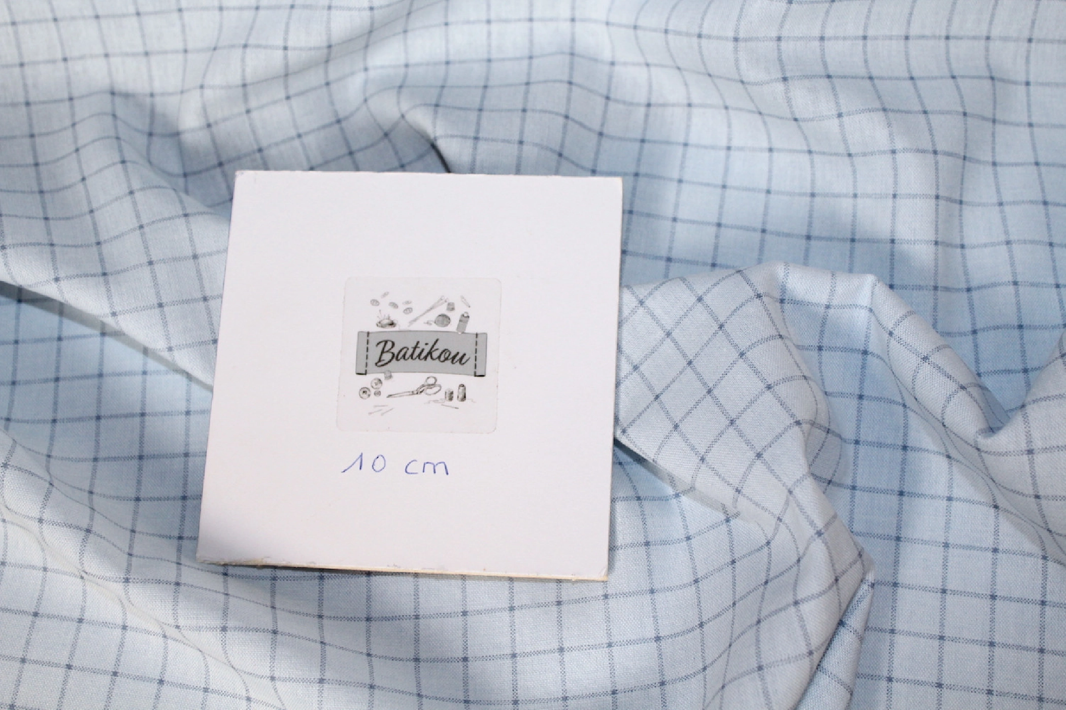 Coupon de 85 cm de Chambray coton bleu à carreaux