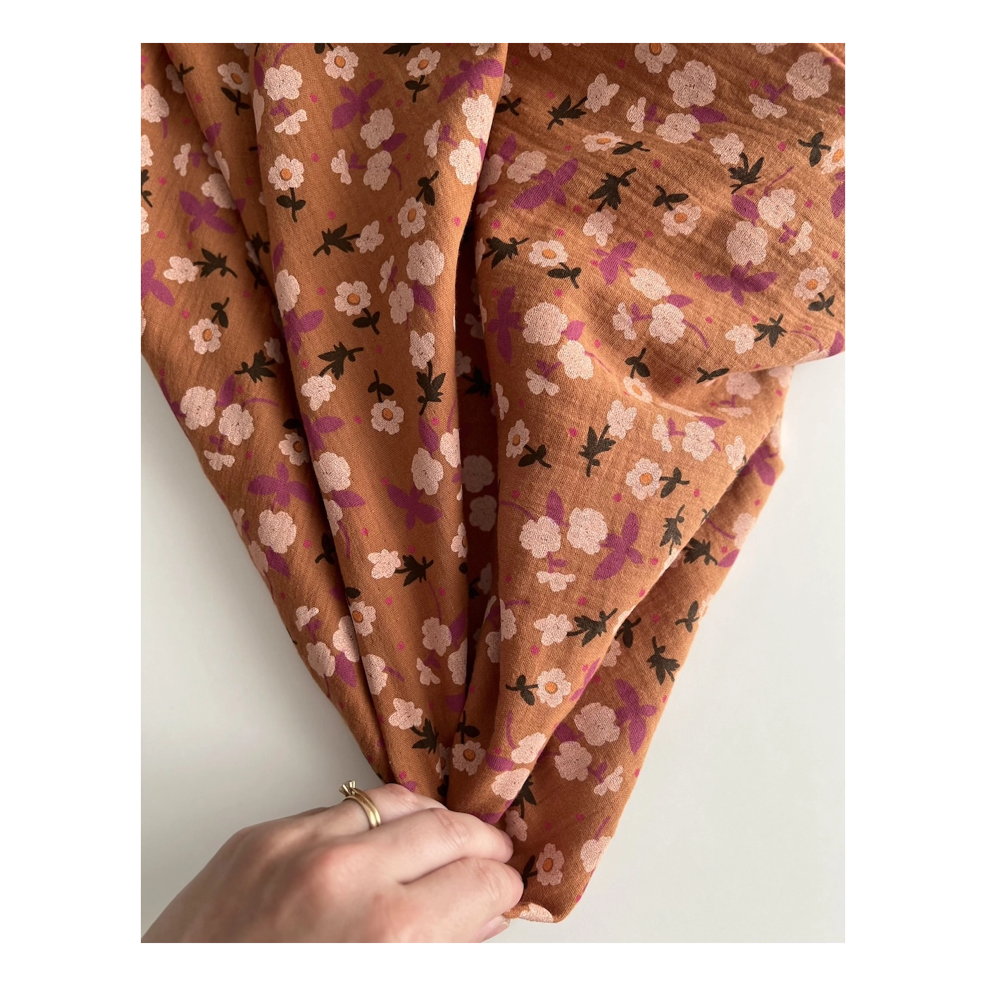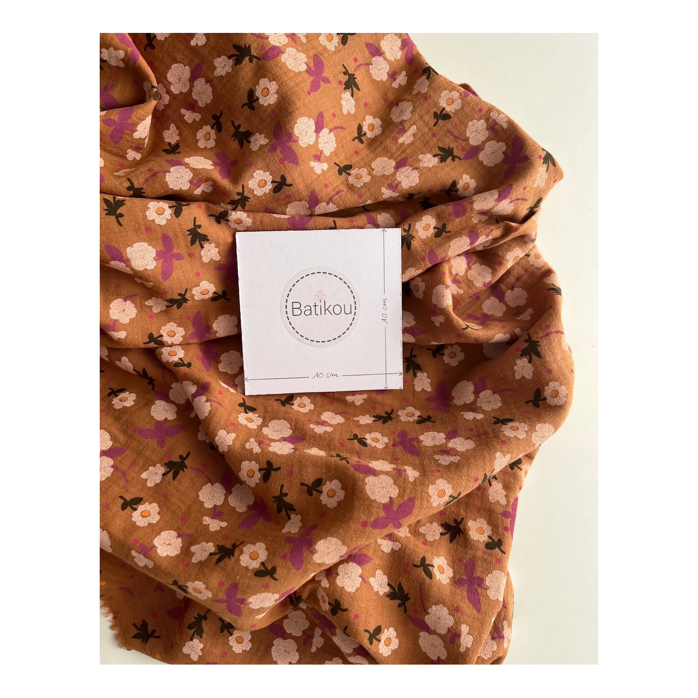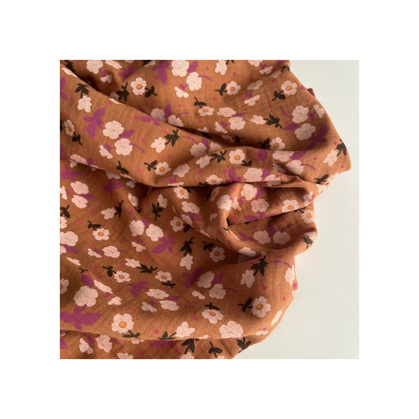 Coupon de 59 cm de Olivia - Double gaze de coton coloris fond écureuil imprimé fleuri