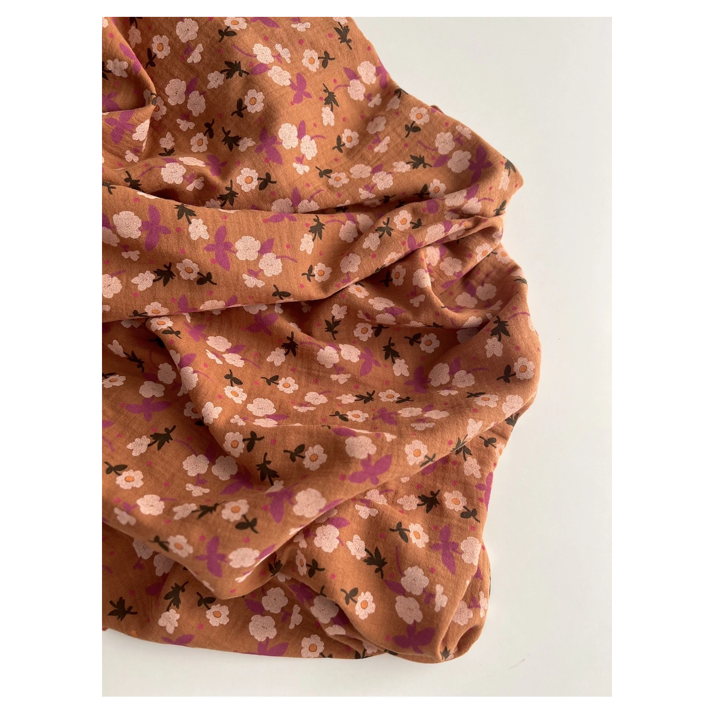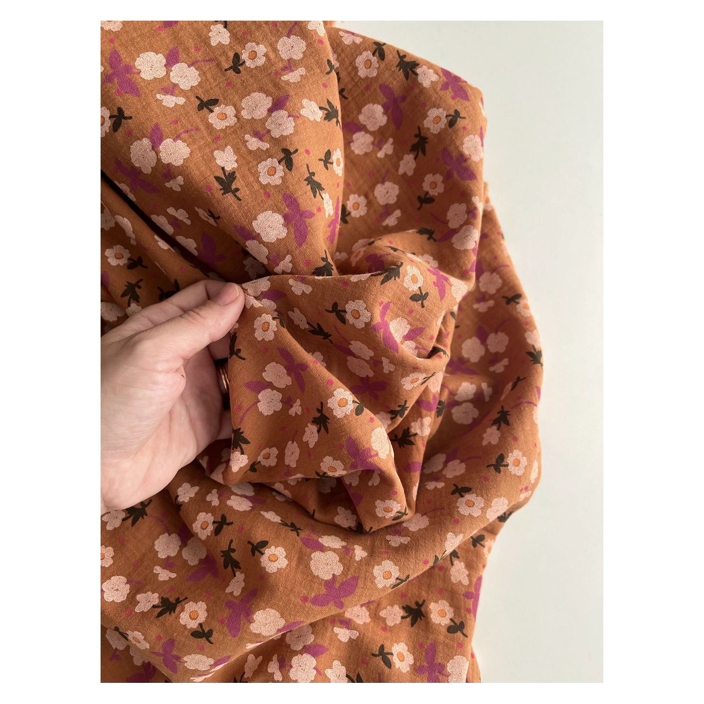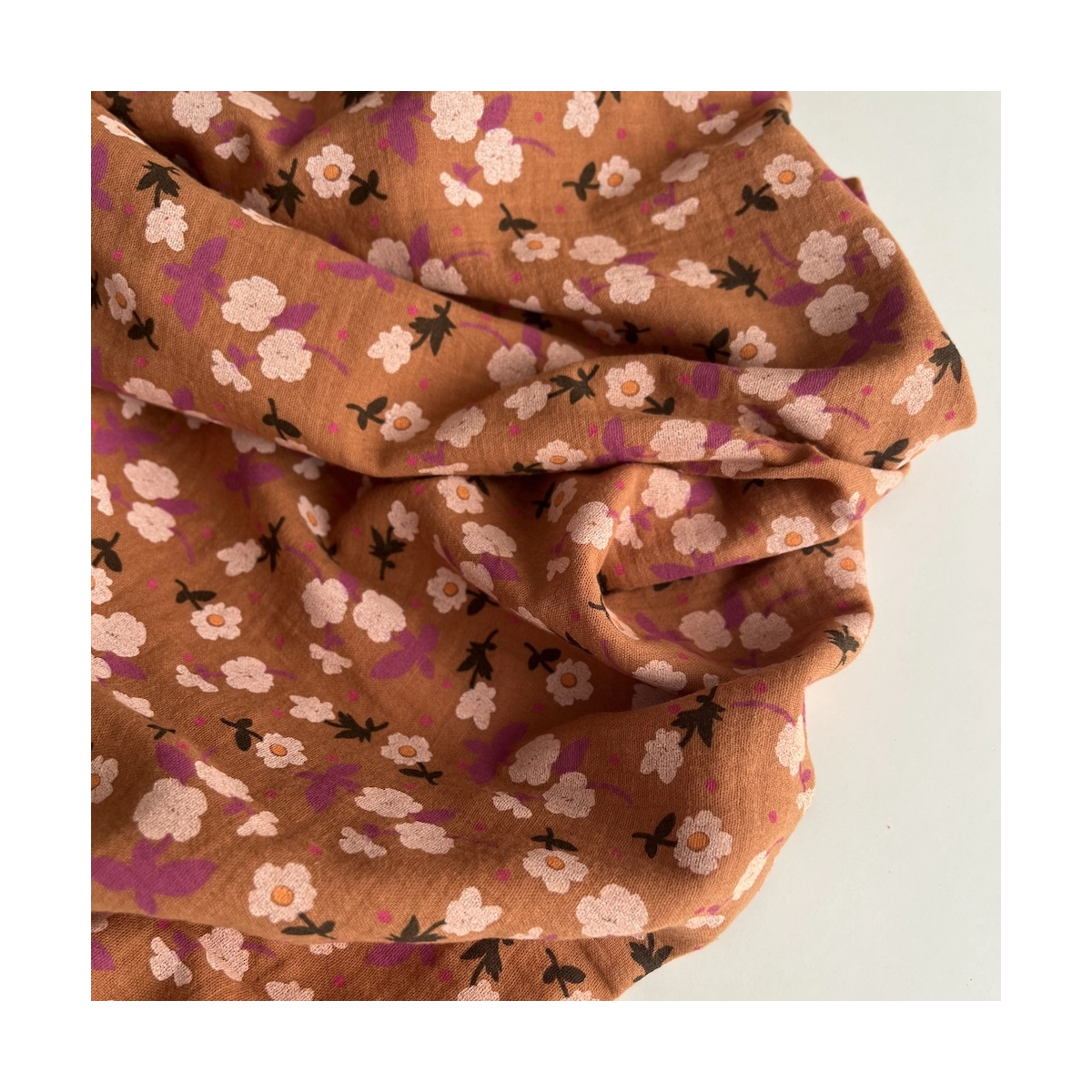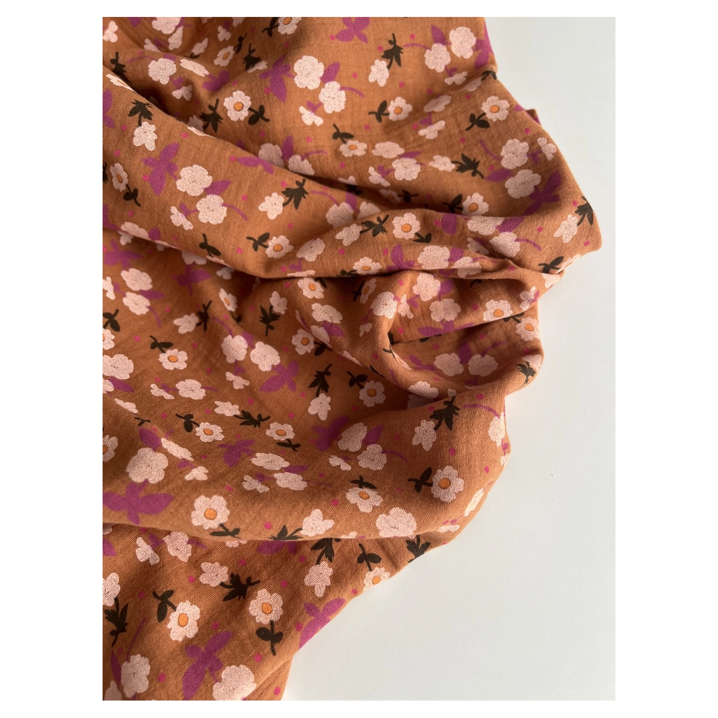 Coupon de 59 cm de Olivia - Double gaze de coton coloris fond écureuil imprimé fleuri