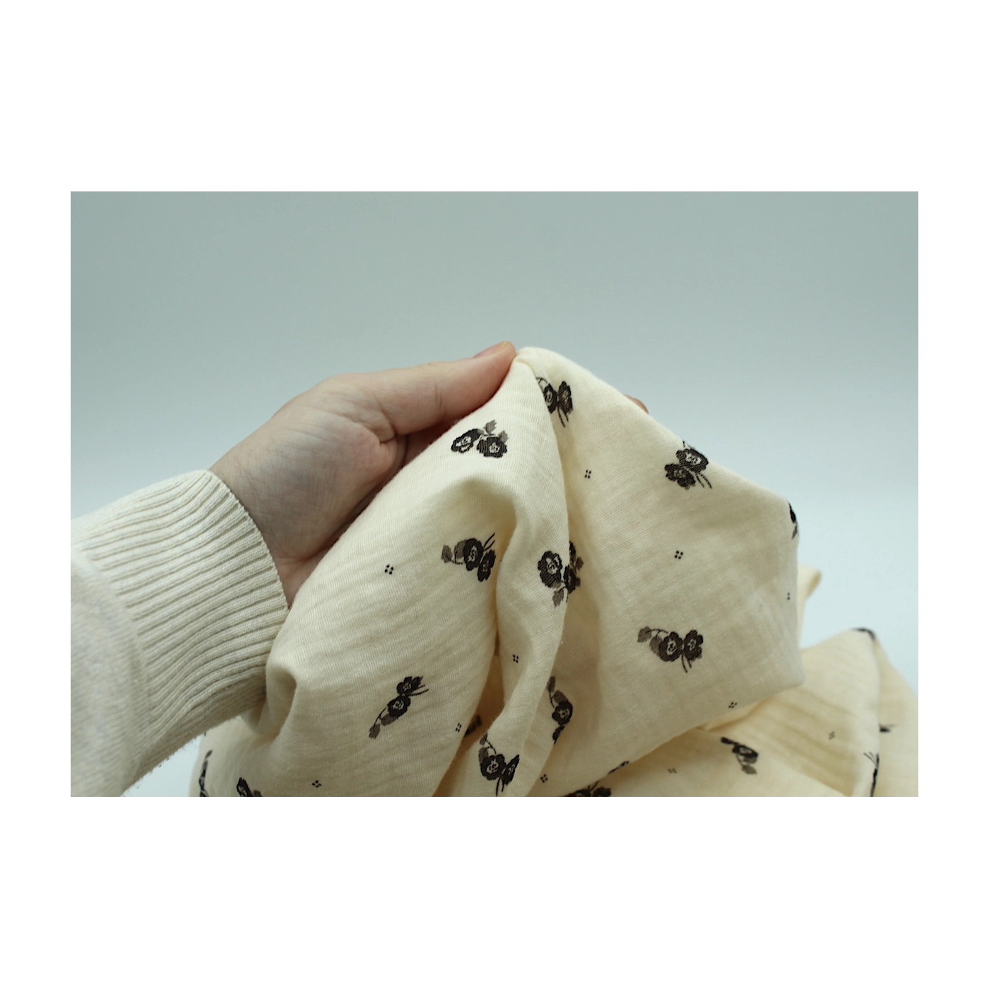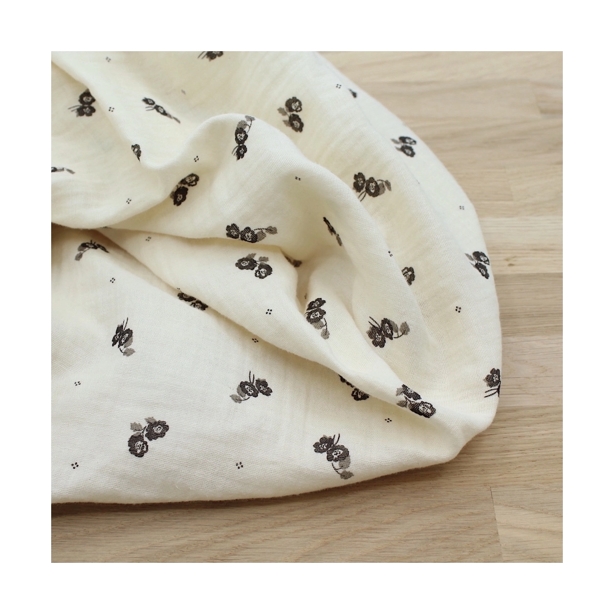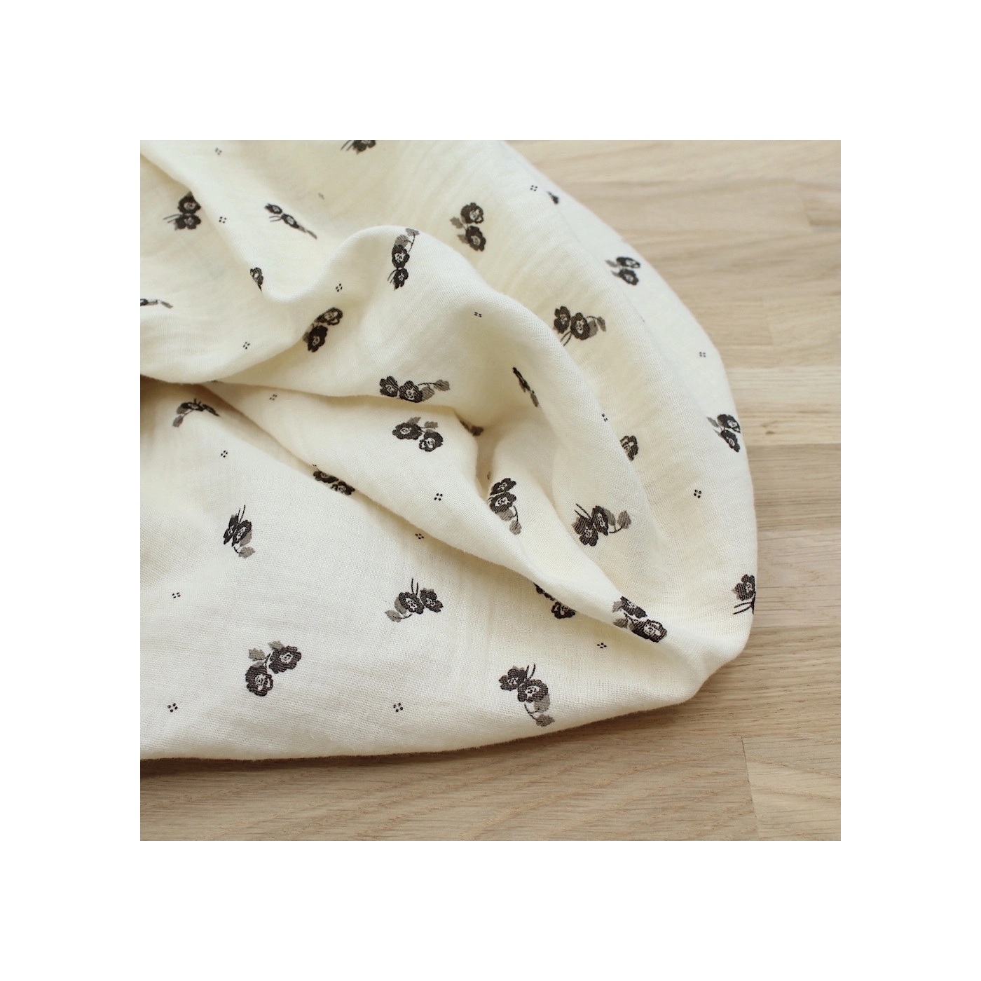 Coupon de 60 cm de Hana - Double gaze de coton BIO écru motif exclusif Ebène