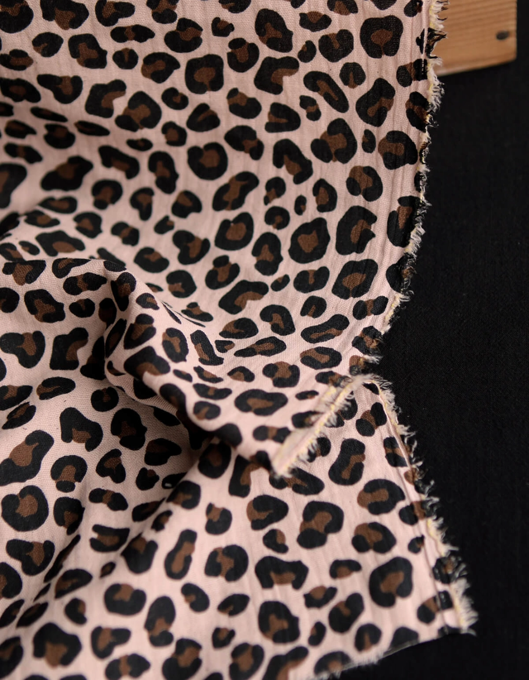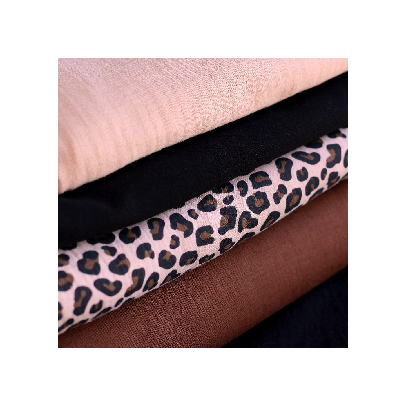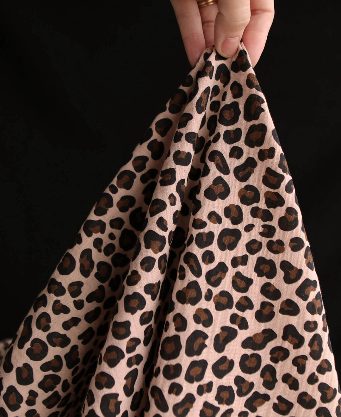 Coupon de 95 cm de Lea - Double gaze coton BIO motif exclusif Graou fond nude