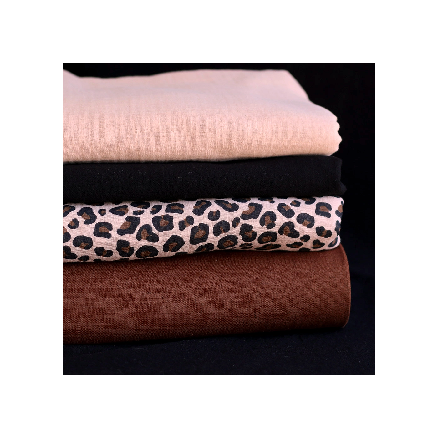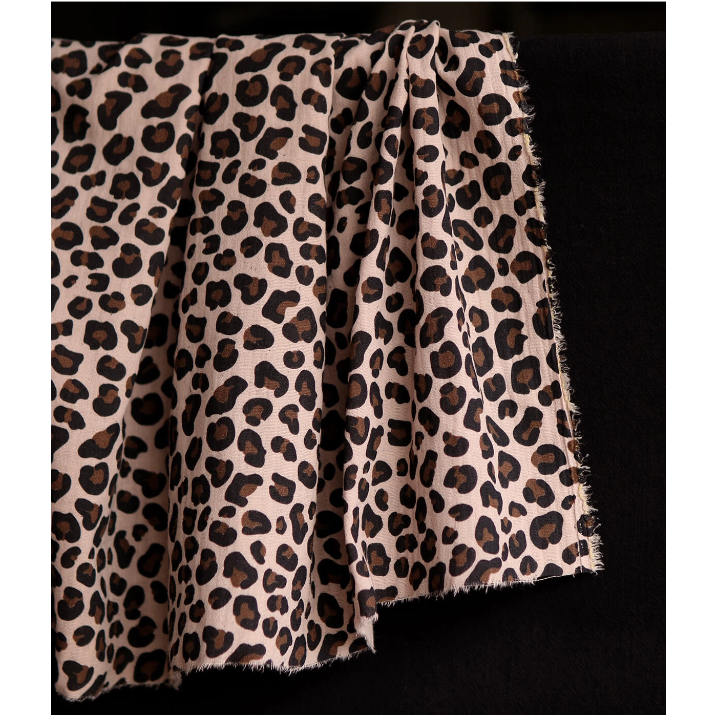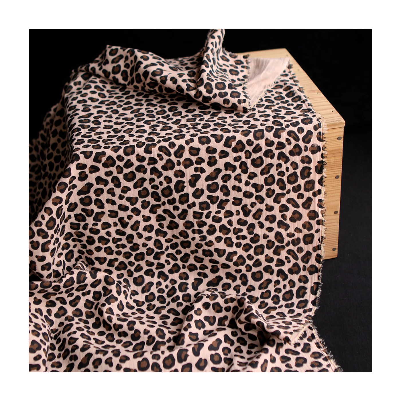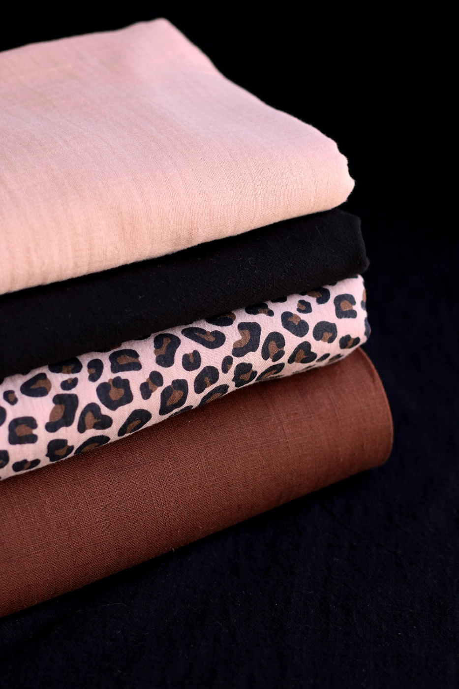 Coupon de 95 cm de Lea - Double gaze coton BIO motif exclusif Graou fond nude
