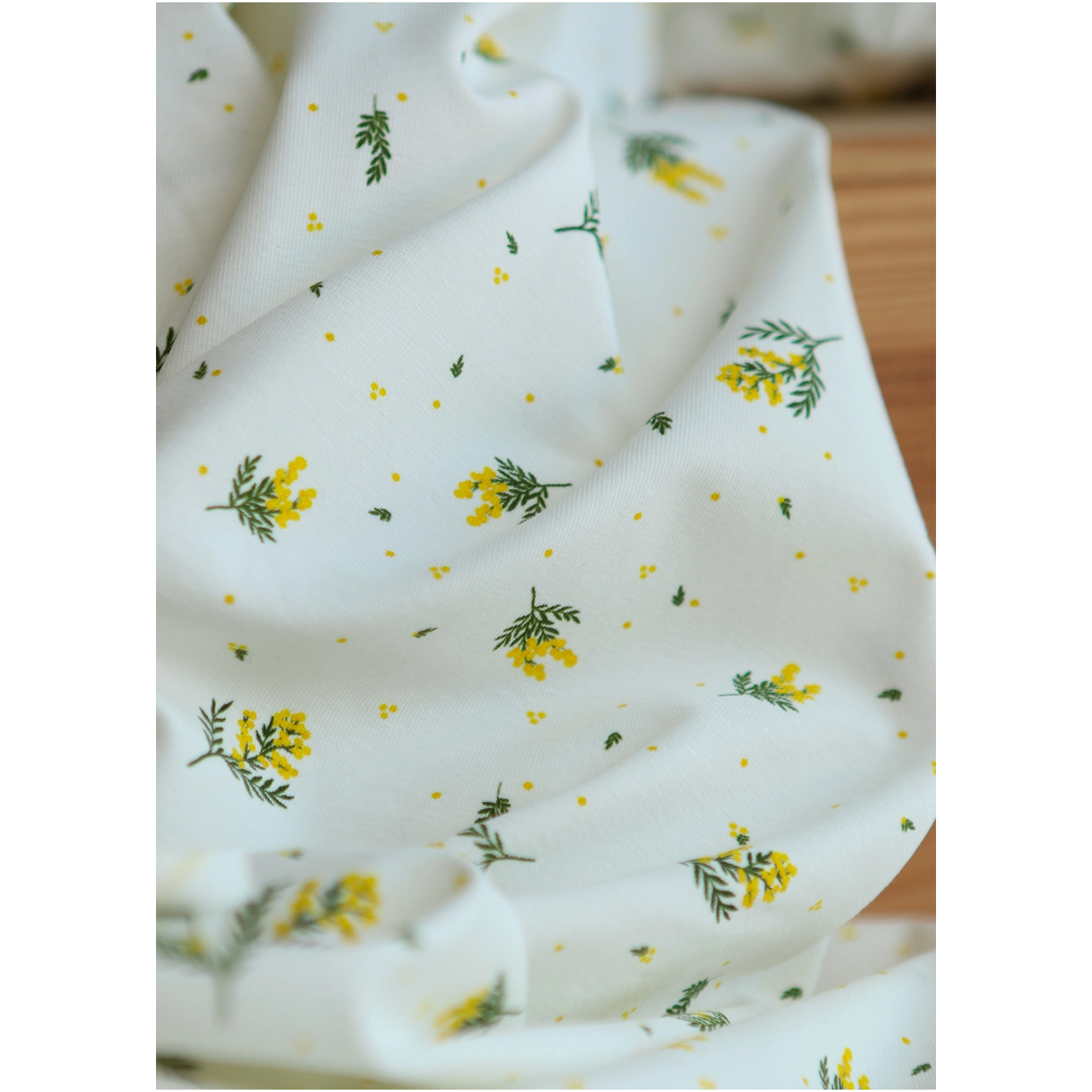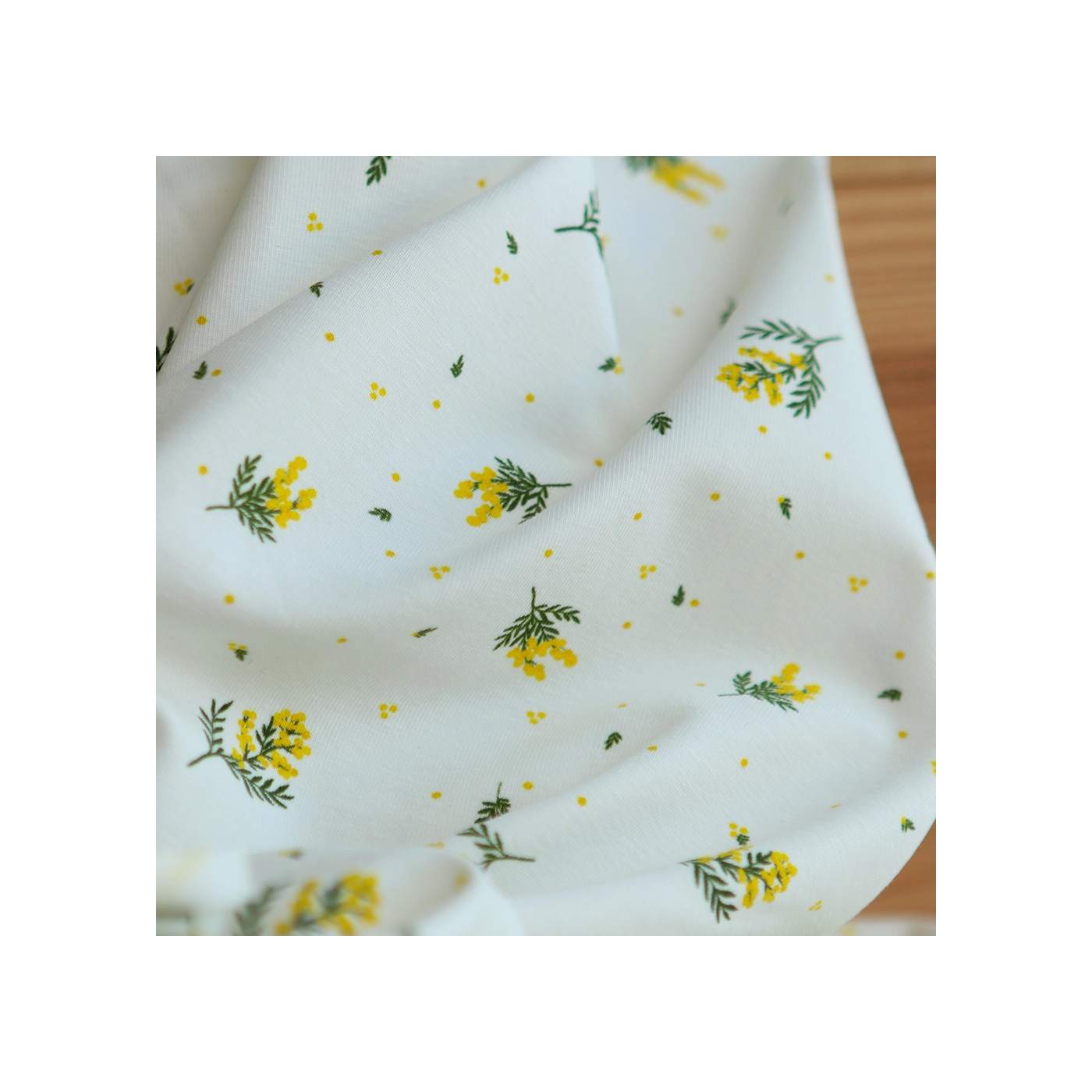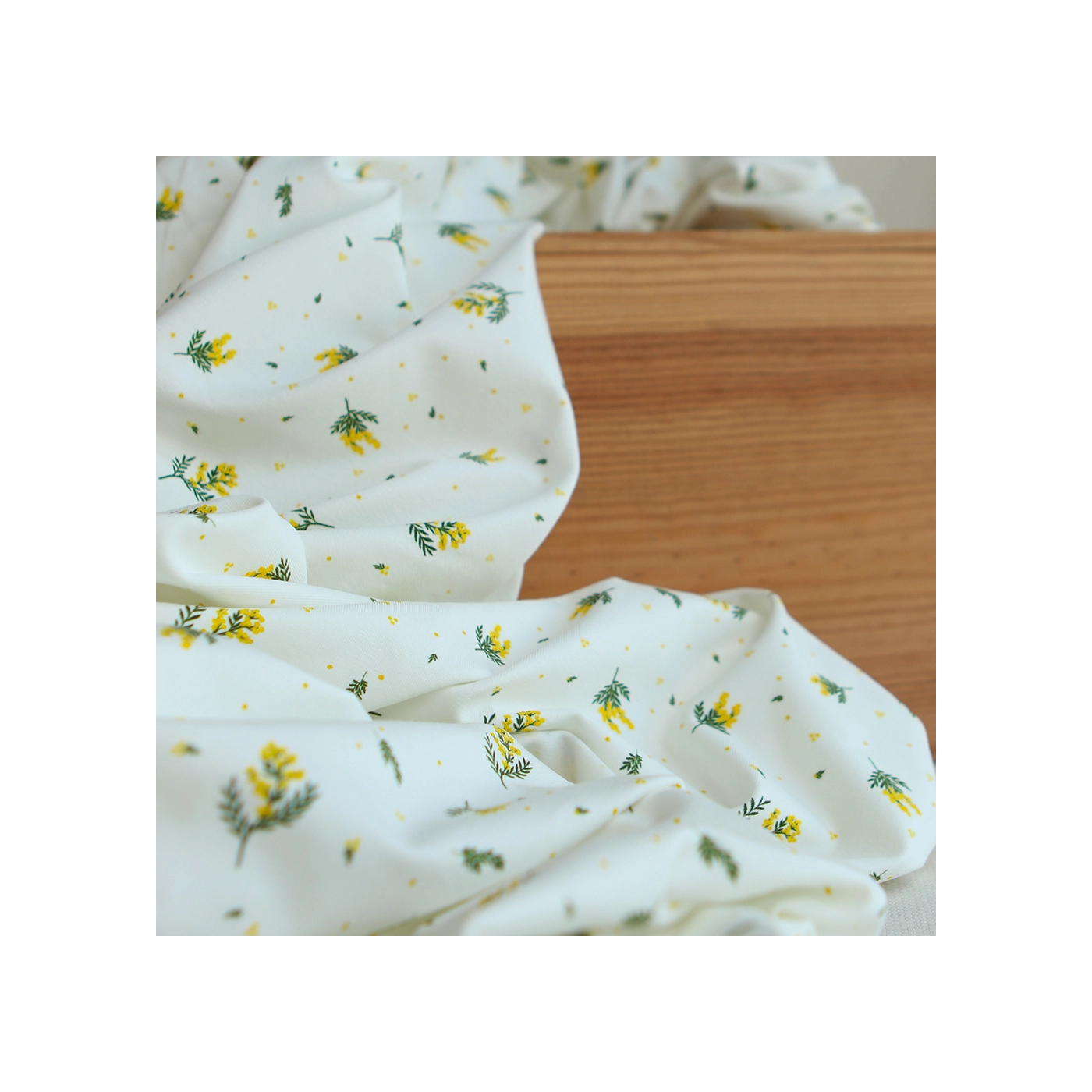 Mimosa - Jersey coton BIO motif exclusif mimosa allégé