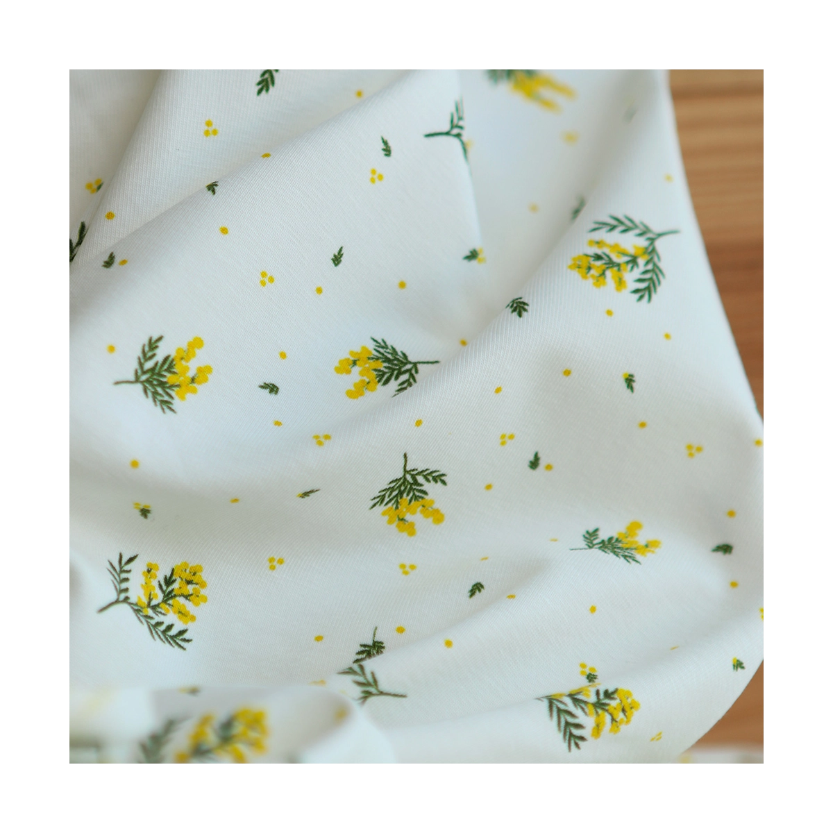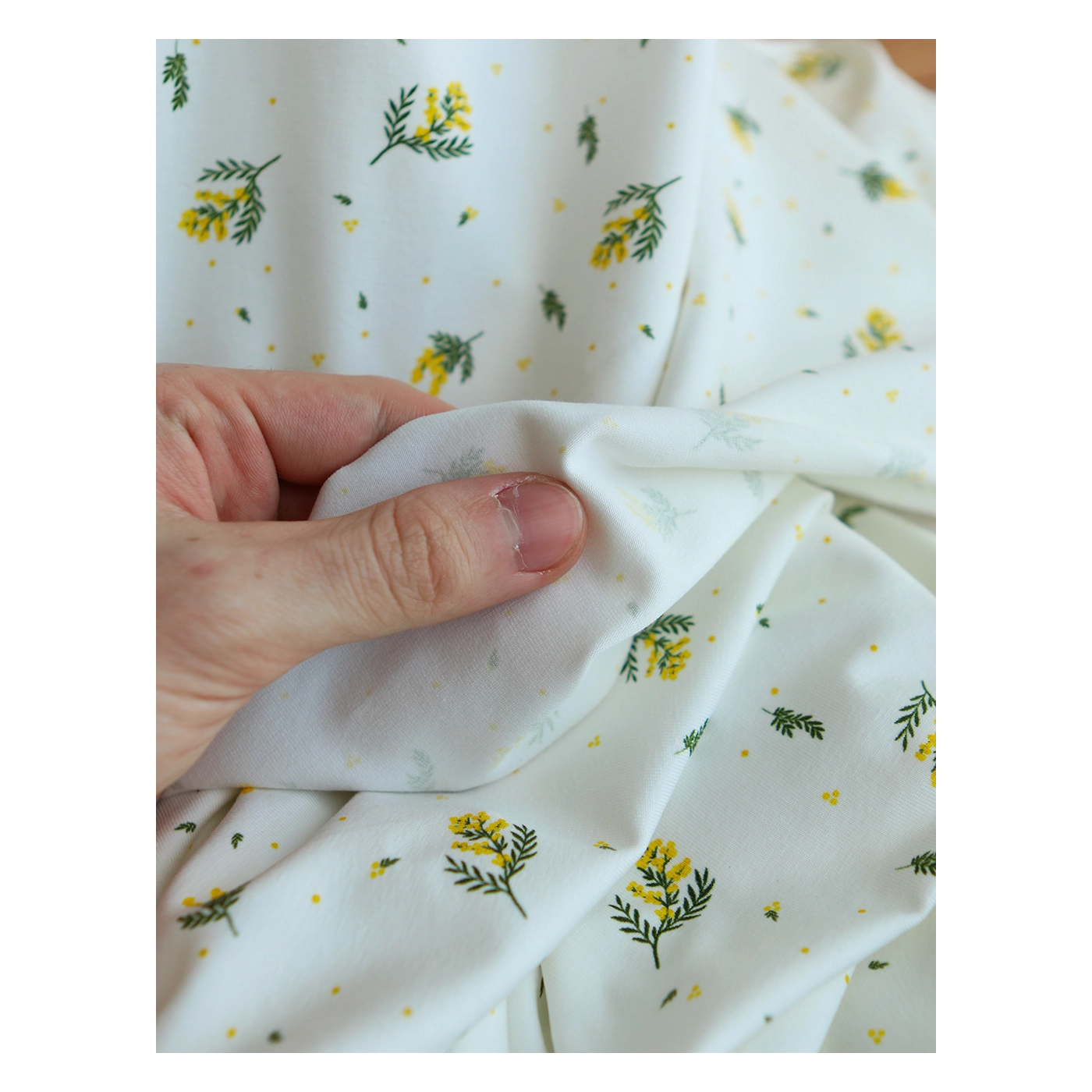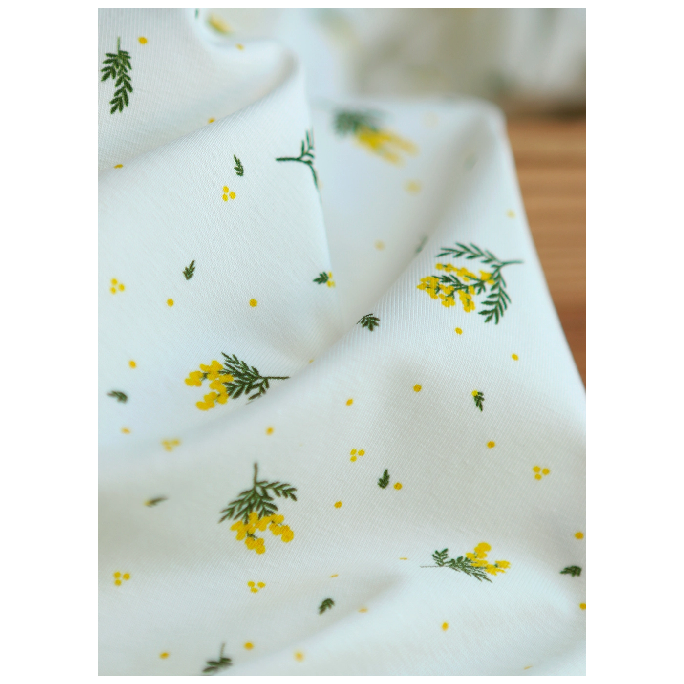 Mimosa - Jersey coton BIO motif exclusif mimosa allégé