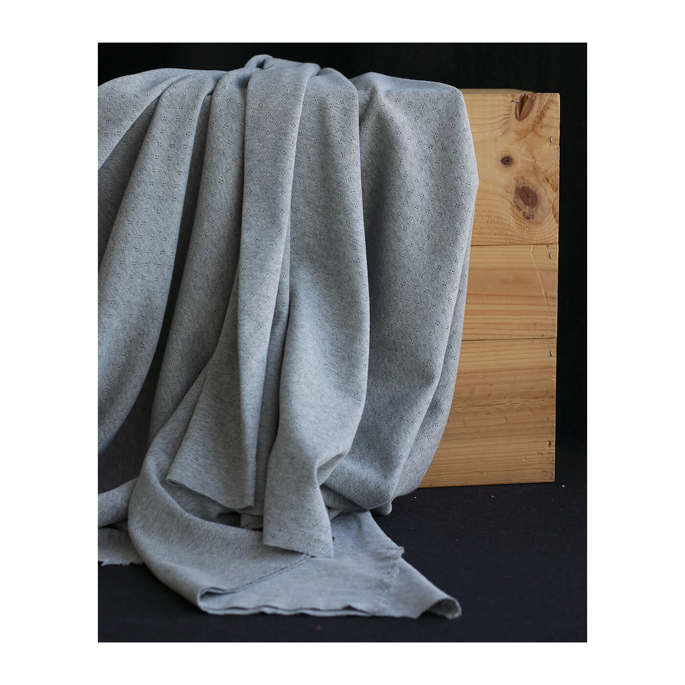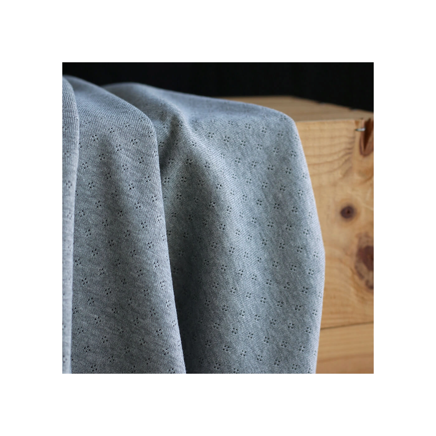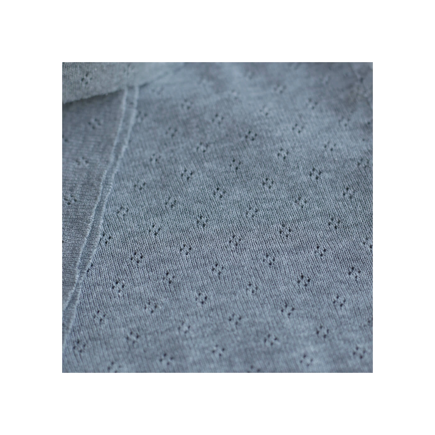 Avec son gris clair chiné, son pointelle délicat et sa douceur naturelle, ce tissu est un très beau choix pour des créations confortables, raffinées et intemporelles.