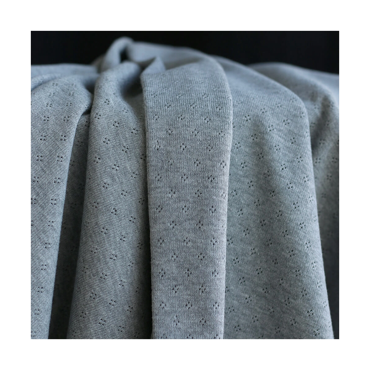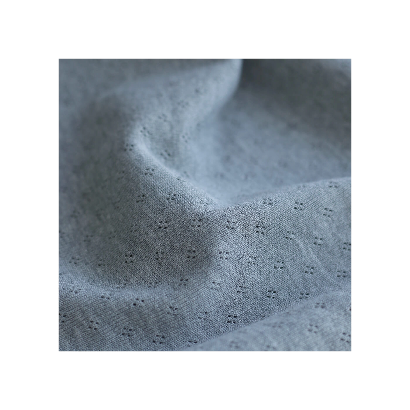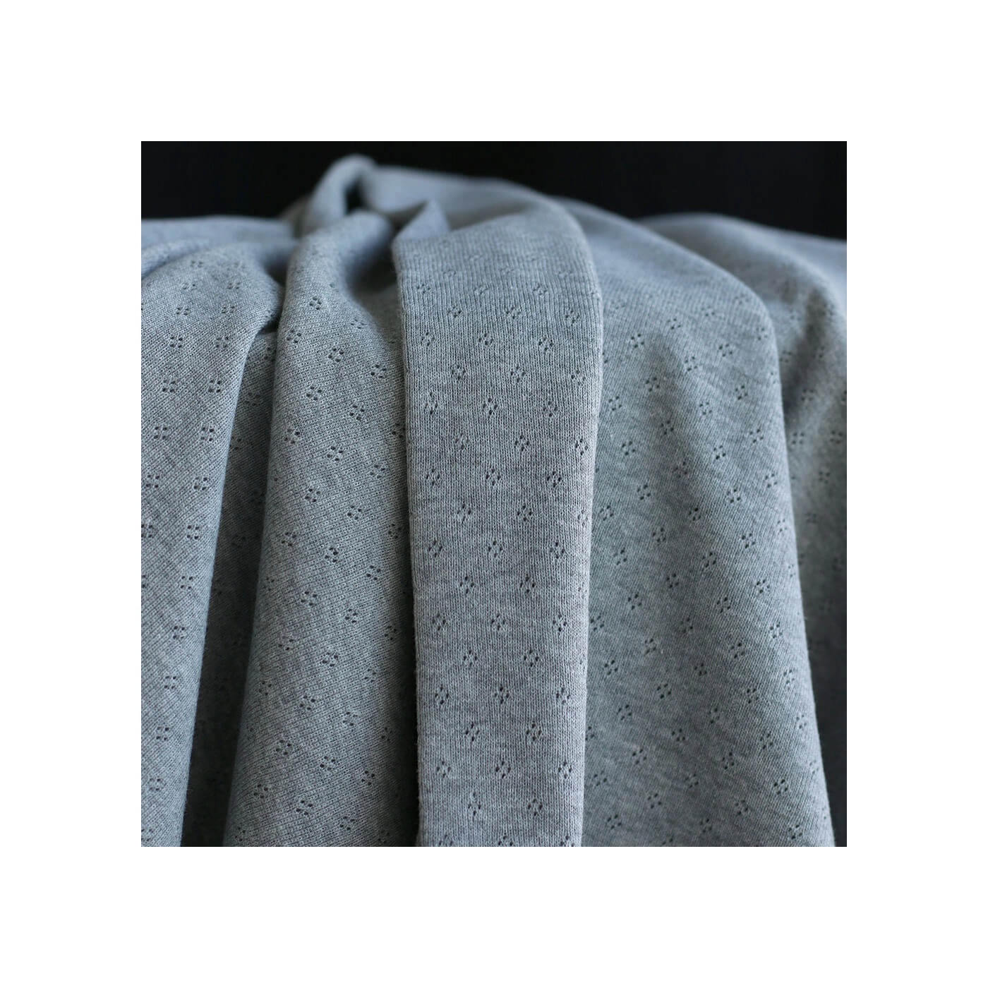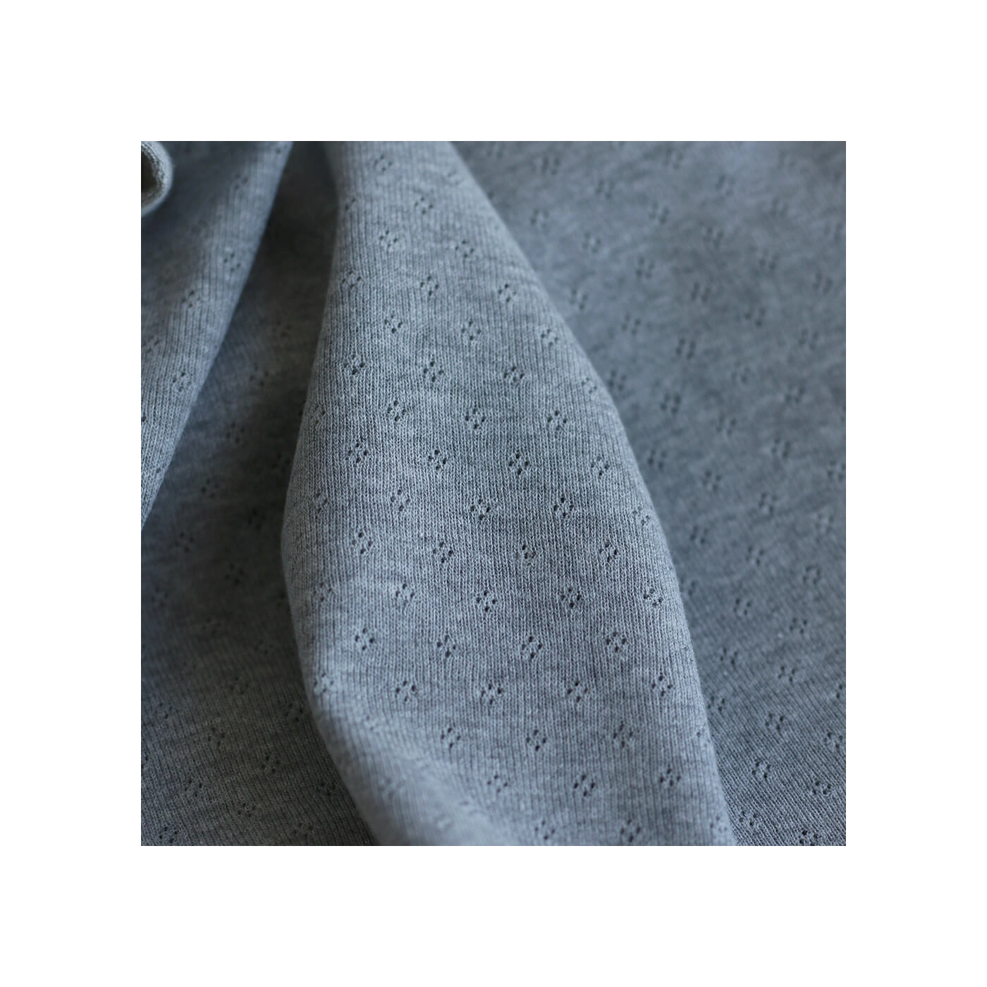 Avec son gris clair chiné, son pointelle délicat et sa douceur naturelle, ce tissu est un très beau choix pour des créations confortables, raffinées et intemporelles.