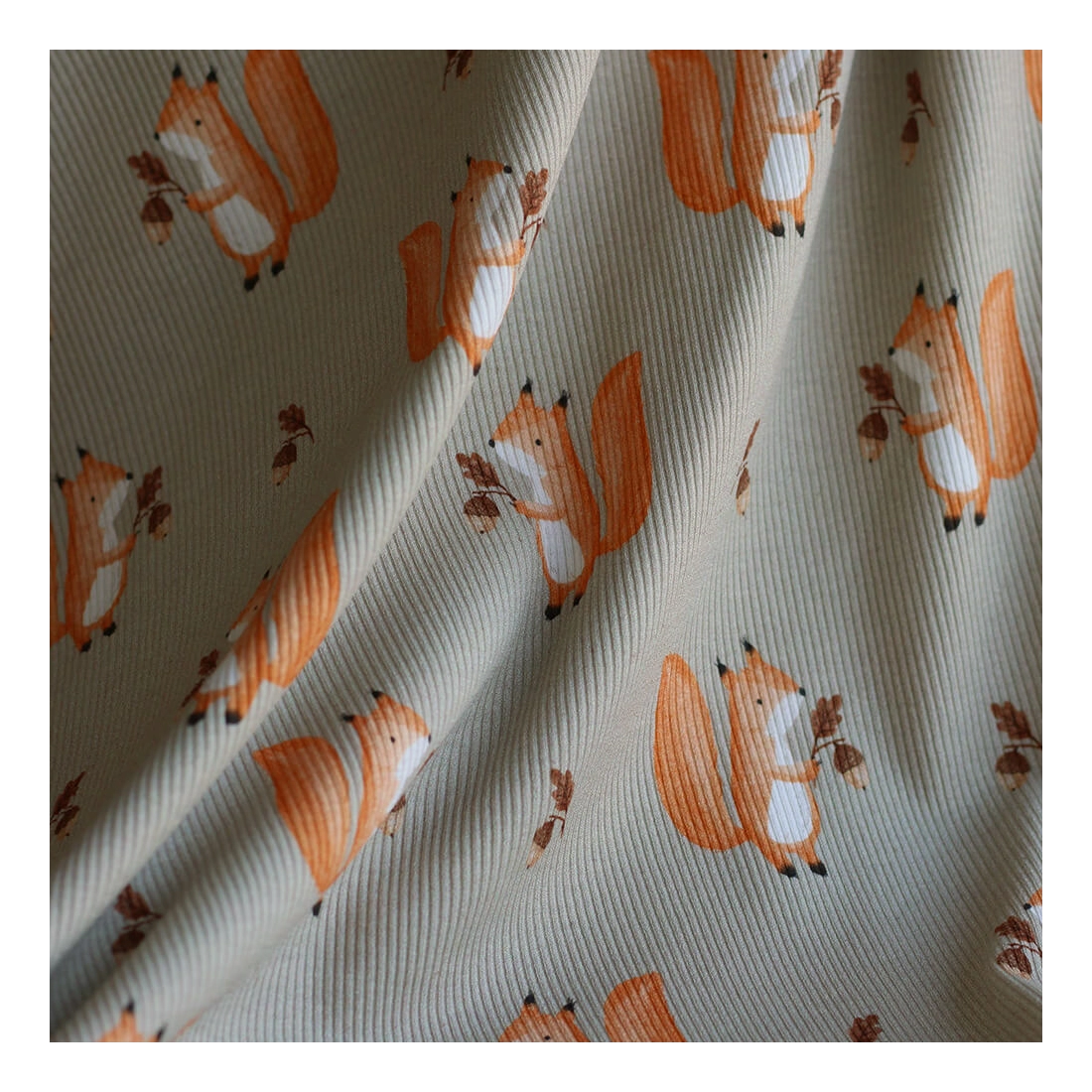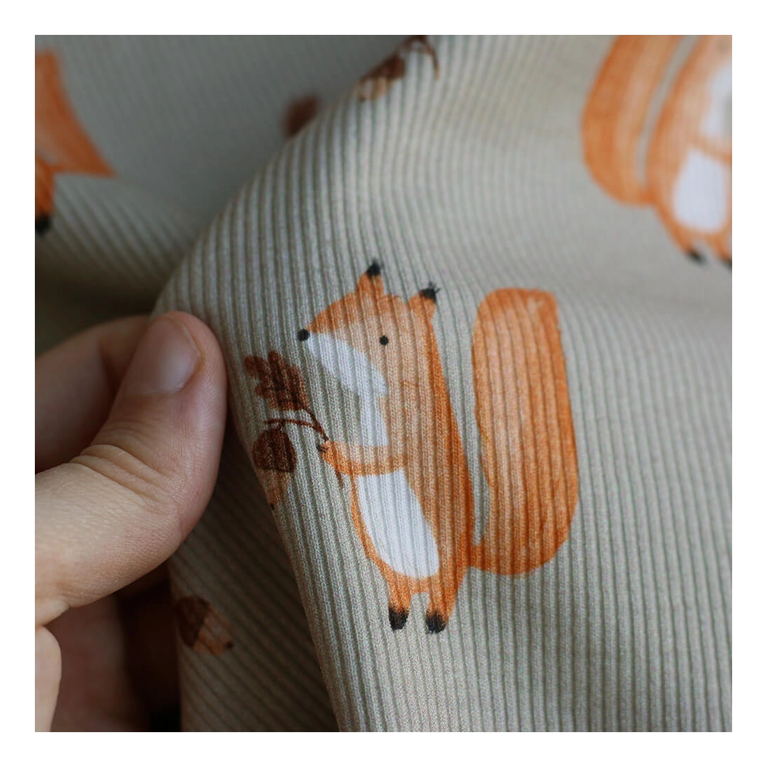 Ce jersey coton à fines côtes séduit par son motif plein de douceur et son joli fond vert sauge, à la fois naturel, apaisant et facile à associer. On y retrouve de petits ours brun noisette vêtus d’un pull écru, accompagnés de petits oiseaux rouge brique, de feuillages et de quelques détails inspirés de la forêt. Les fines côtes apportent un léger relief vertical qui enrichit visuellement le tissu tout en conservant une belle souplesse. Avec ses 230 g/m2, cette maille offre un excellent équilibre entre confort, tenue et élasticité.