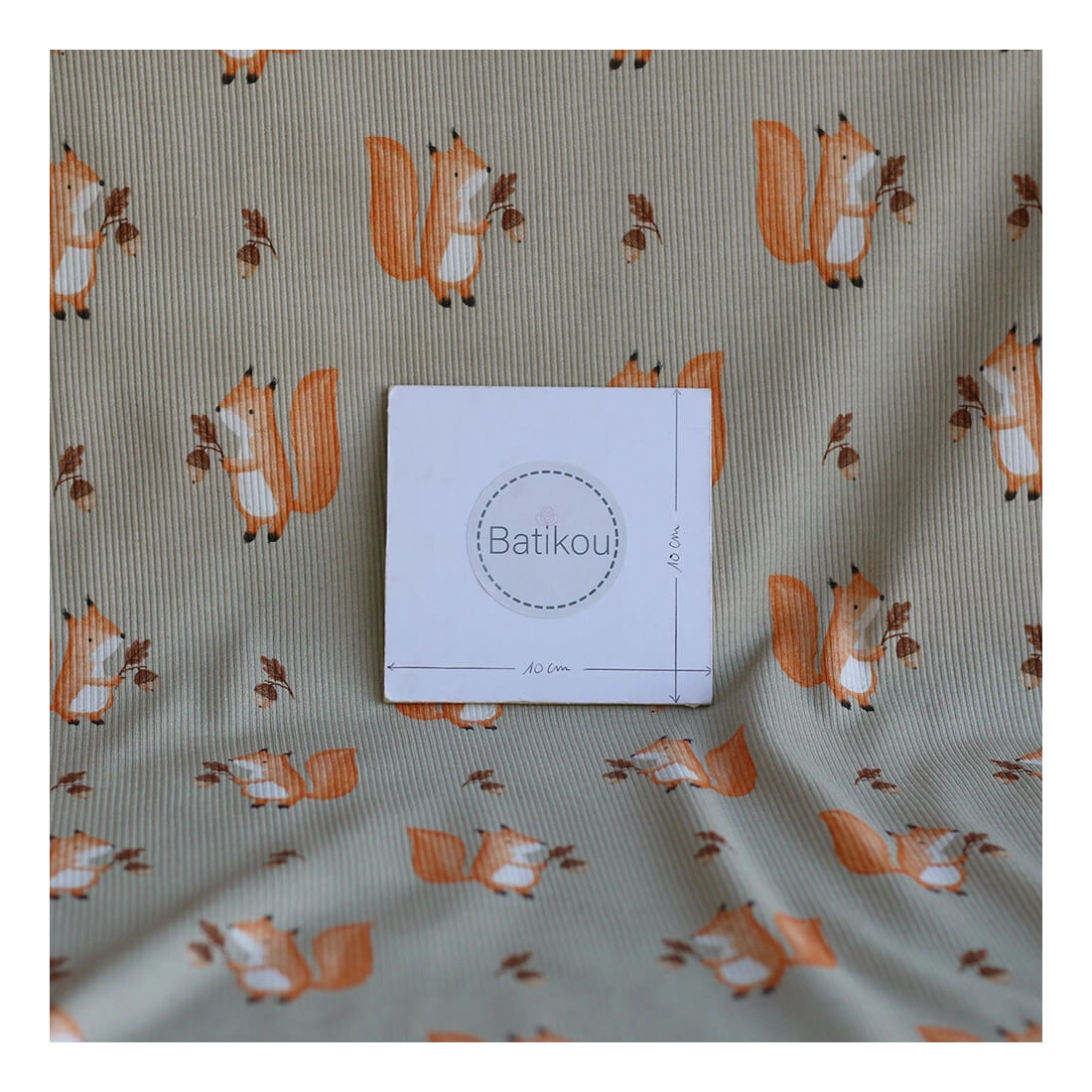 Avec son fond vert sauge, son motif ours plein de tendresse et sa structure en fines côtes, ce tissu est un très beau choix pour des créations confortables, douces et intemporelles.