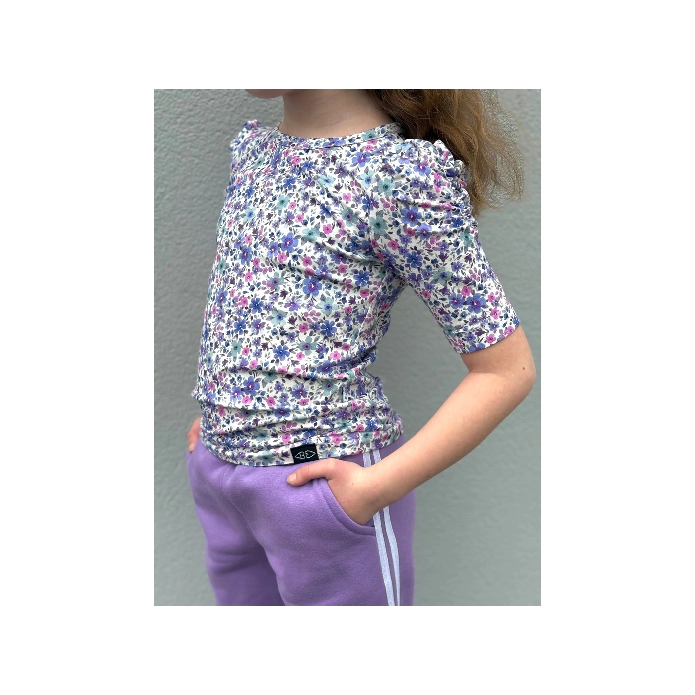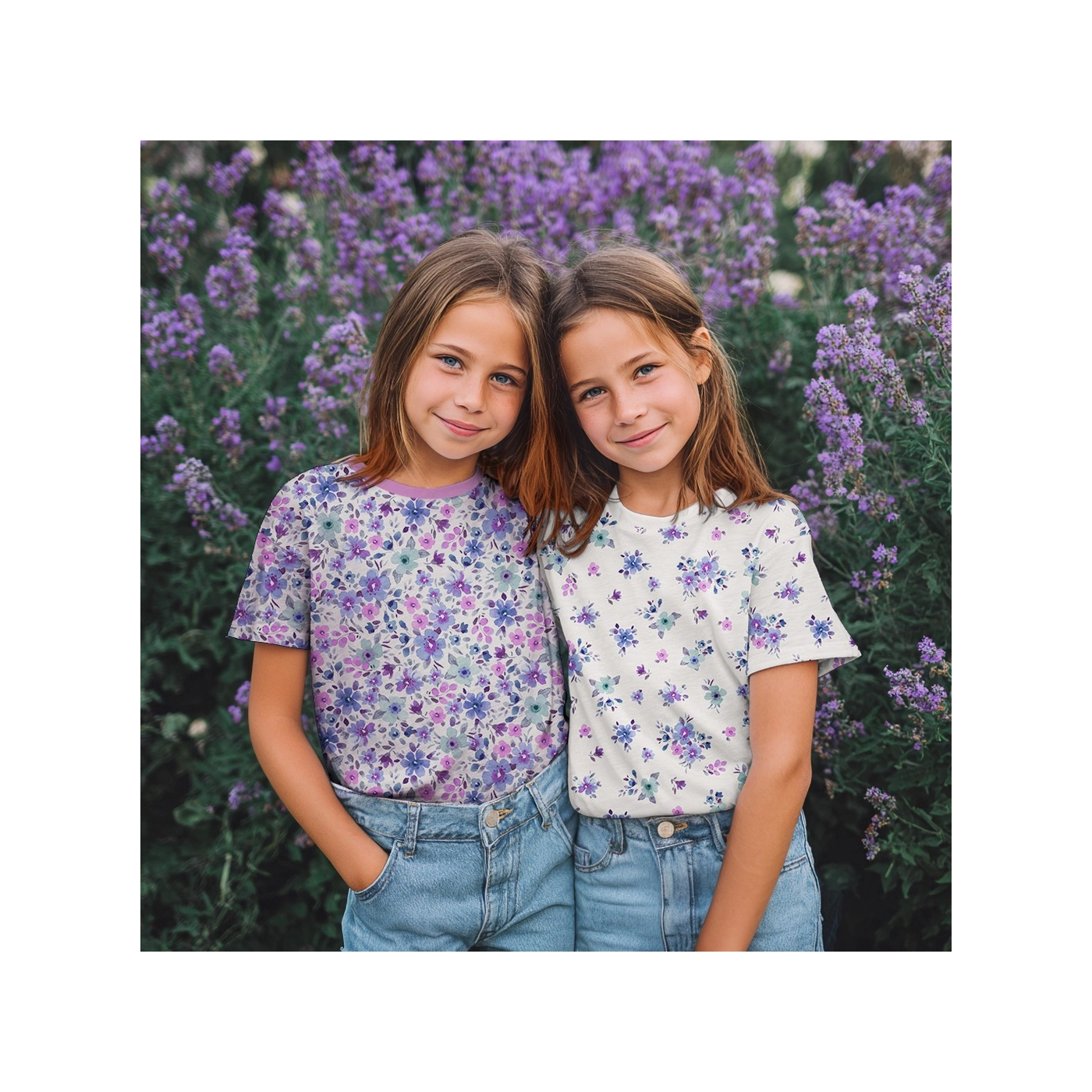 Pour un ensemble coordonné, associez cette version aérée au jersey fleurs denses (référence 07095.022) dans la même gamme chromatique : un haut uni dans le motif espacé et un bas dans le motif dense, ou inversement.