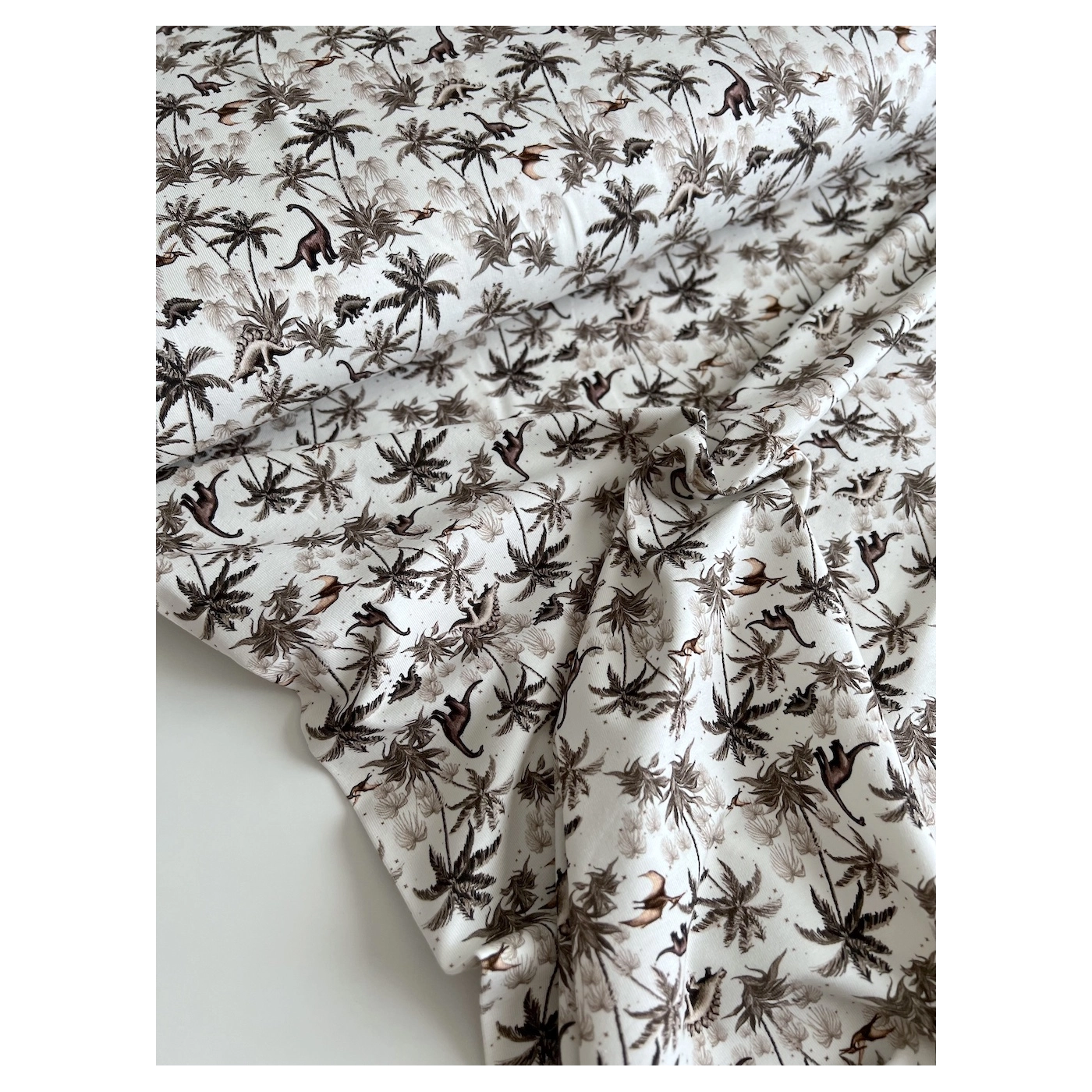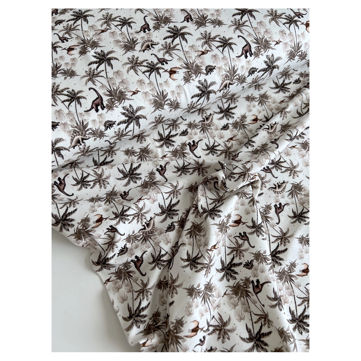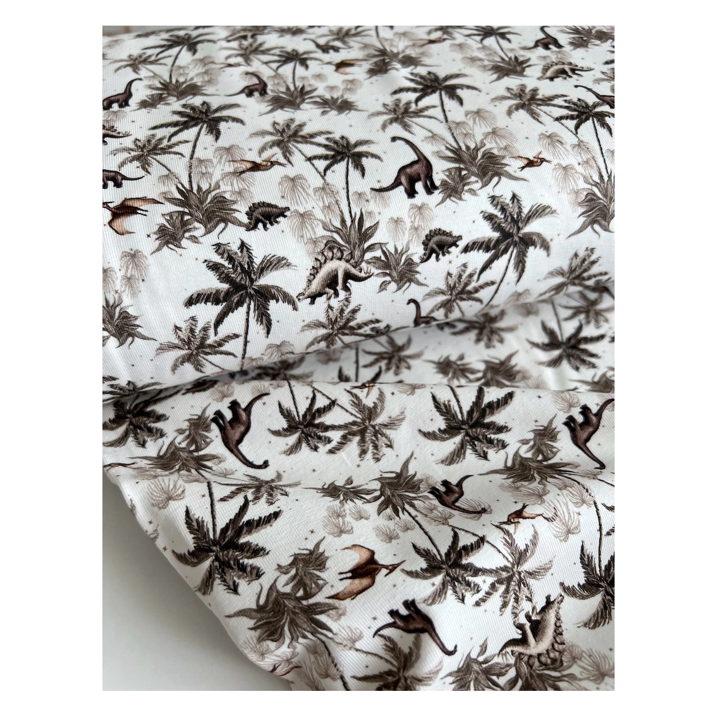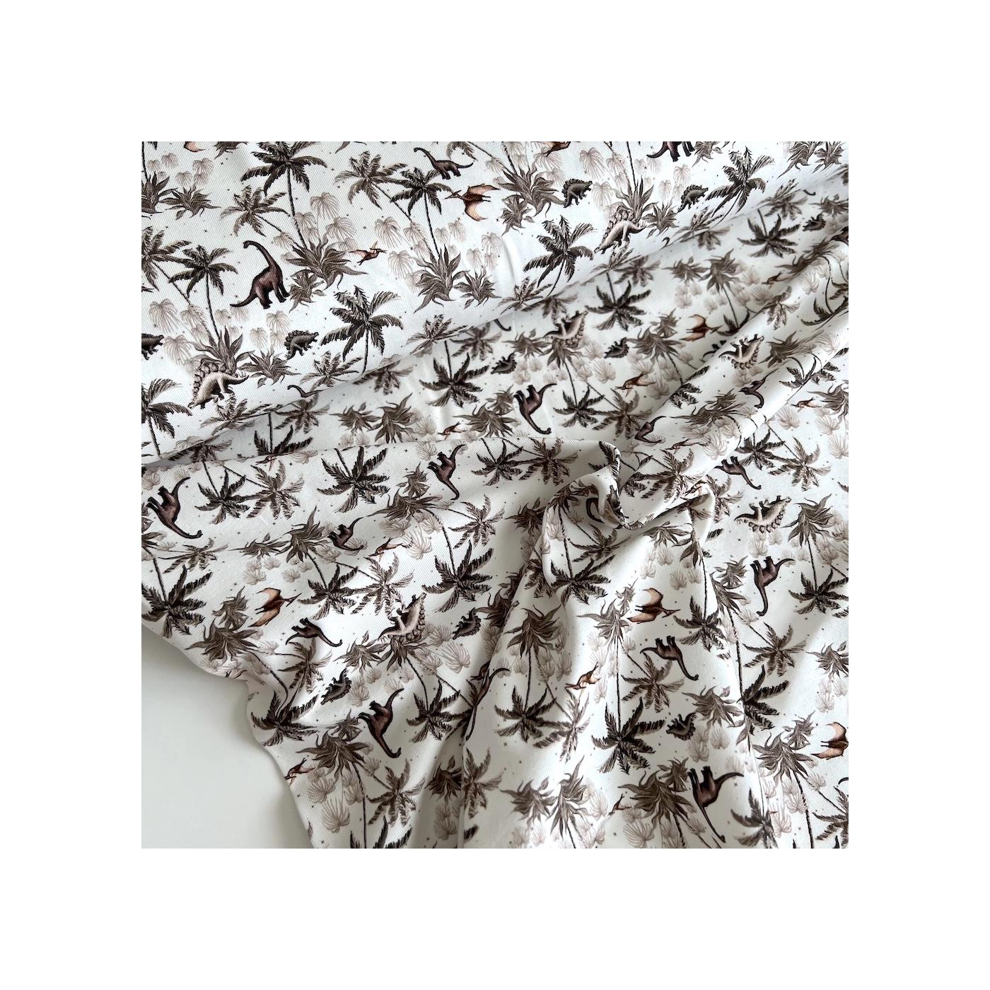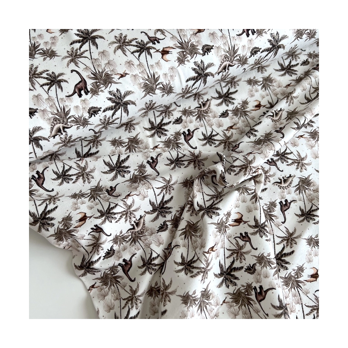 Jersey de coton dinosaures coloris beige, taupe, blanc