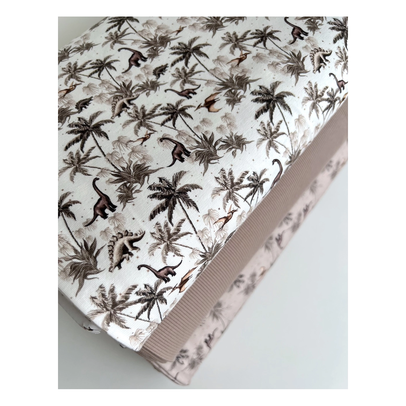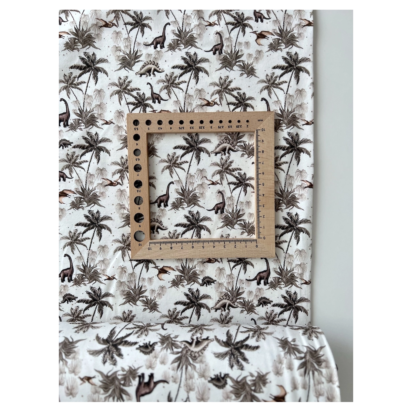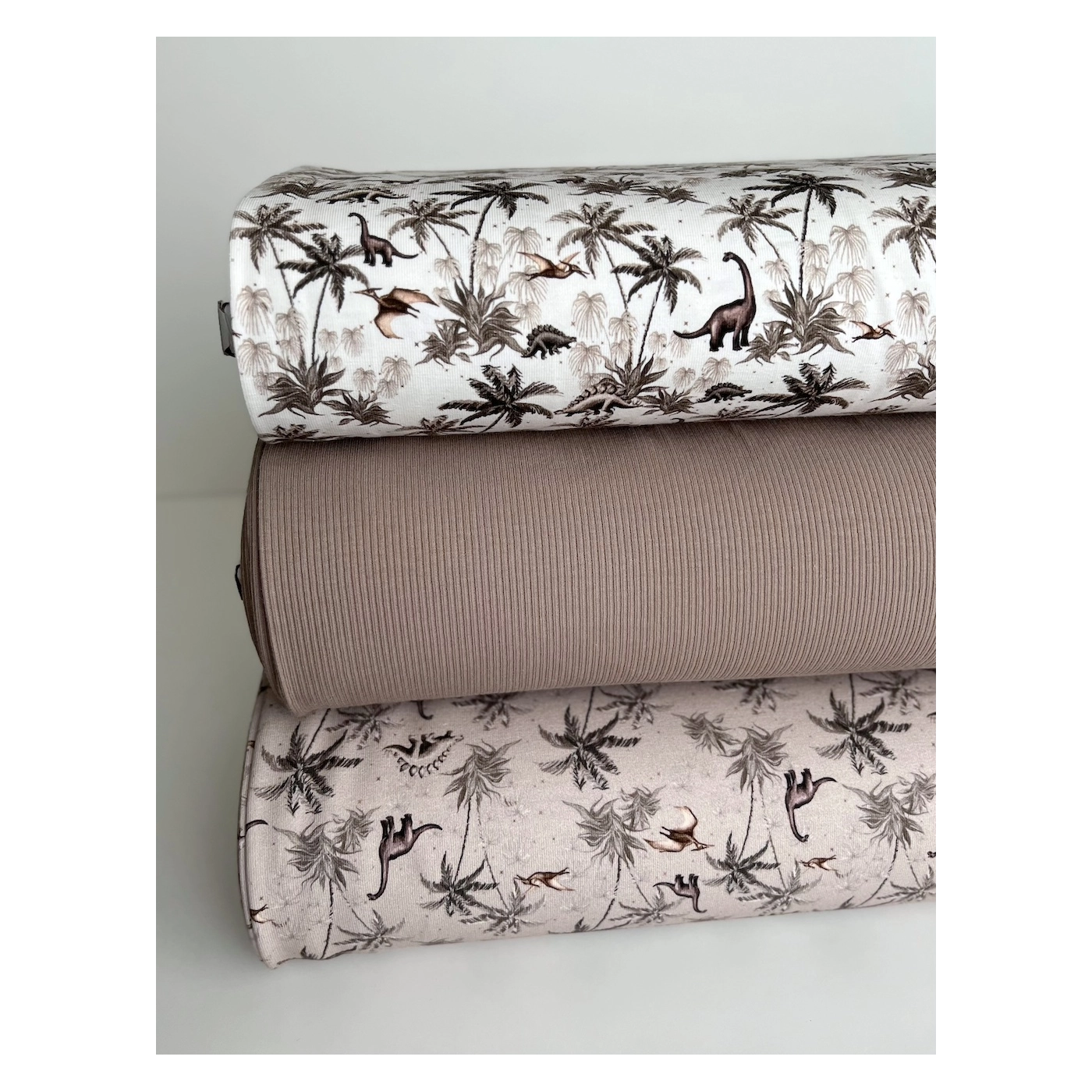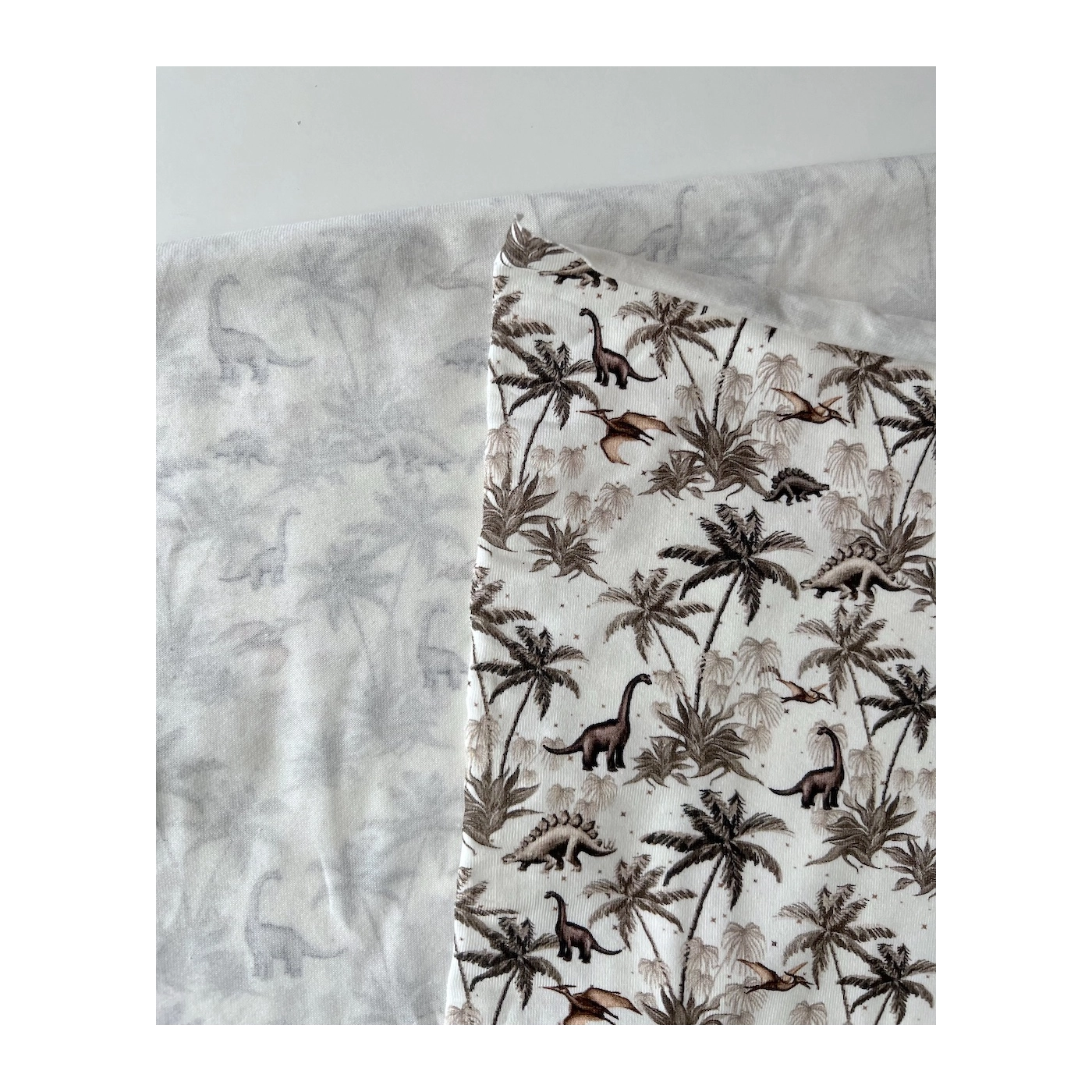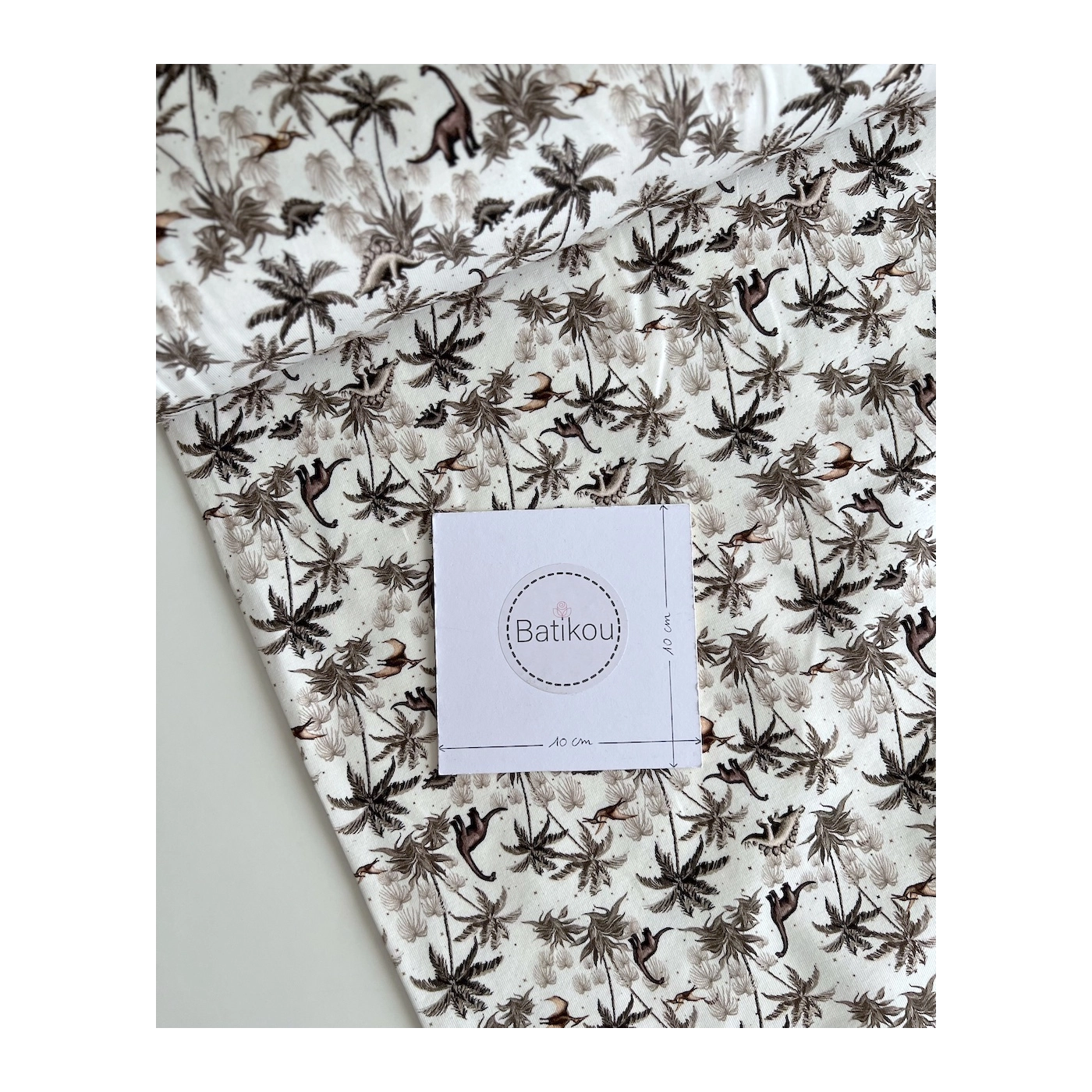 Jersey de coton dinosaures coloris beige, taupe, blanc