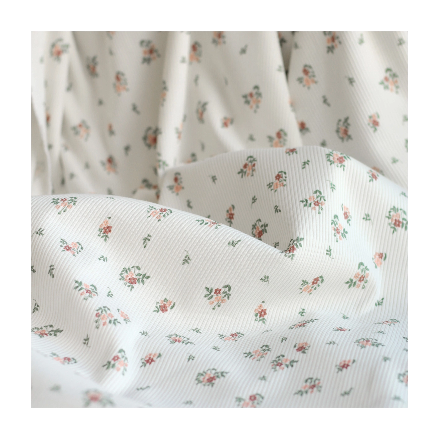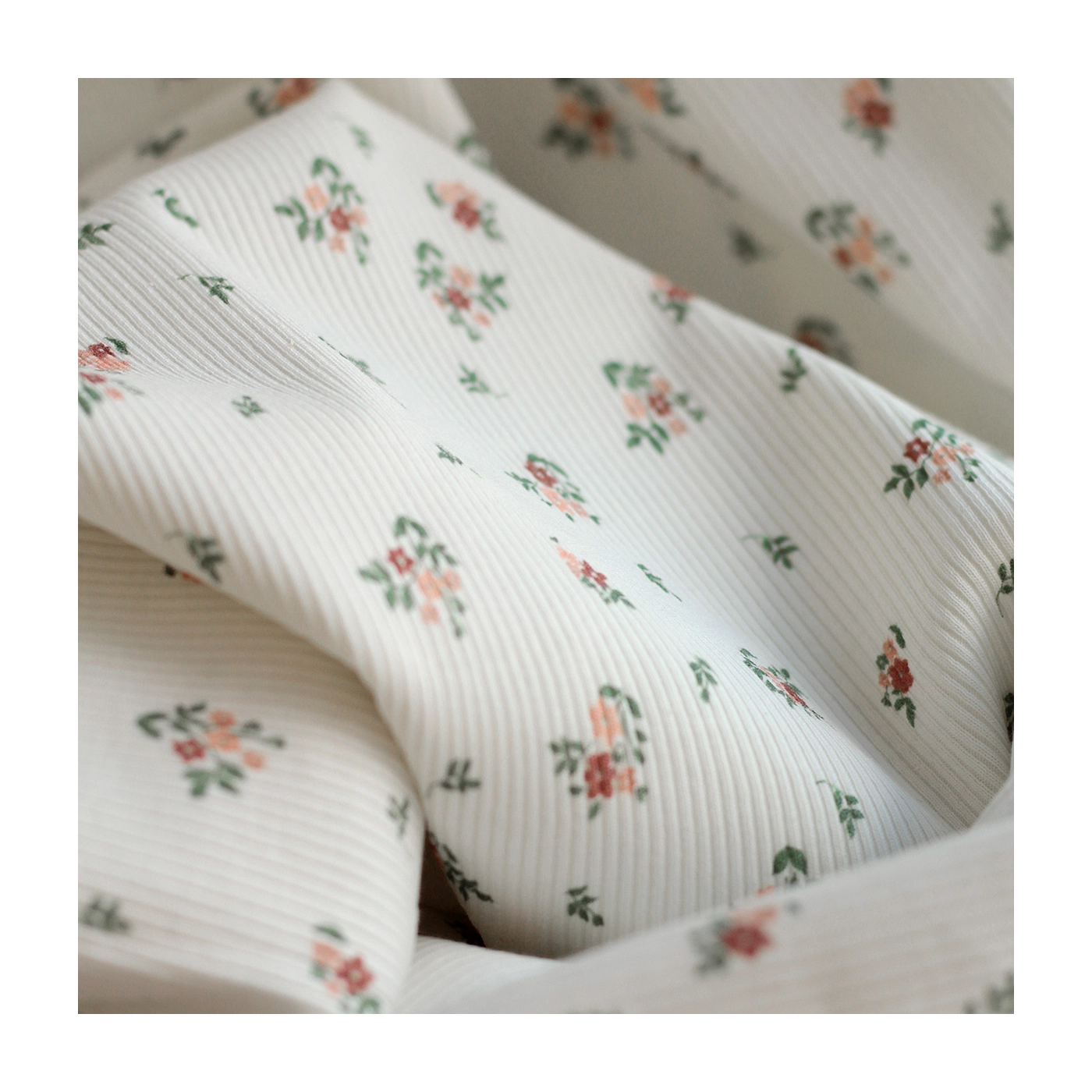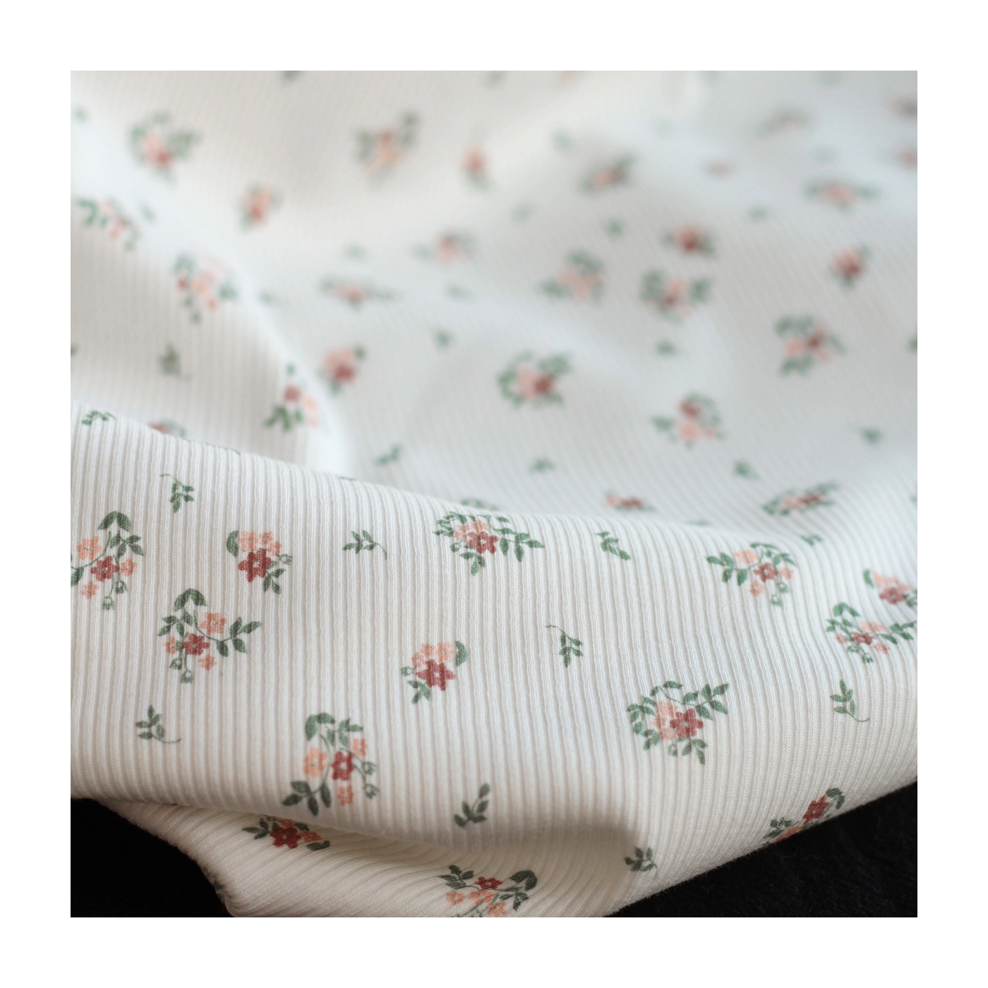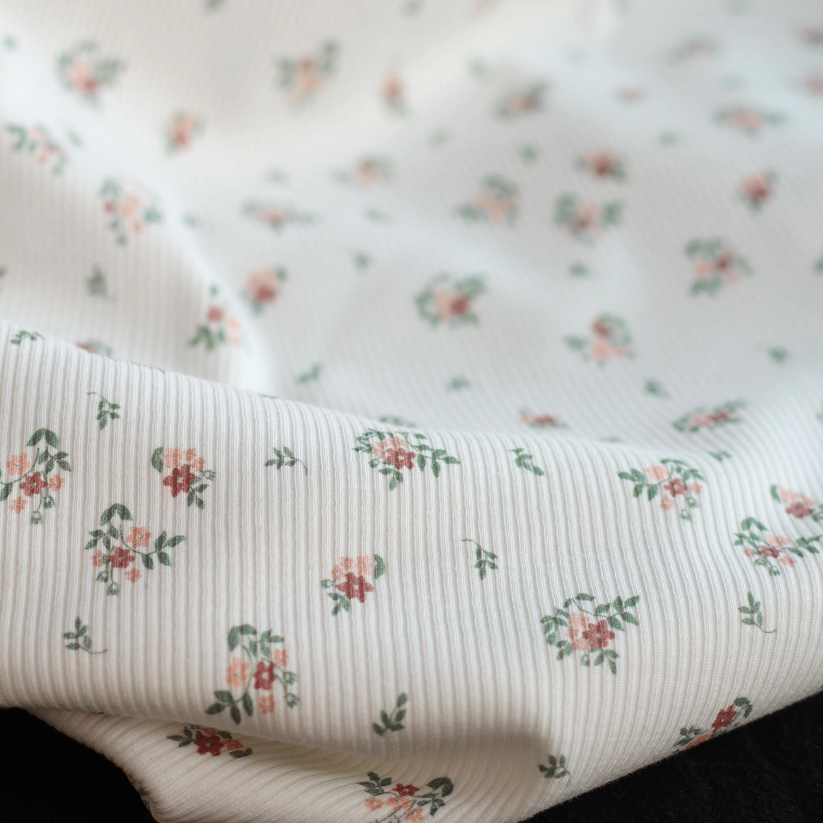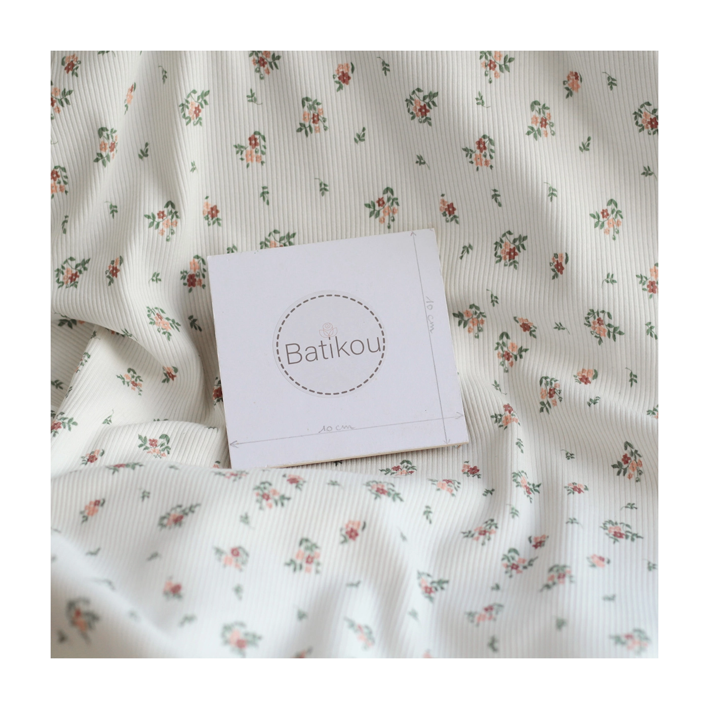 Jersey coton côtes fines à motifs fleurettes