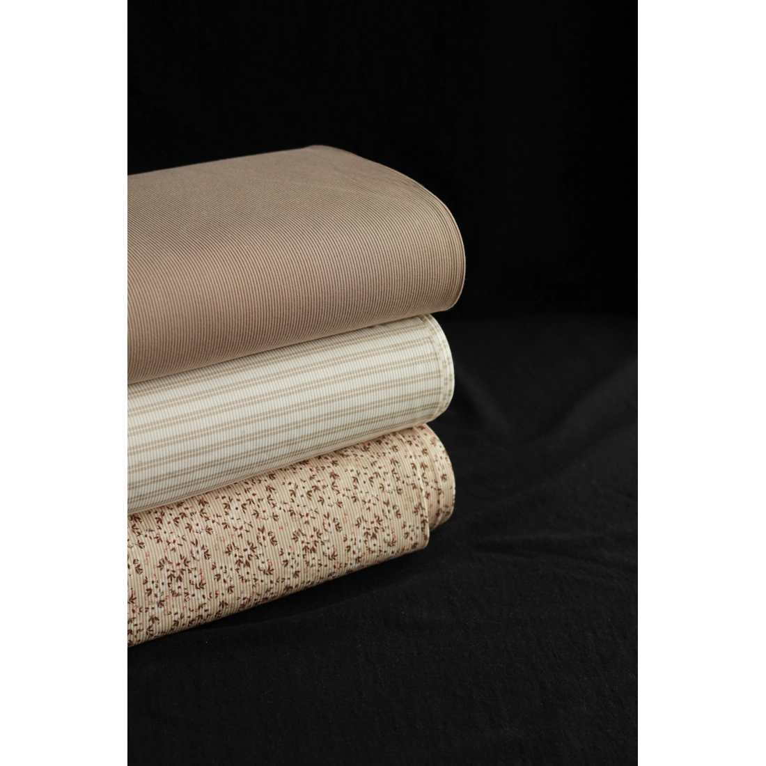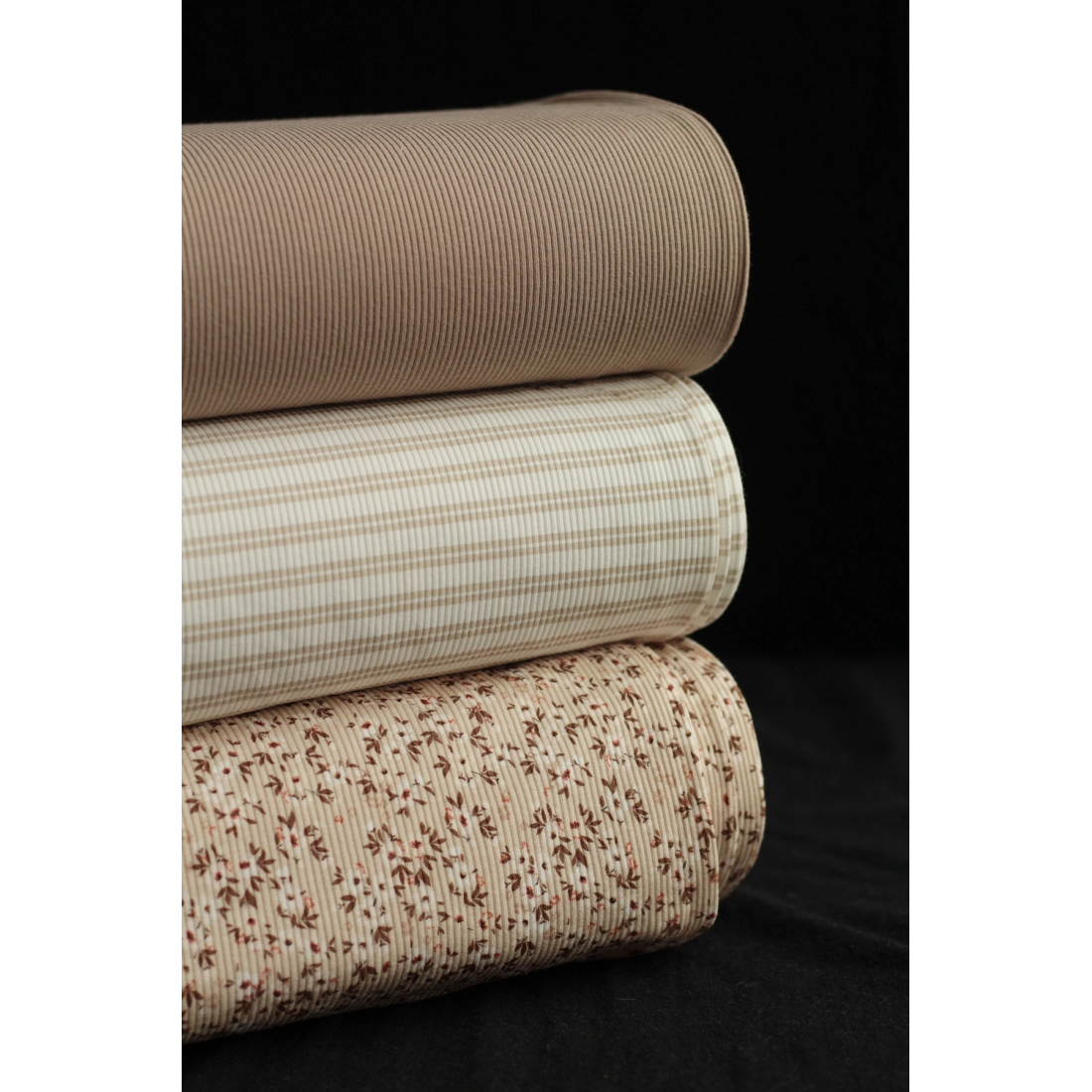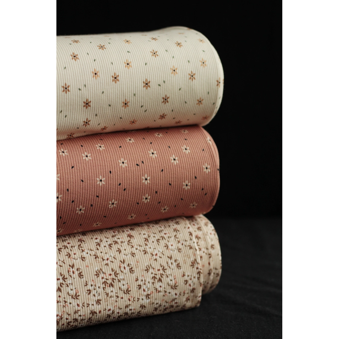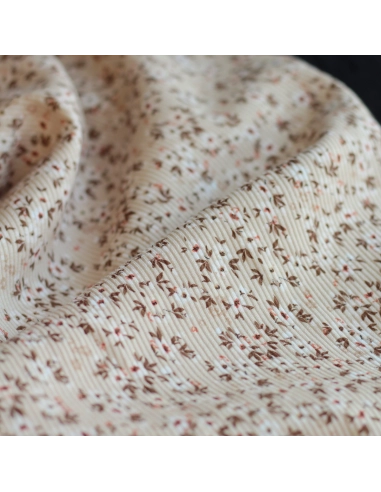 Jersey coton côtes fines à motifs fleuri beige