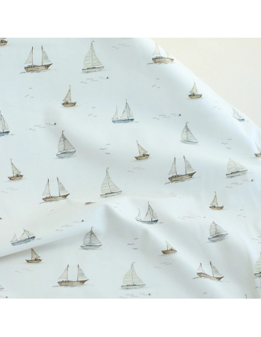 Coloris: fond blanc lait imprimés bateaux