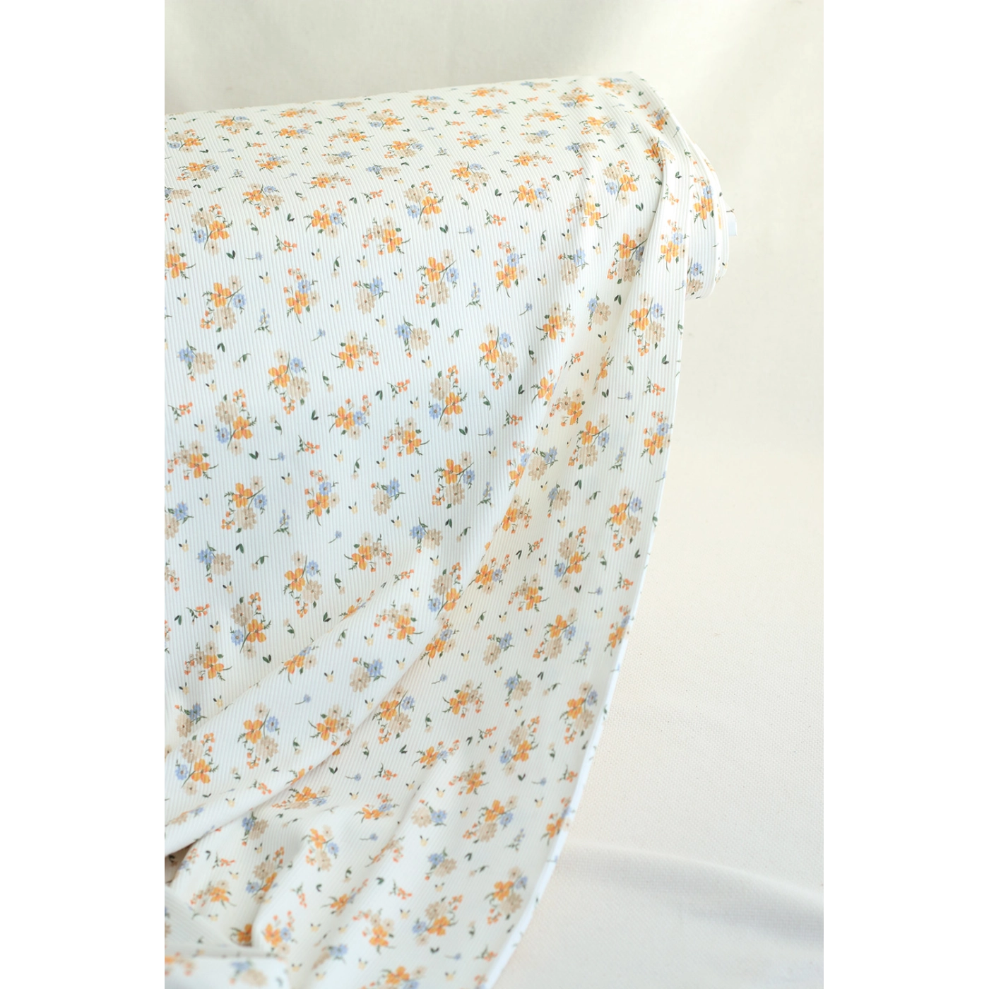 Coloris: fond blanc lait, motif imprimé fleuri bleu et orange