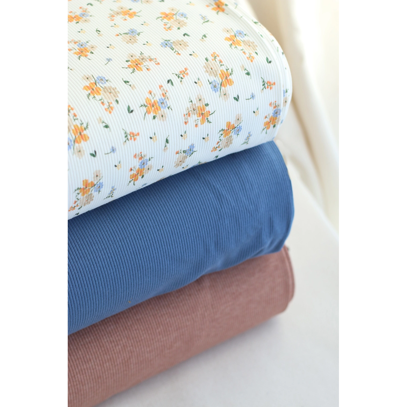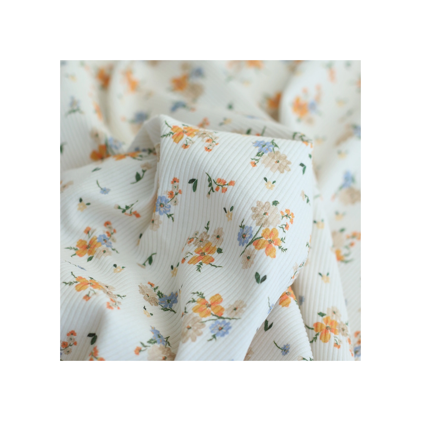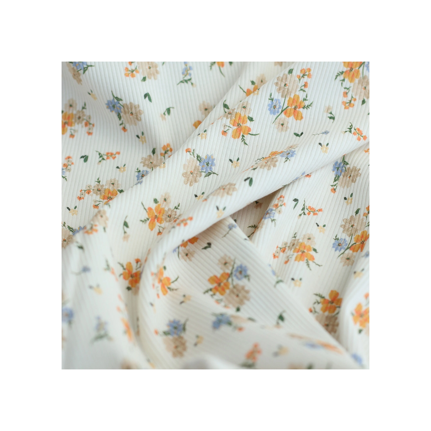Jersey coton côtes fines à motif fleuri