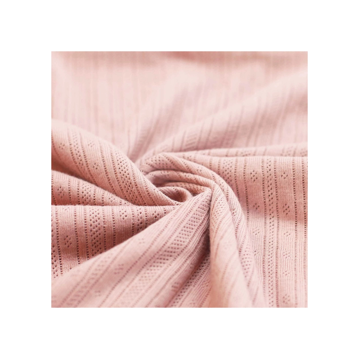 Ce tissu jersey en maille pointelle est idéal pour la réalisation de vêtements de lingerie, sous-vêtements (débardeur, body, pyjamas etc.). Ce tissu côtelé est ultra-doux et naturellement extensible dans les deux sens.