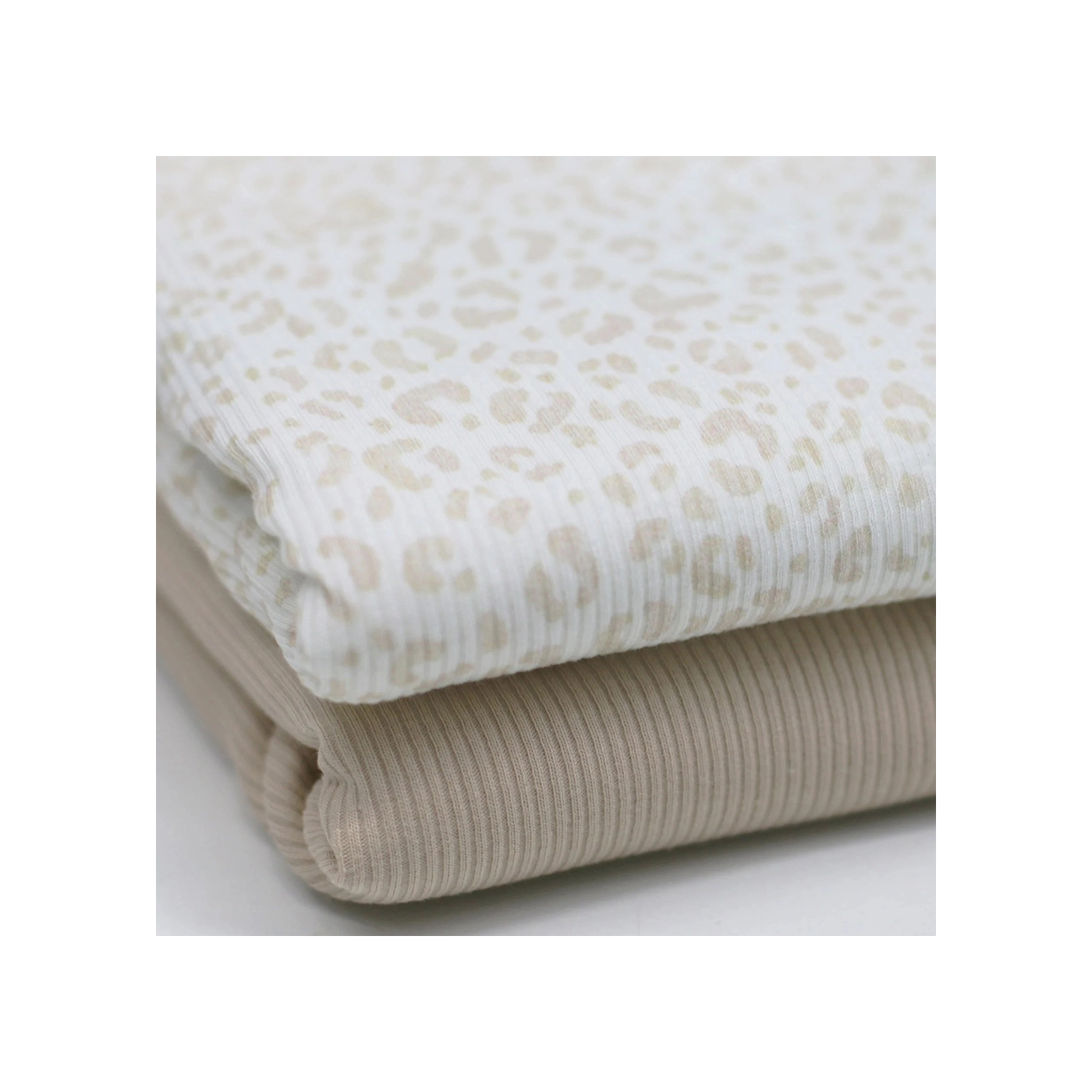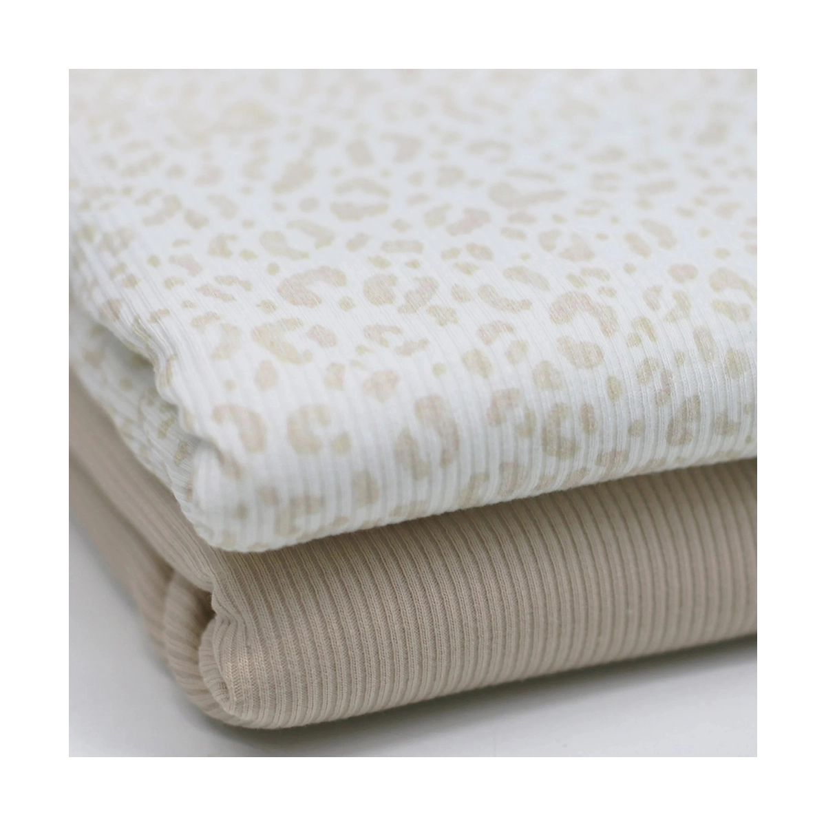 Jersey coton côtes fines à motif Graou beige lait