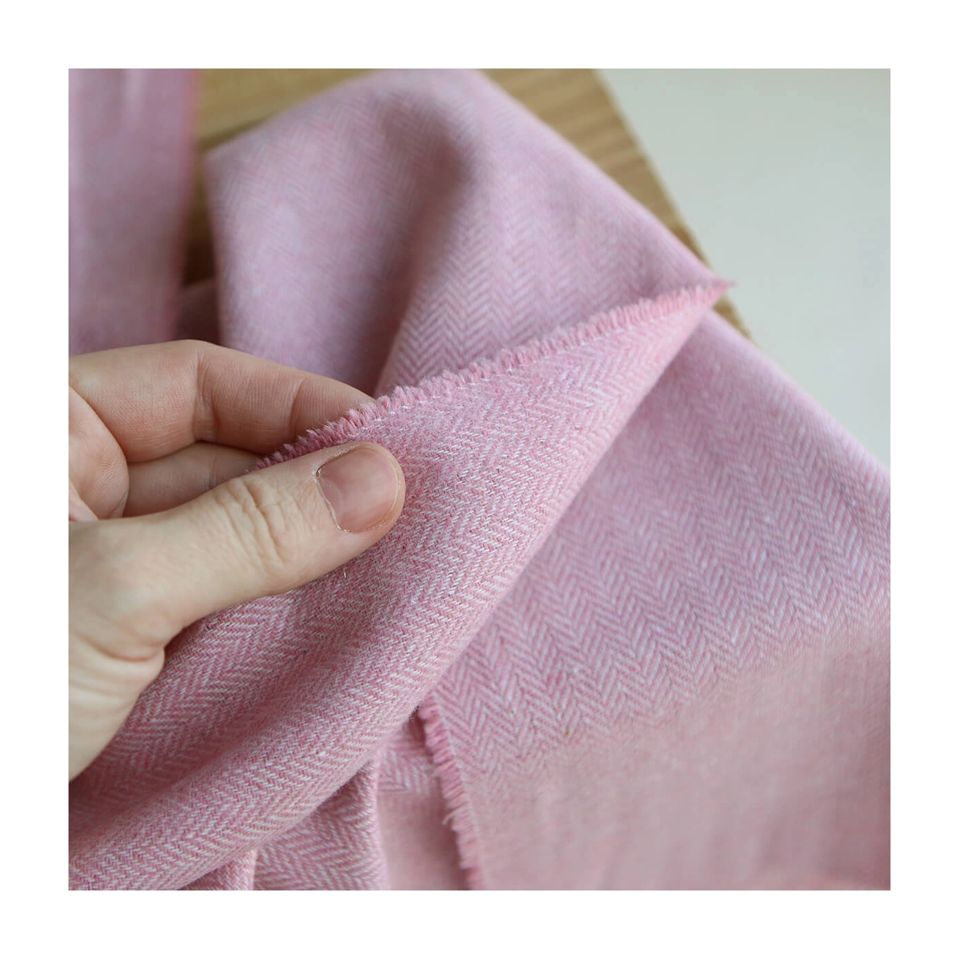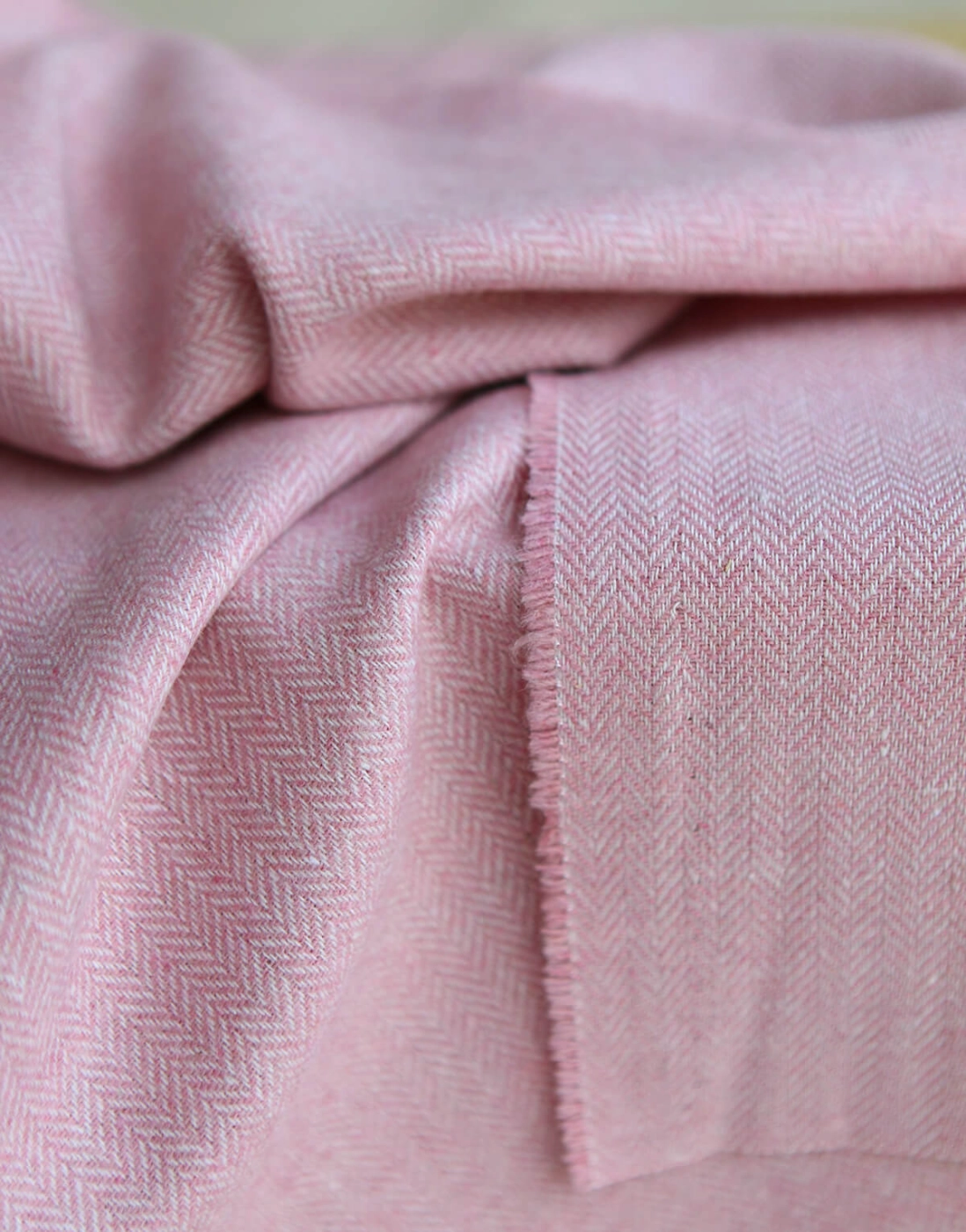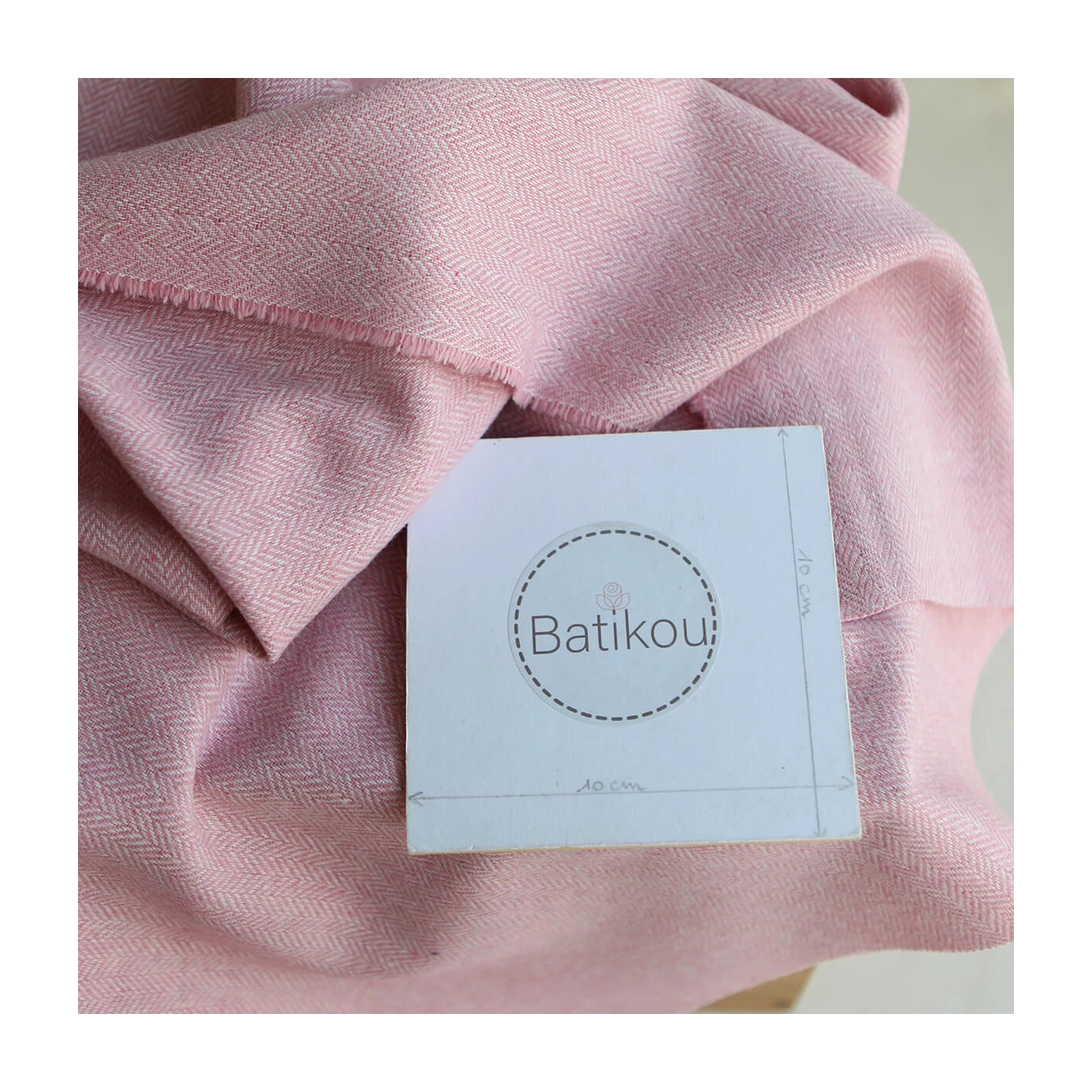 Tissu chevrons texturé coton / laine coloris Rose tendre