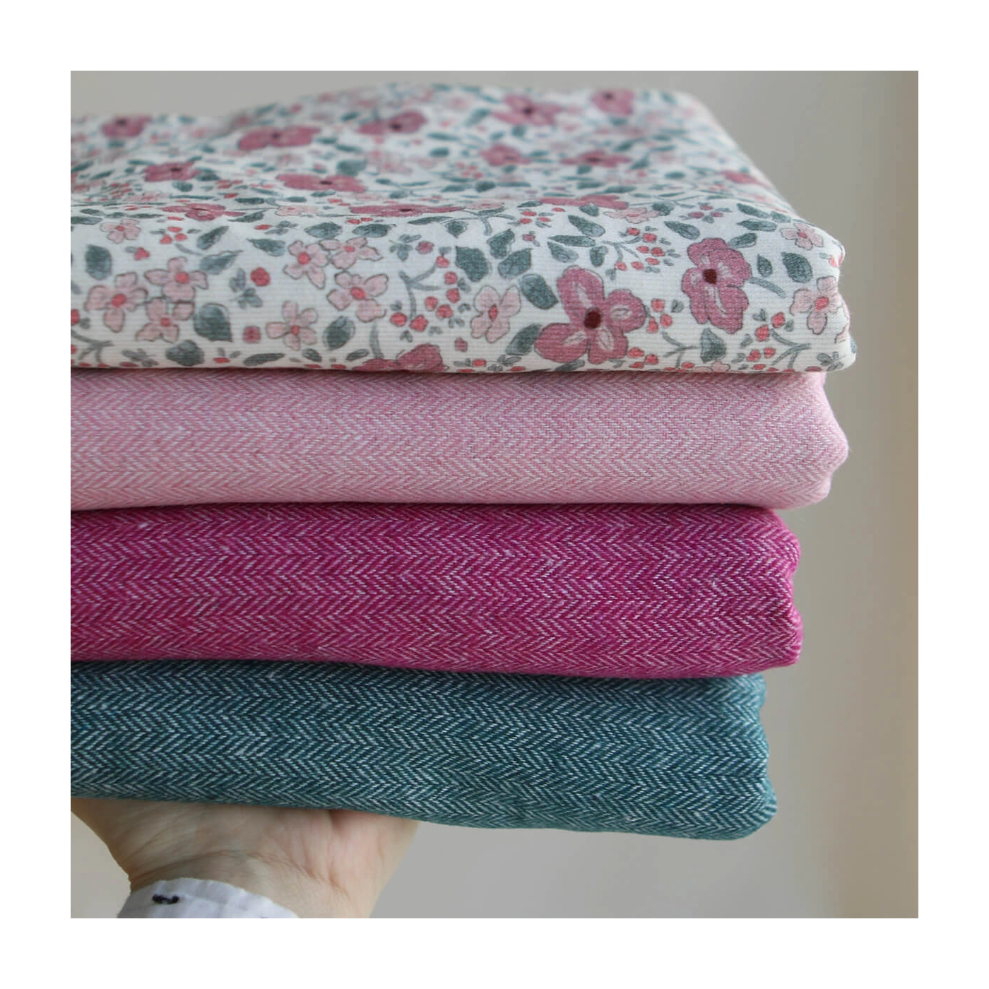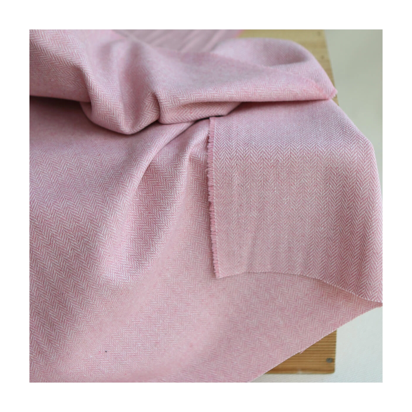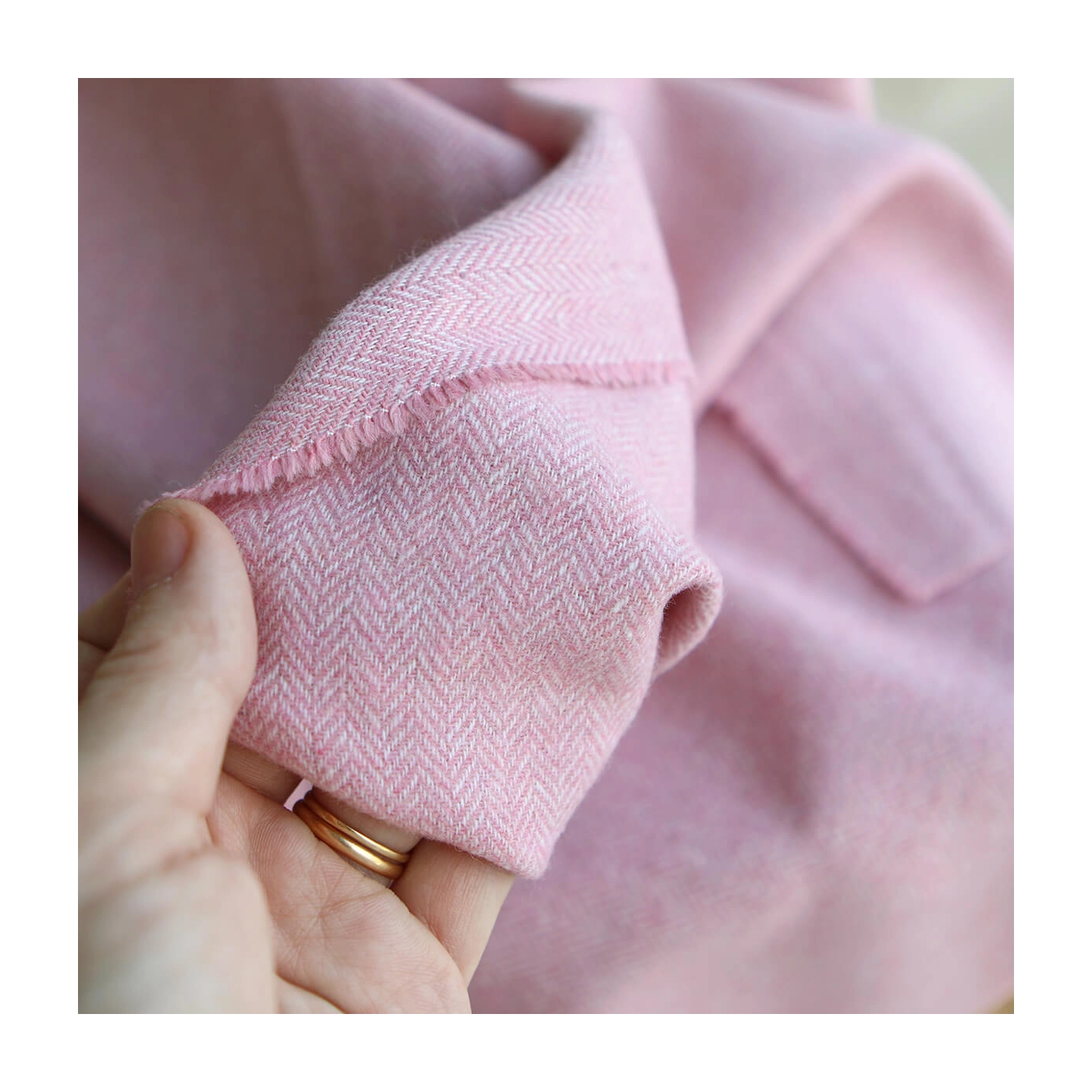 Tissu chevrons texturé coton / laine coloris Rose tendre