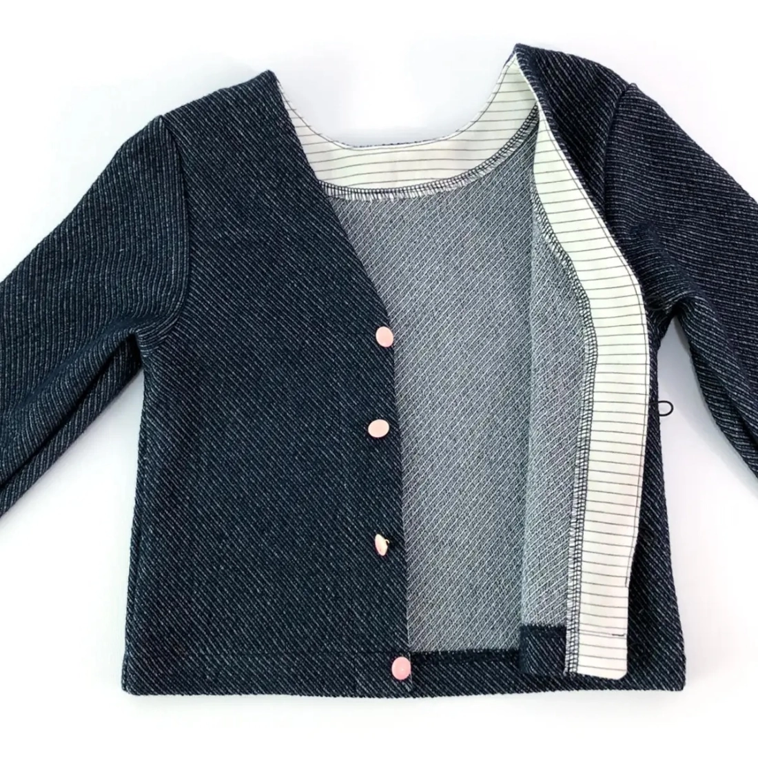 - Tissu 1 - gilet : maille de préférence ou tissé souple / extensible, matière de sweat, French terry, maille milano (Ponti Roma), jersey éponge, maille tricot, jersey lourd, jersey matelassé, tissu matelassé, jean maille ou tissé extensible, jacquard.