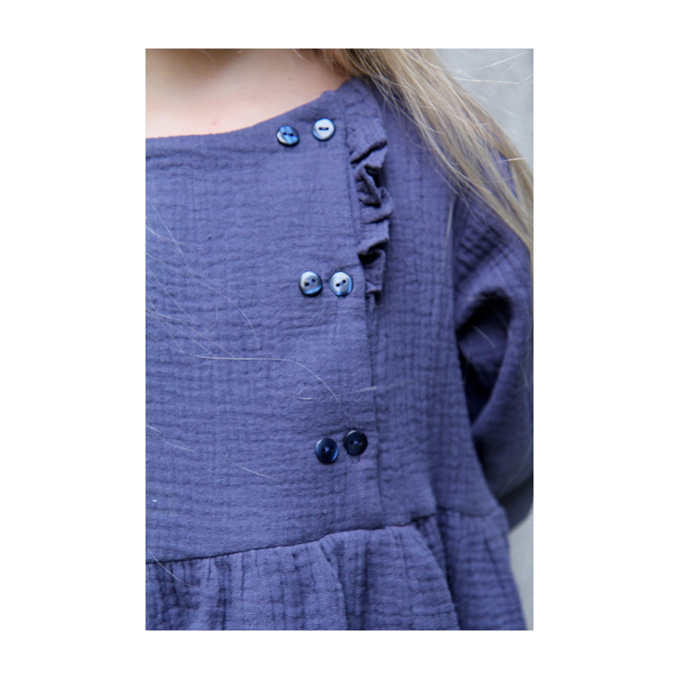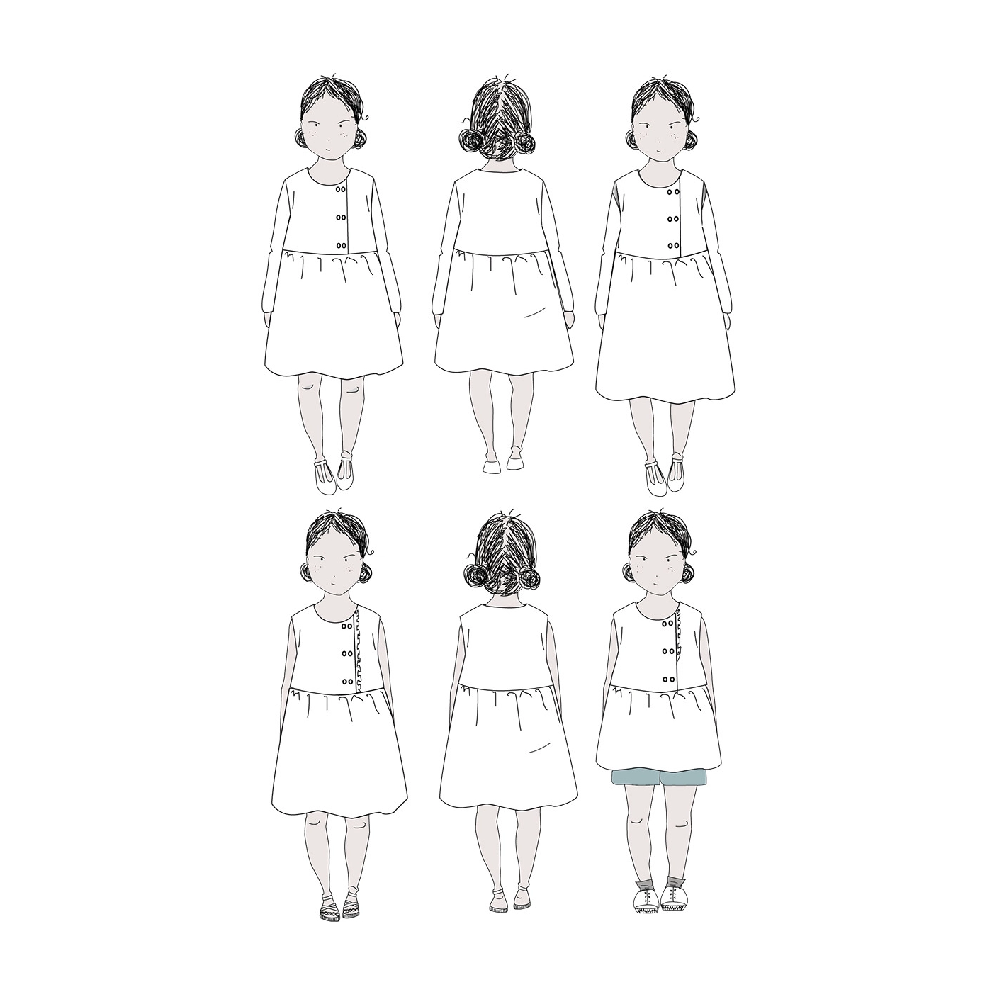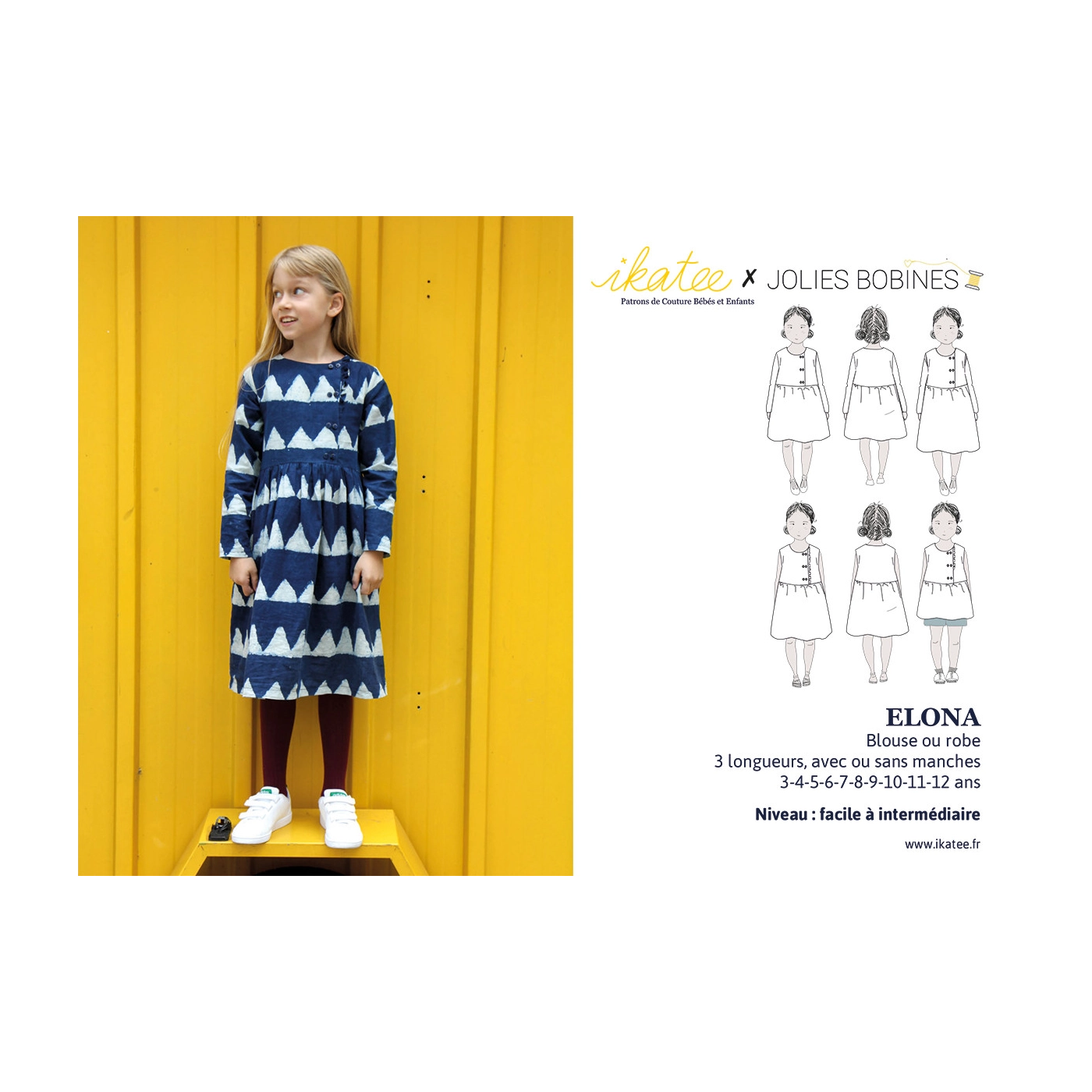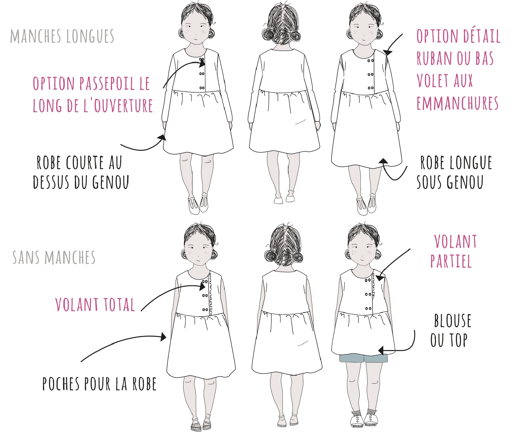 Elena est un patron déclinable à volonté : une robe avec 2 longueurs et des poches, un top, avec ou sans volant ou même un demi-volant, un empiècement aux manches.