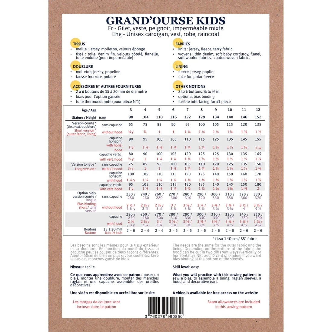 Patron de couture Grande Ourse pour un gilet, une veste, un imperméable ou un peignoir mixte.