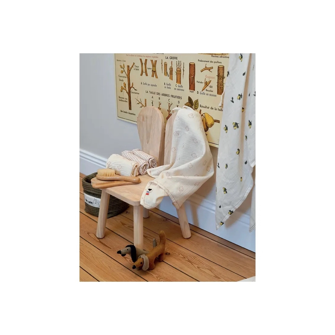 - Bébé : couverture, hochet nuage, protège carnet de santé…