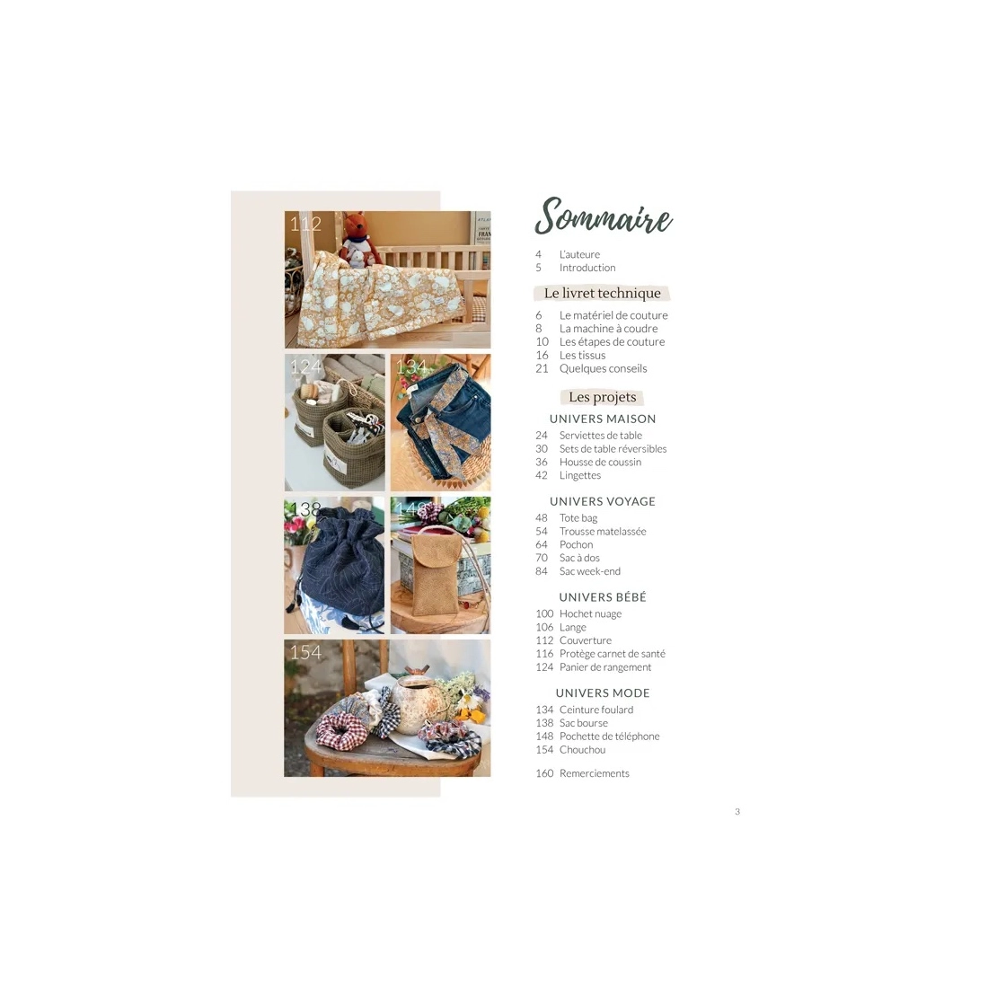 - Le livret technique détaillant tout ce qu’un débutant en couture doit savoir : matériel de couture à prévoir, utilisation de la machine à coudre, étapes de couture, choix de tissus
