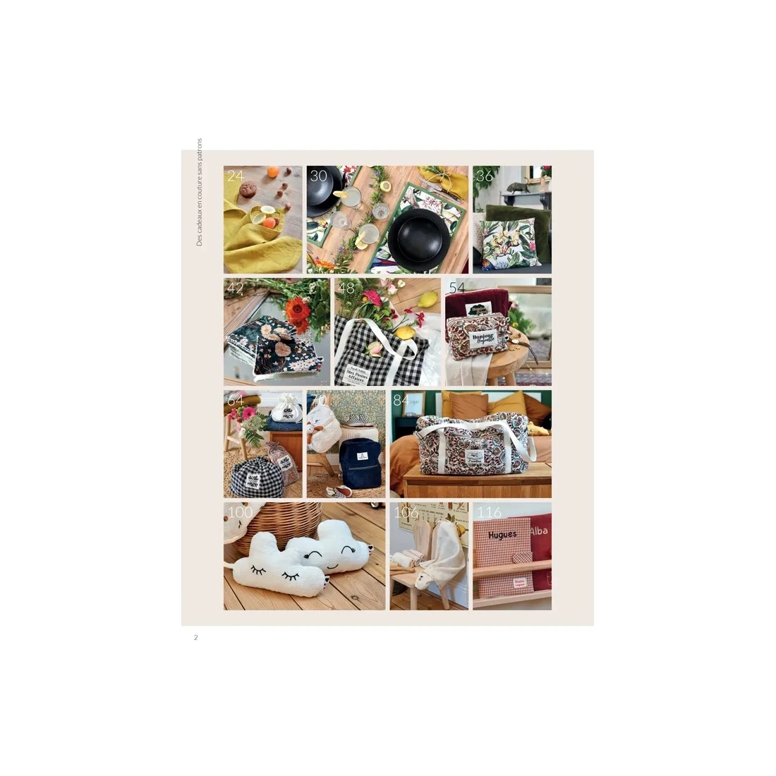 Dans ce livre de 160 pages, vous découvrirez de nombreuses idées cadeaux à coudre facilement et à offrir (ou à s’offrir !) à de multiples occasions au cours de l’année et au fil de la vie.
