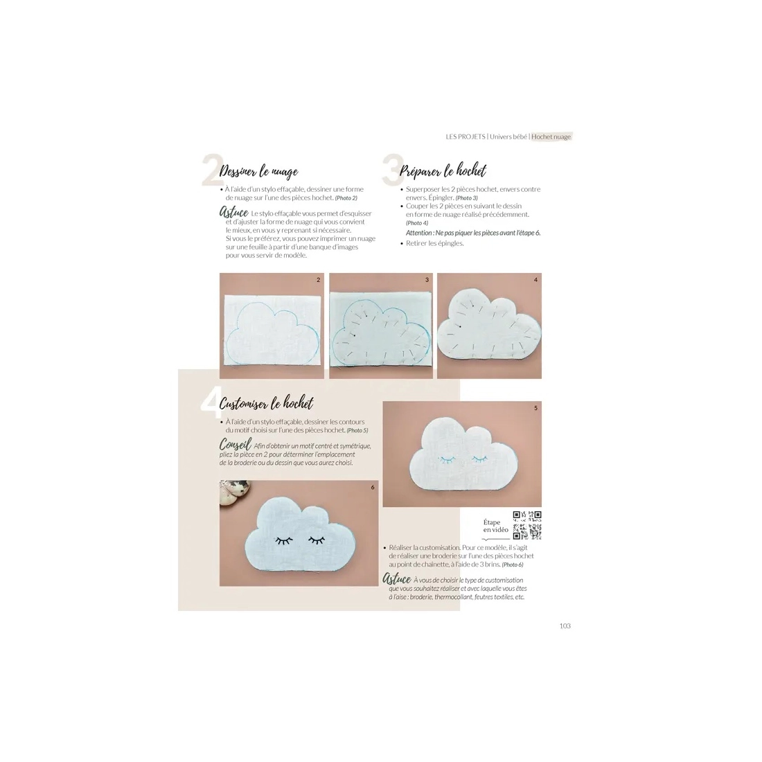 - 5 tutoriels vidéo disponibles via des QR codes, abordant des techniques de base : pose d’une fermeture à glissière, réalisation d’une couture invisible à la main…