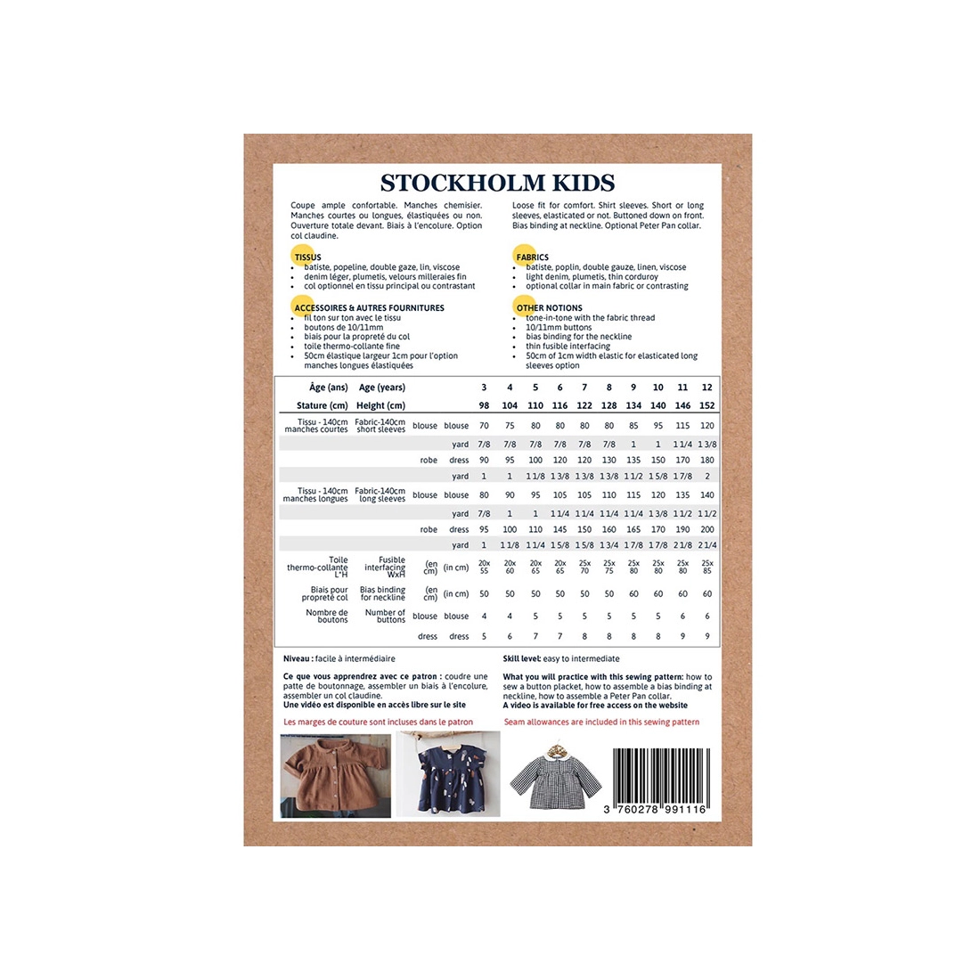 Stockholm kids est un patron de blouse et de robe pour enfant.