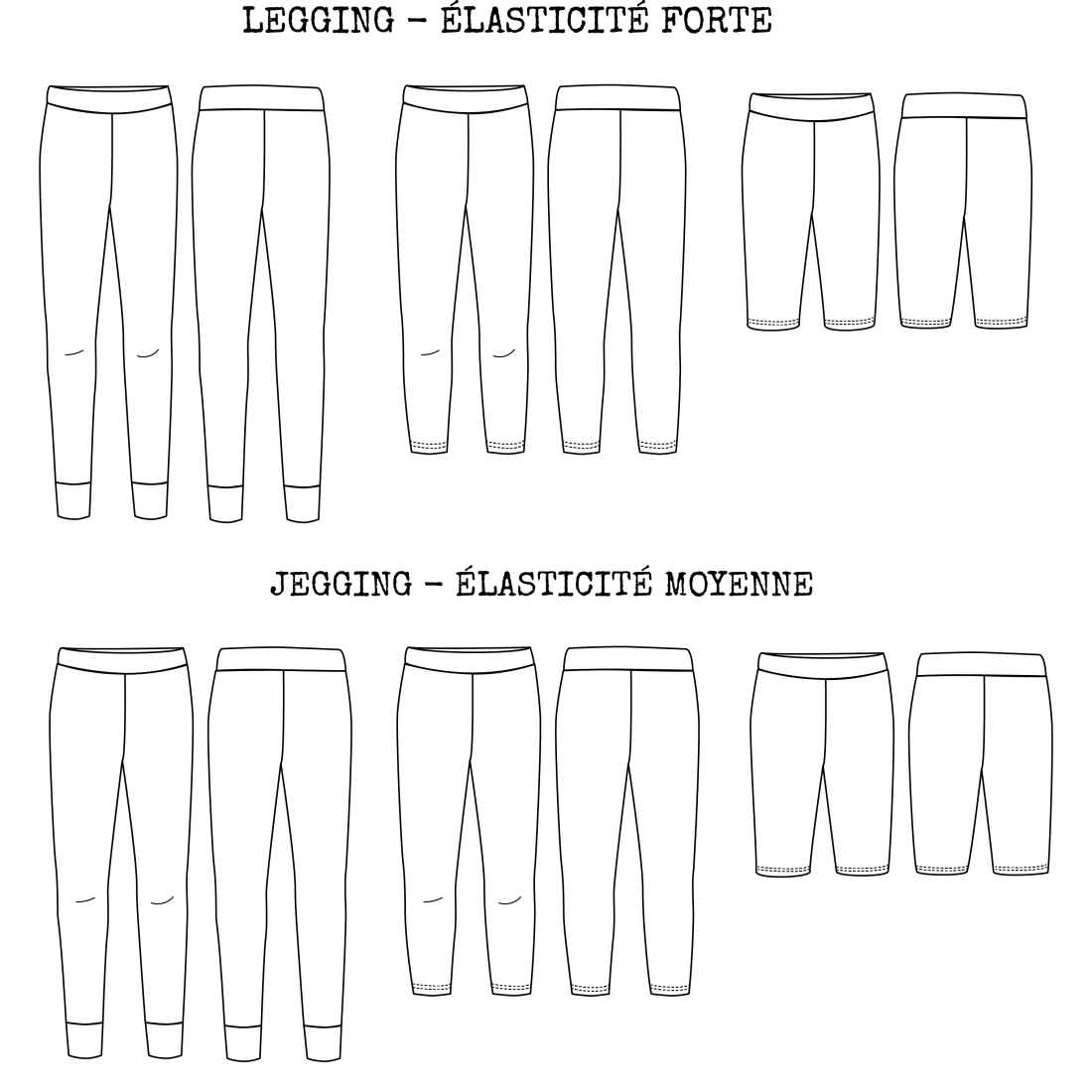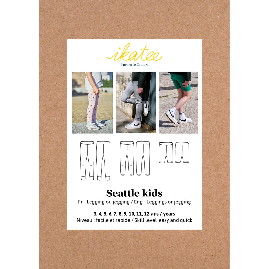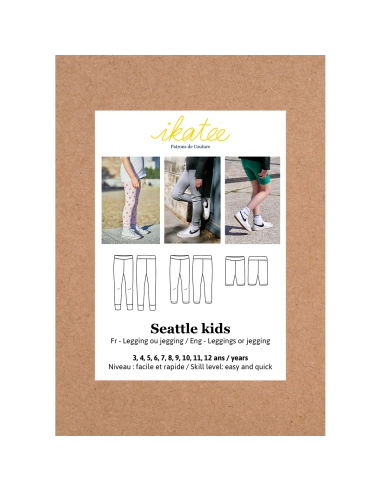 Seattle est un patron de couture de legging, jegging et cycliste pour enfant. Ces trois formes nécessitent l’utilisation de tissus extensibles. Ce modèle est agrémenté d’une ceinture avec élastique inséré ou d’un élastique fantaisie apparent. Vous pourrez, selon vos envies, poser des bracelets de chevilles ou réaliser un ourlet simple.