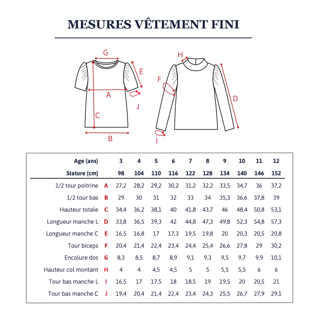 Ce modèle dispose de manches gigots, longues ou courtes.