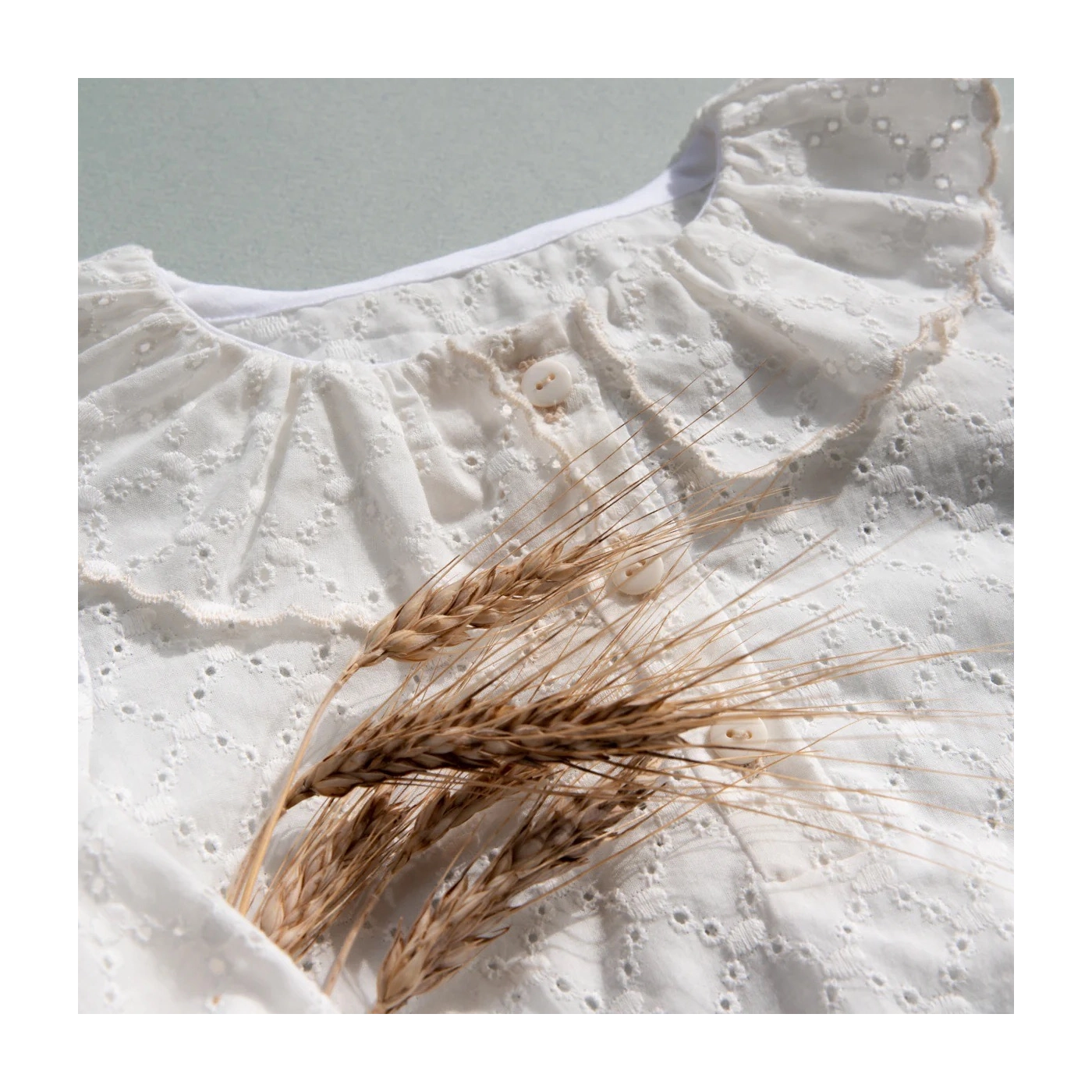 Le modèle propose enfin de multiples options : une collerette au niveau de l’encolure, un col claudine et une option élastique au niveau de la taille.