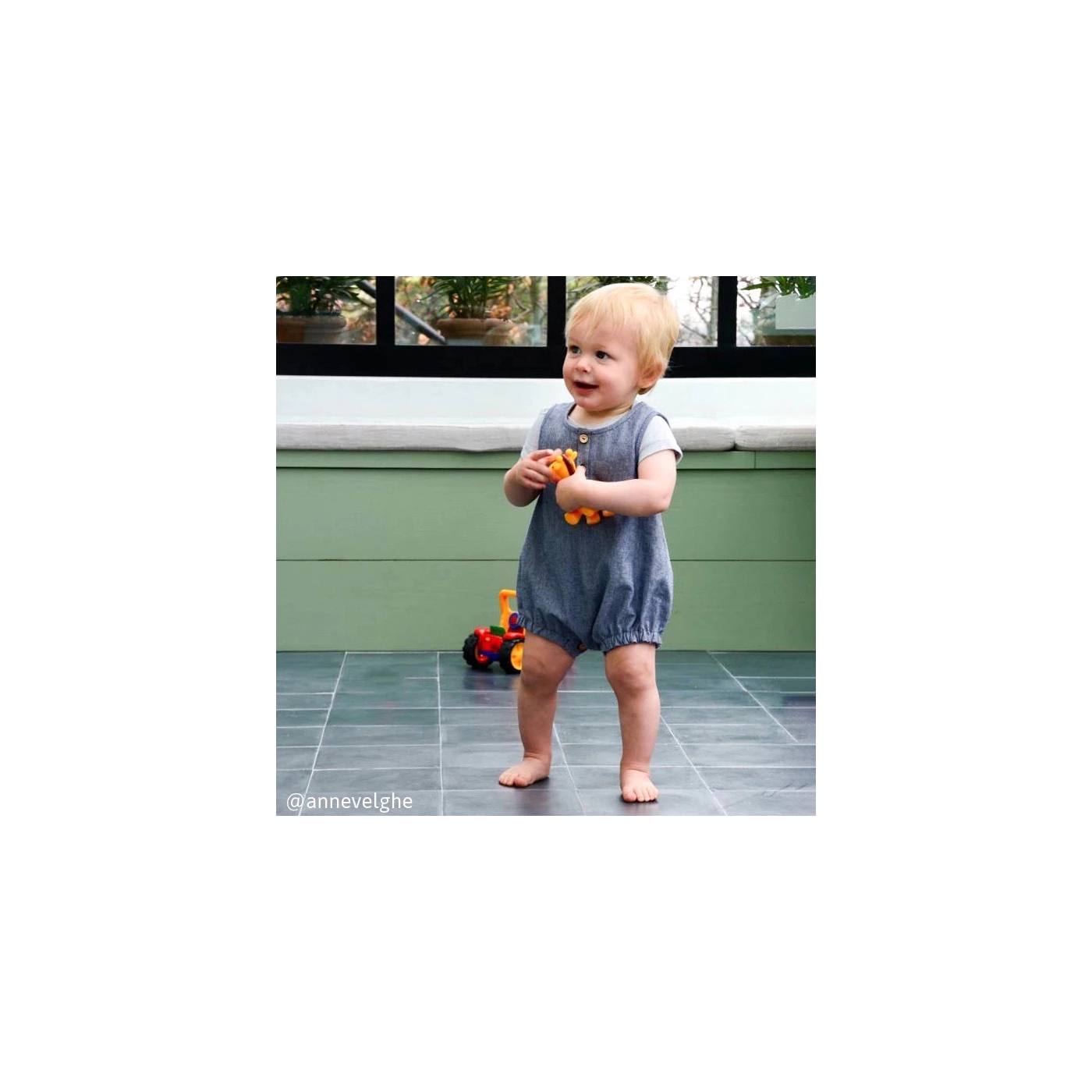 Sydney est un patron de barboteuse mixte pour bébé.