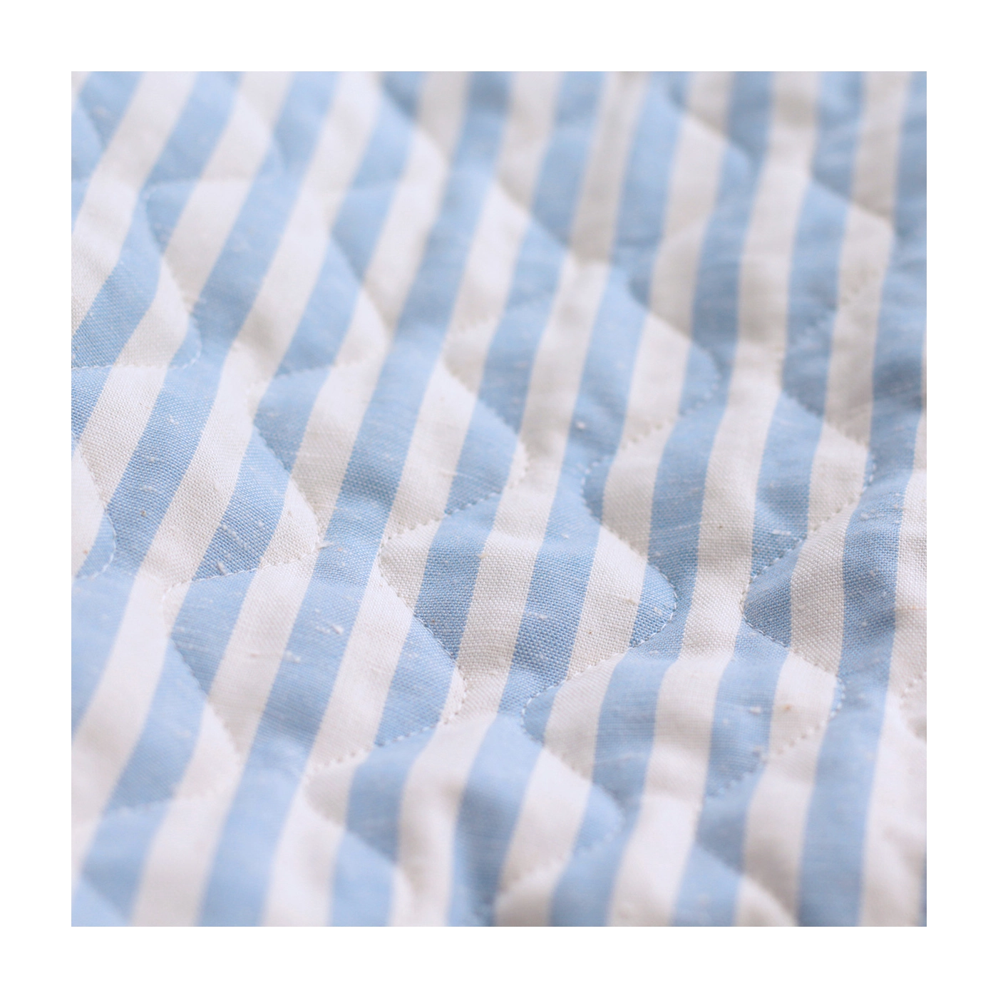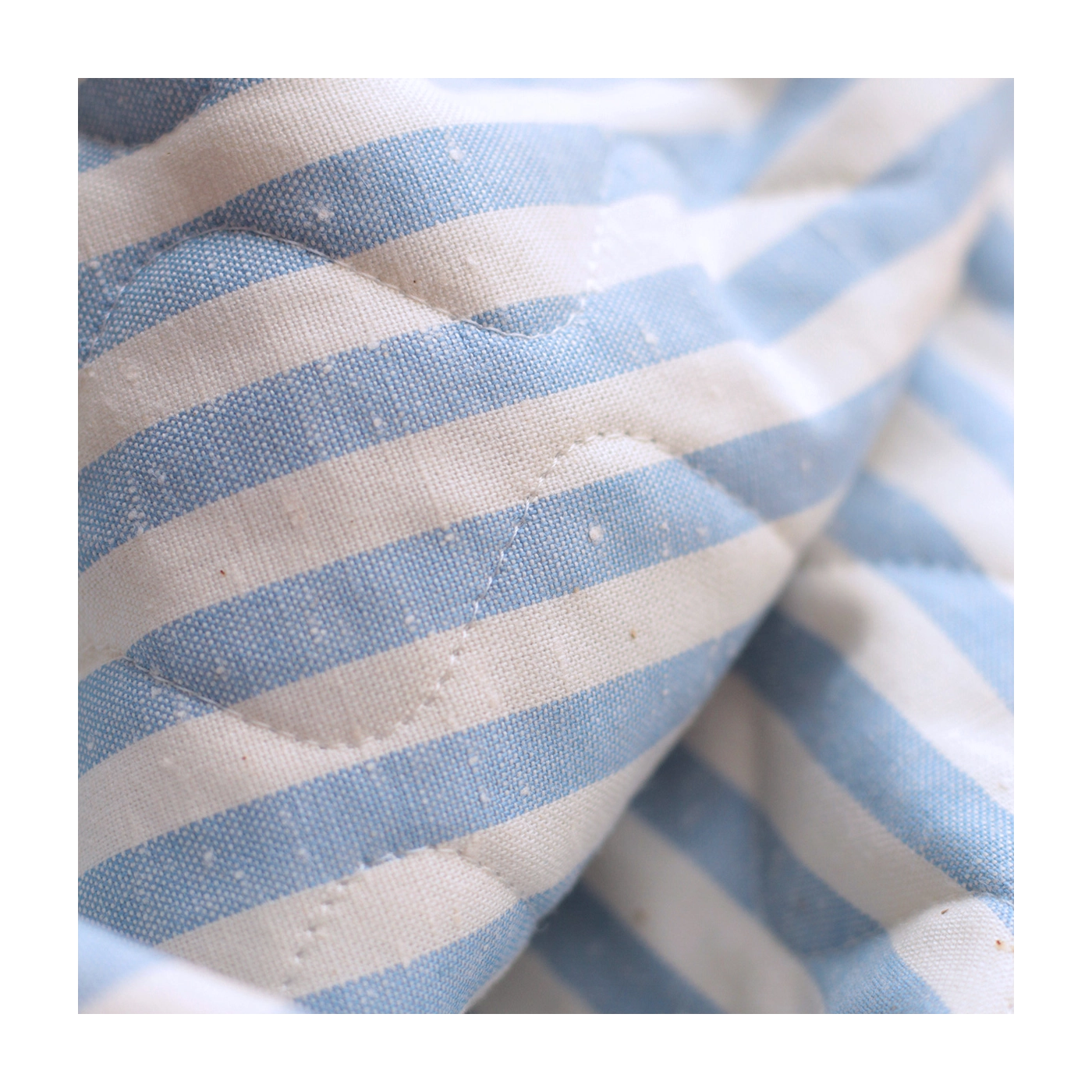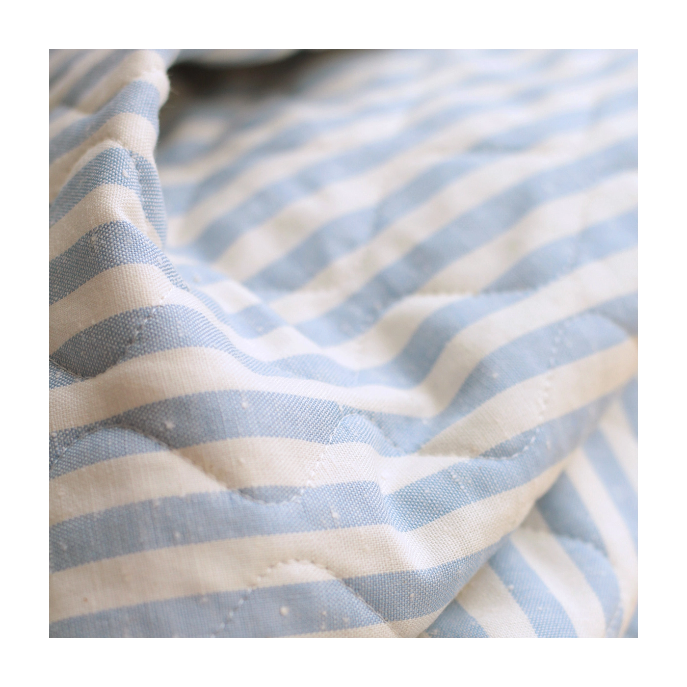 Tissu matelassé coton chiné à rayures bleu nuage / écru