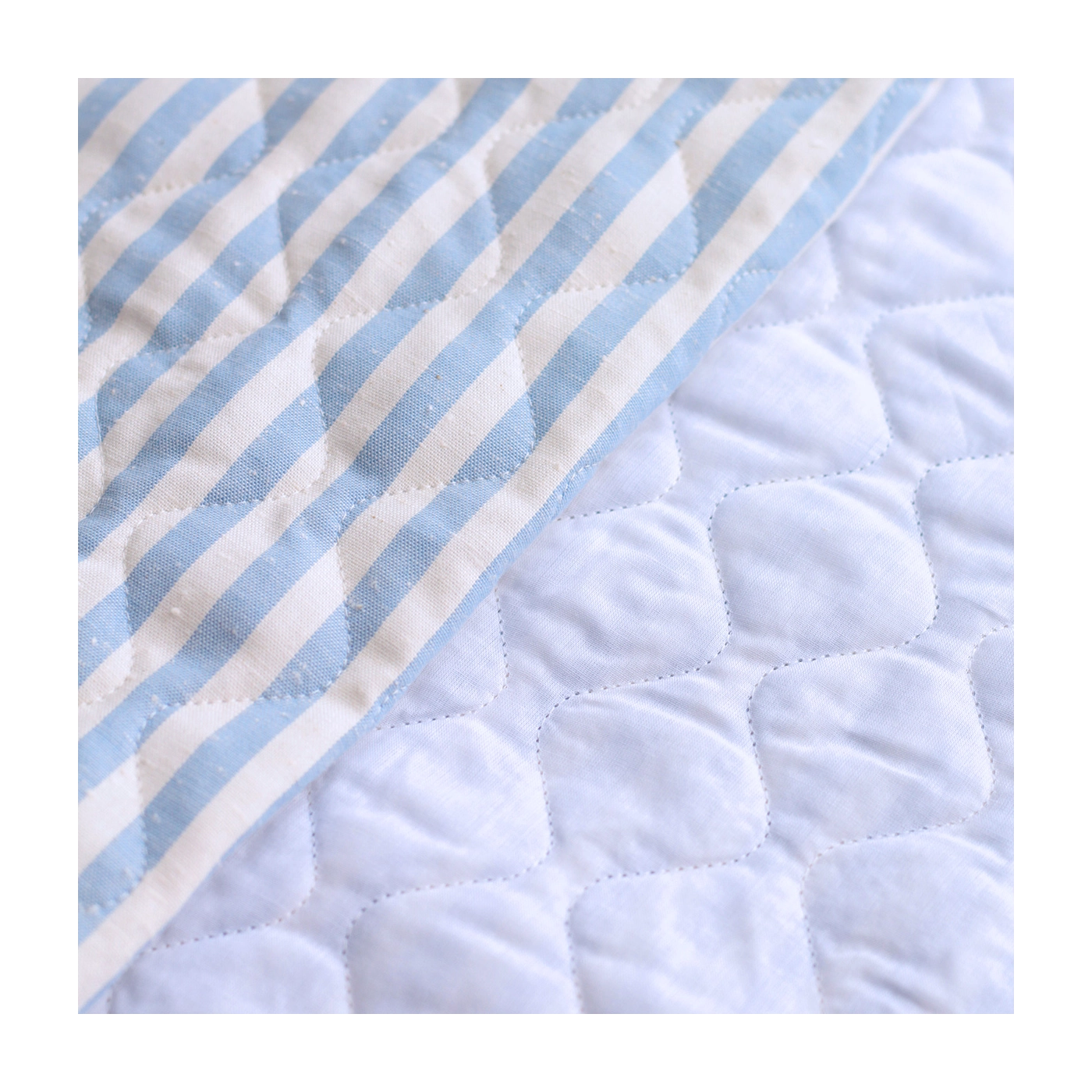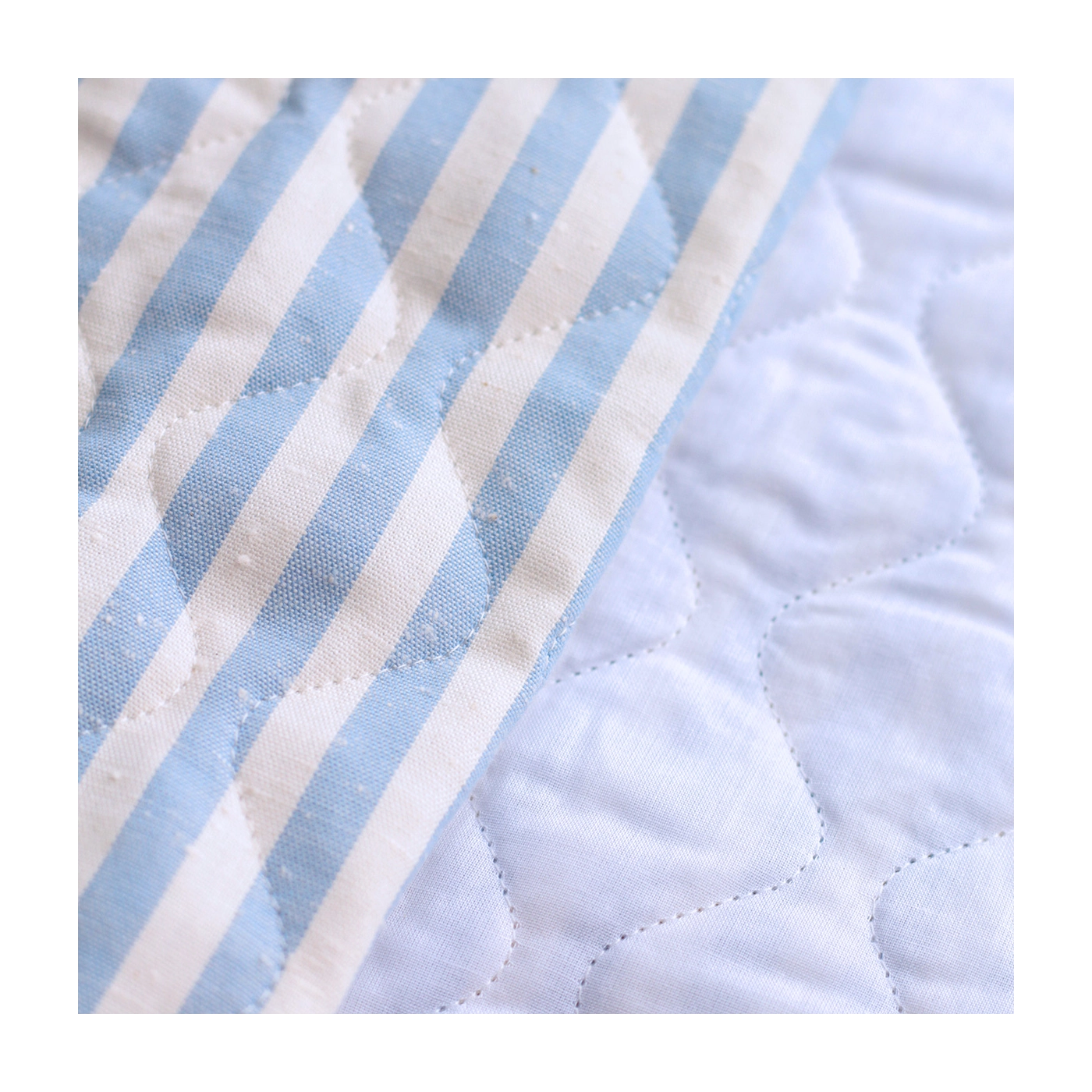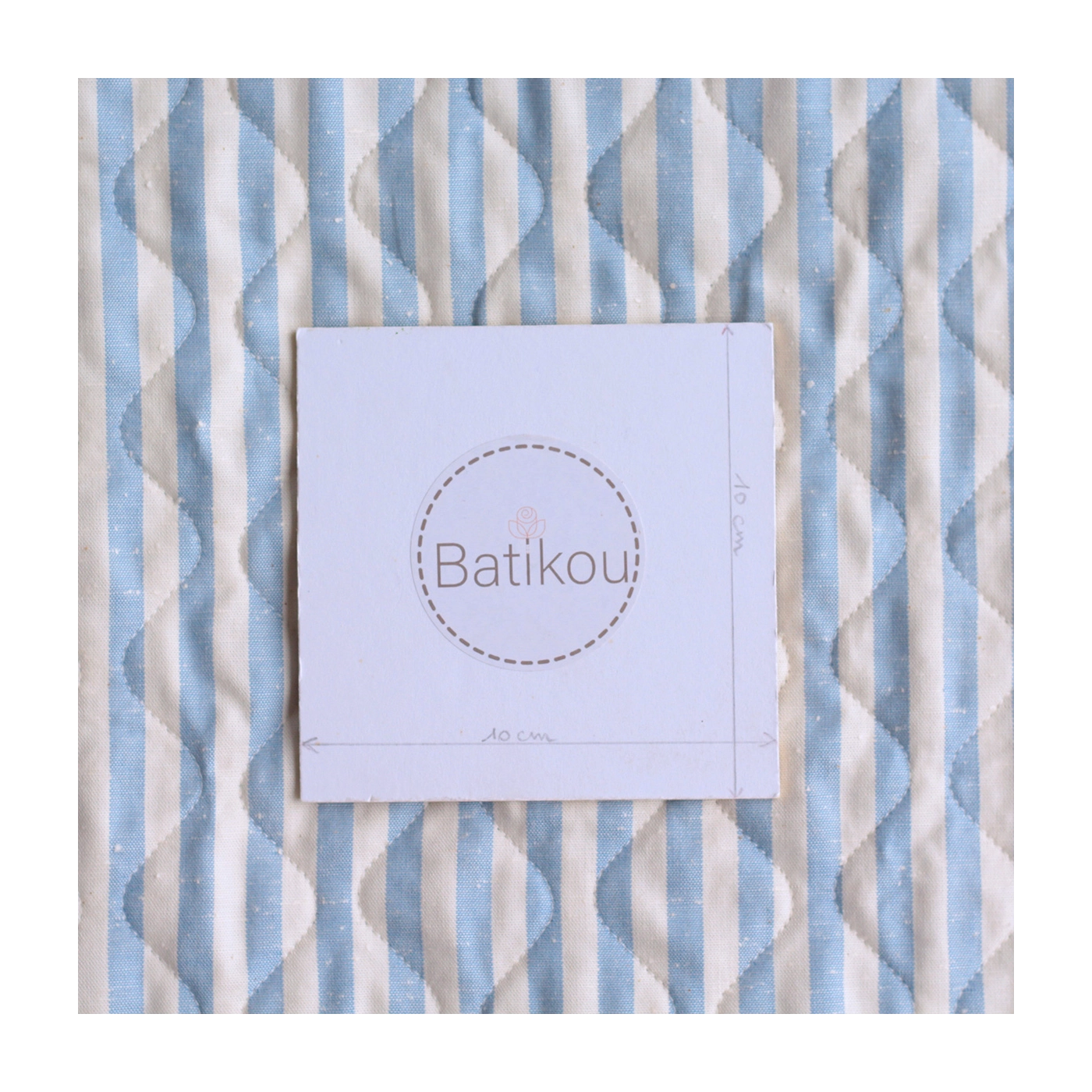 Tissu matelassé coton chiné à rayures bleu nuage / écru