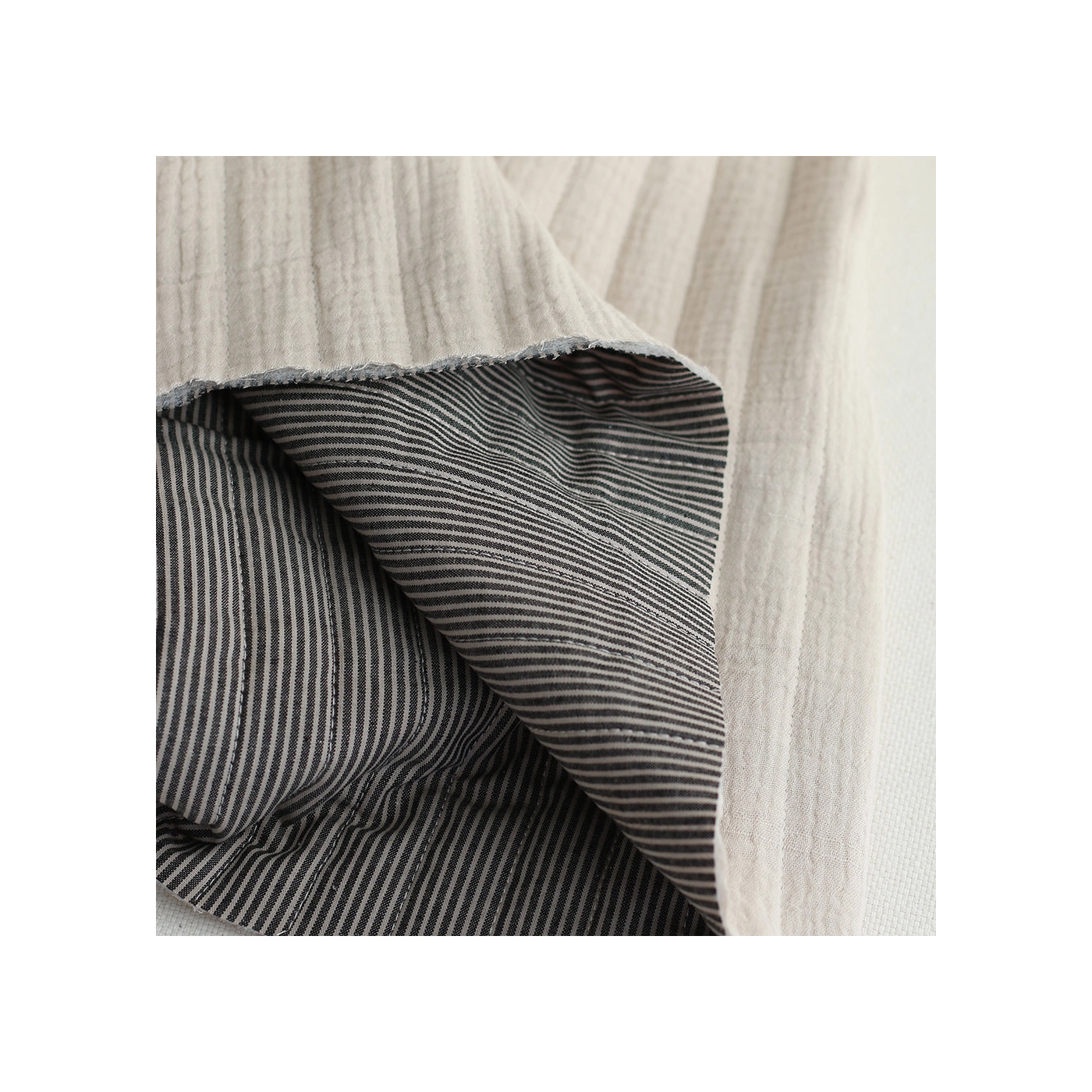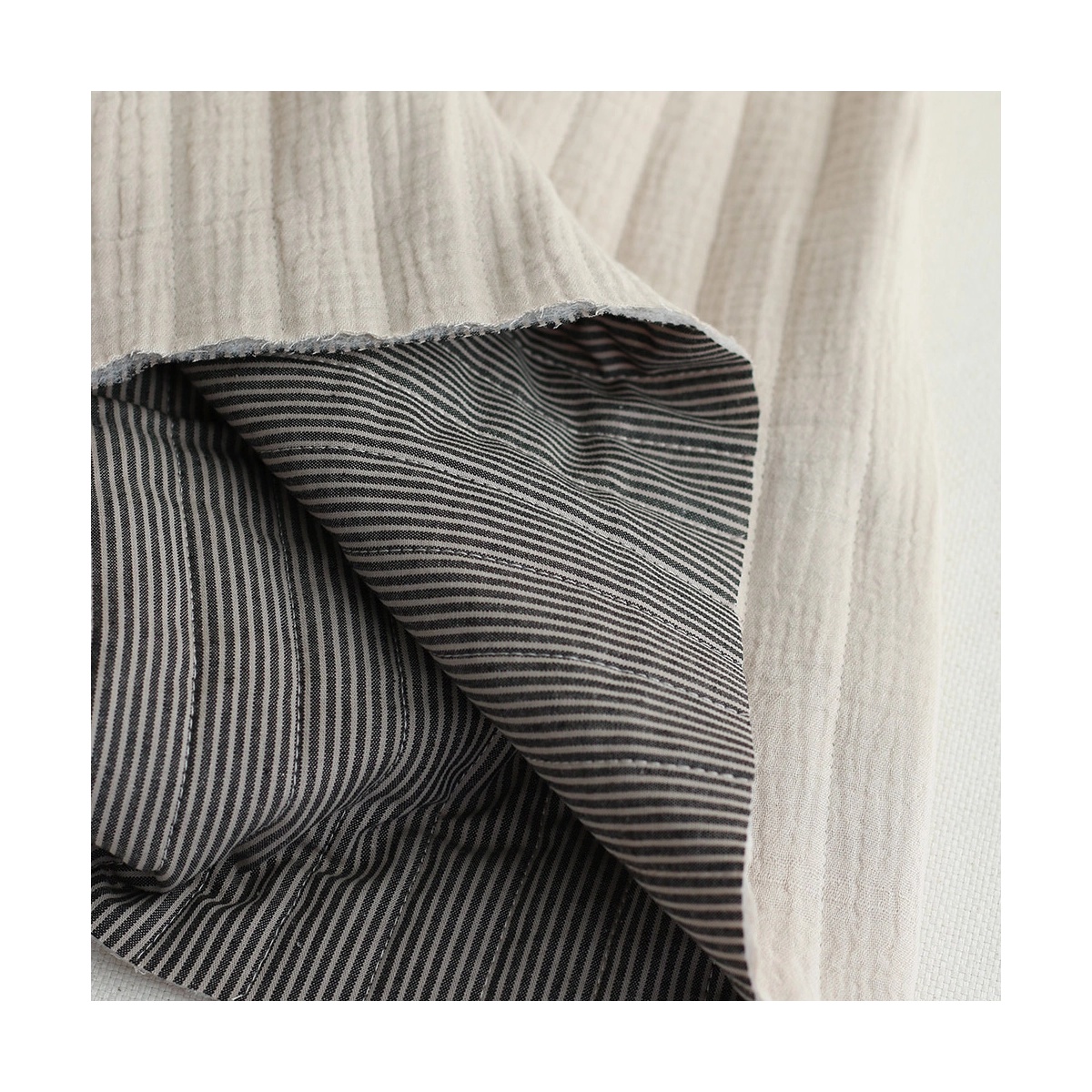 Country - Tissu matelassé double face écru / rayures noires