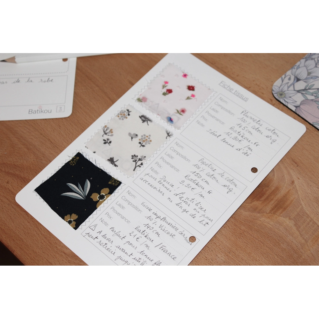 Fiche d'organisation Tissus A5